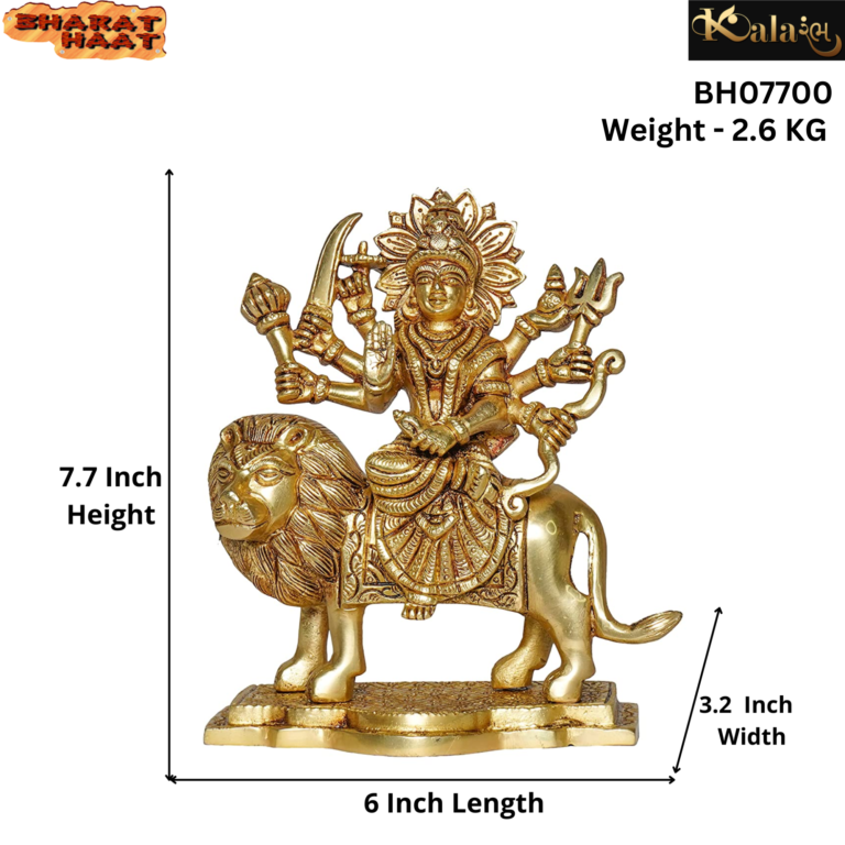 Elegant Brass Ambe Maa statue, 6 x 3.2 x 7.7 inches, 2.6 Kg – a sacred handcrafted décor piece ideal for home, temple, or office, symbolizing strength, protection, and prosperity.