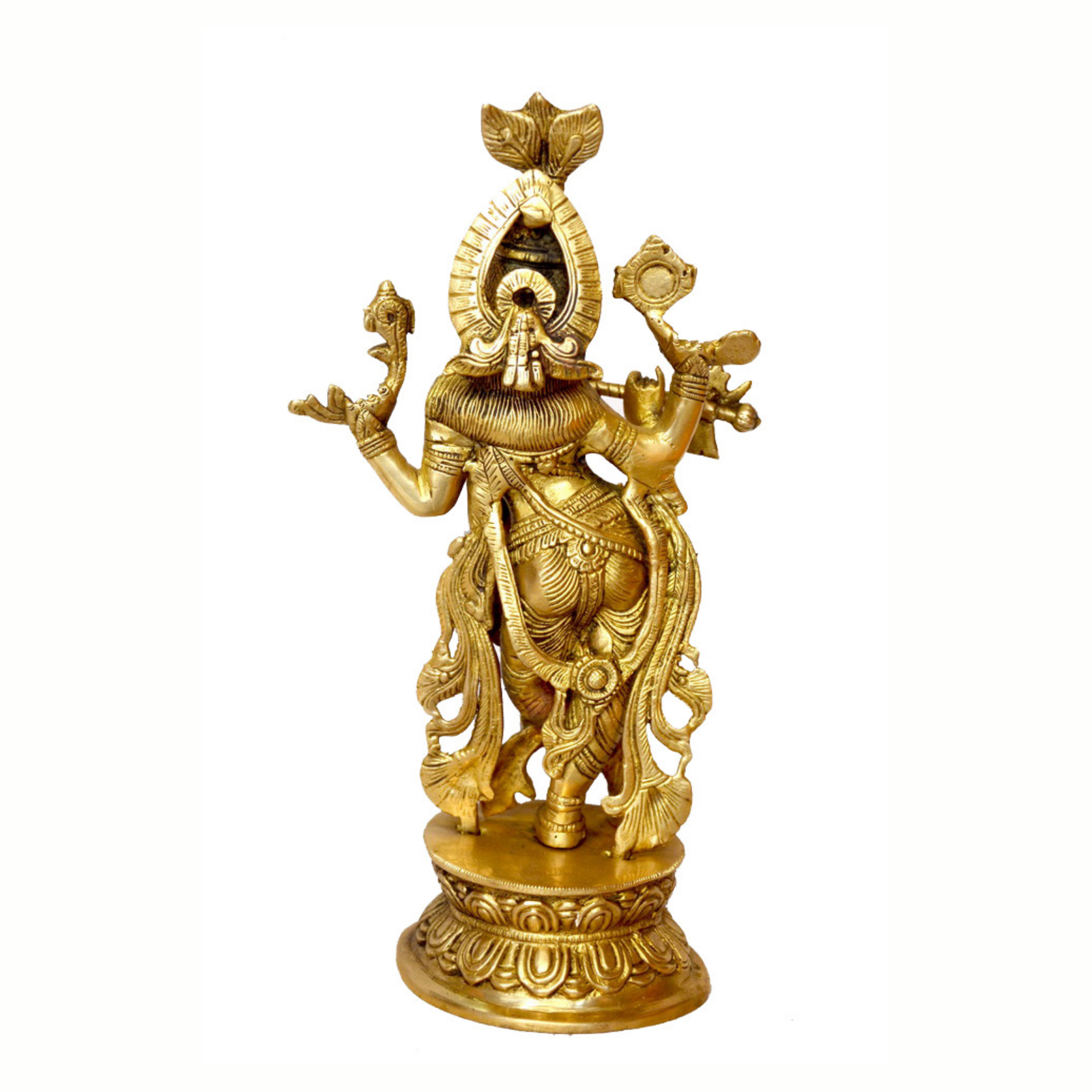 This beautifully handcrafted Brass Lord Krishna with Four Hands idol reflects divine elegance and supreme artistry. Lord Krishna, depicted with four hands, symbolizes strength, protection, and spiritual balance. Made from premium-quality brass, the idol features intricate detailing and a rich golden finish. Measuring 5.5 x 3.5 x 11.3 inches and weighing 2.11 Kg, it serves as a stunning centerpiece for pooja rooms, temples, or home décor.