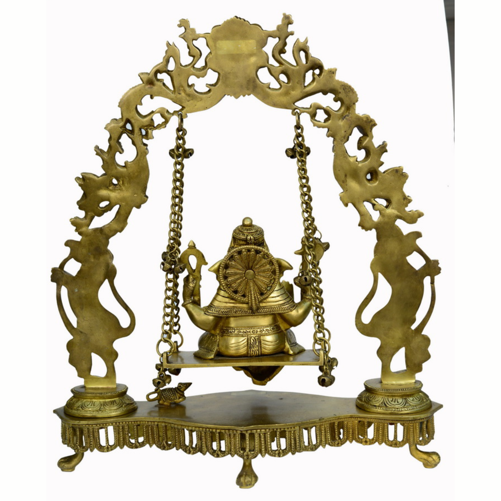 Brass Big Ganesha Jhula – Handcrafted Lord Ganesha on Swing Statue, 18 Inch