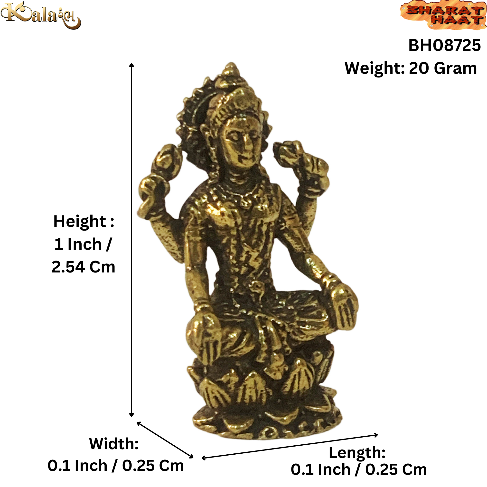 Made from premium-quality solid brass, this miniature idol is durable, long-lasting, and radiates a natural golden sheen. The intricate craftsmanship makes it a perfect collectible for spiritual enthusiasts and a charming addition to your home temple, cash box, office desk, or pooja altar.