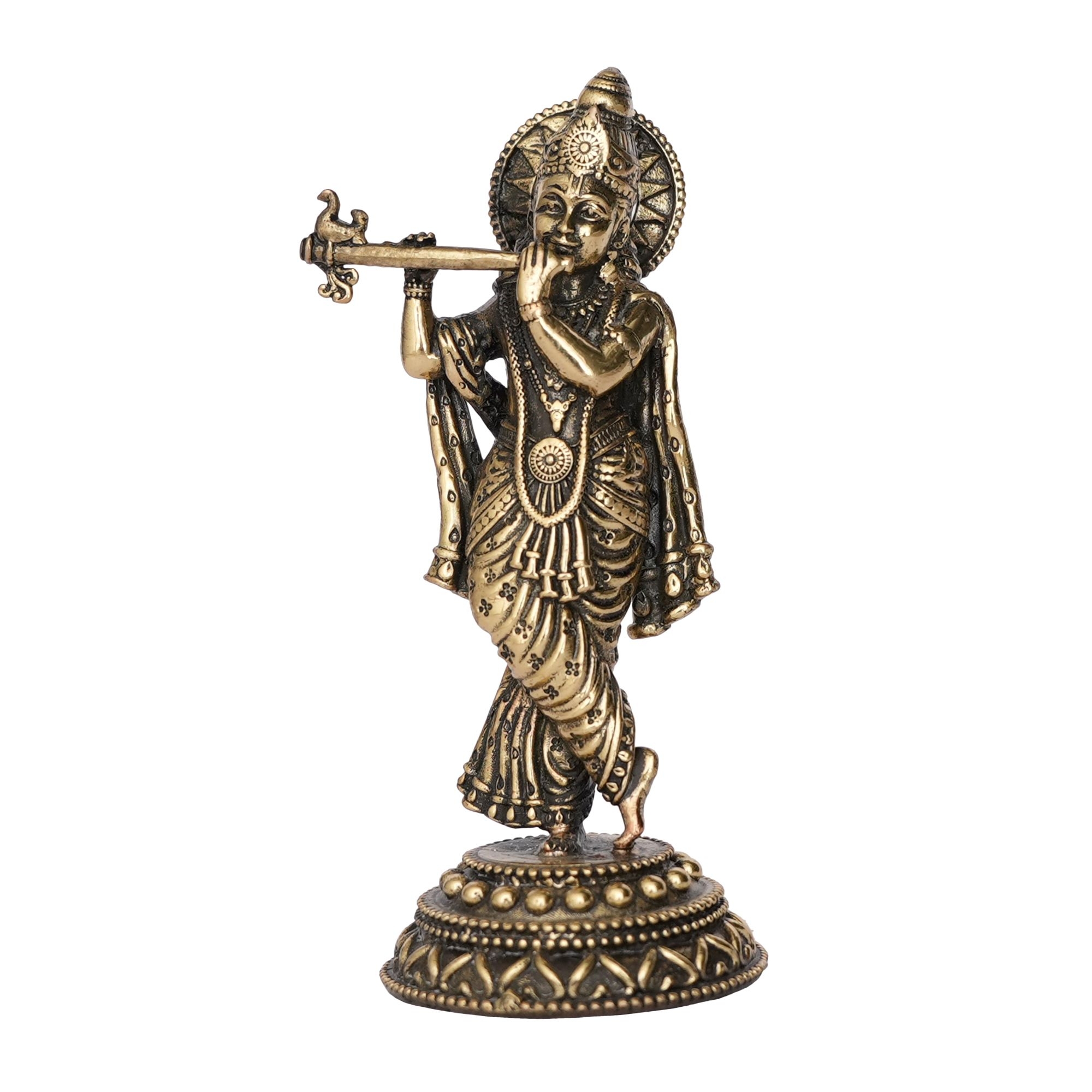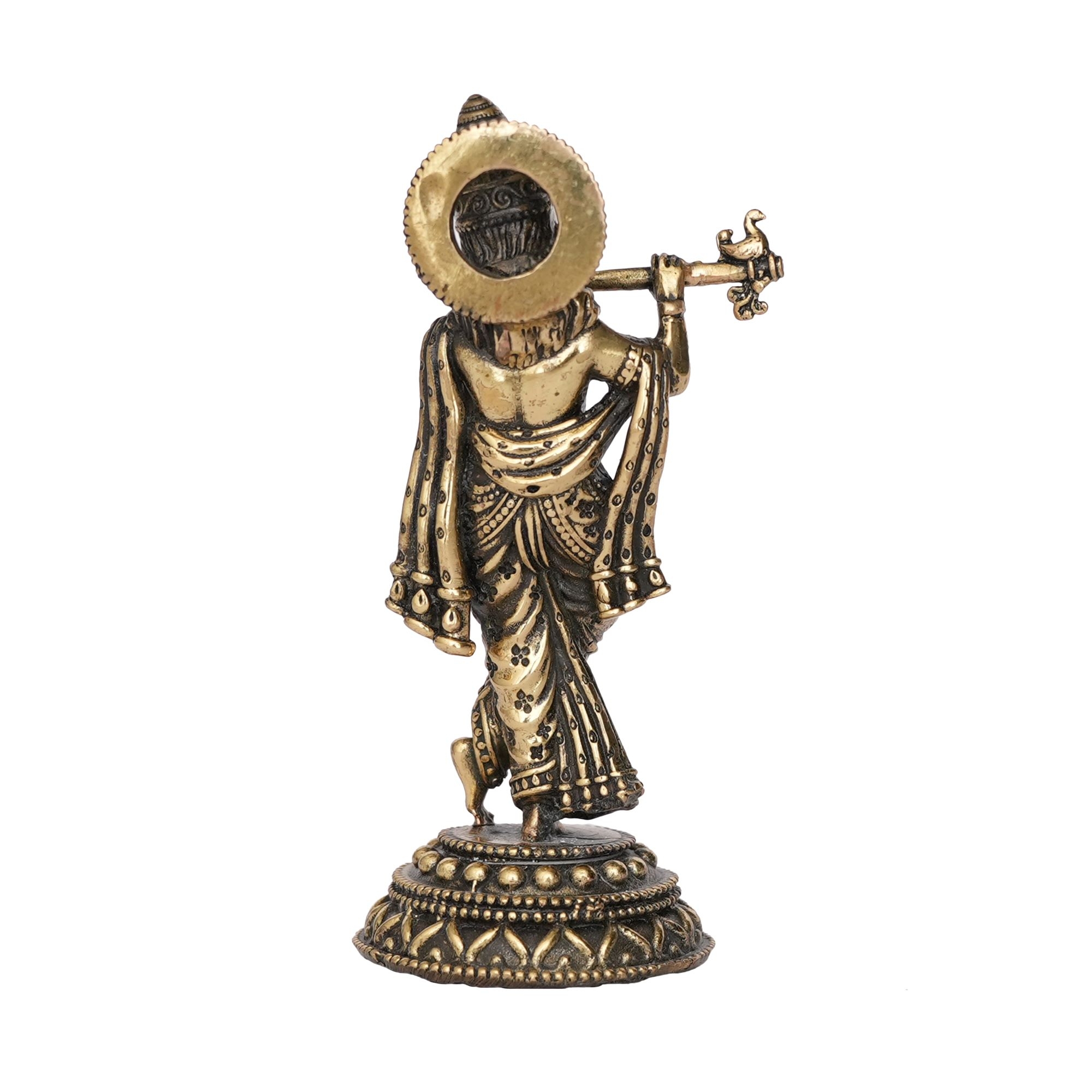 Divine Elegance: Pure Brass Krishna Murti (4-inch)