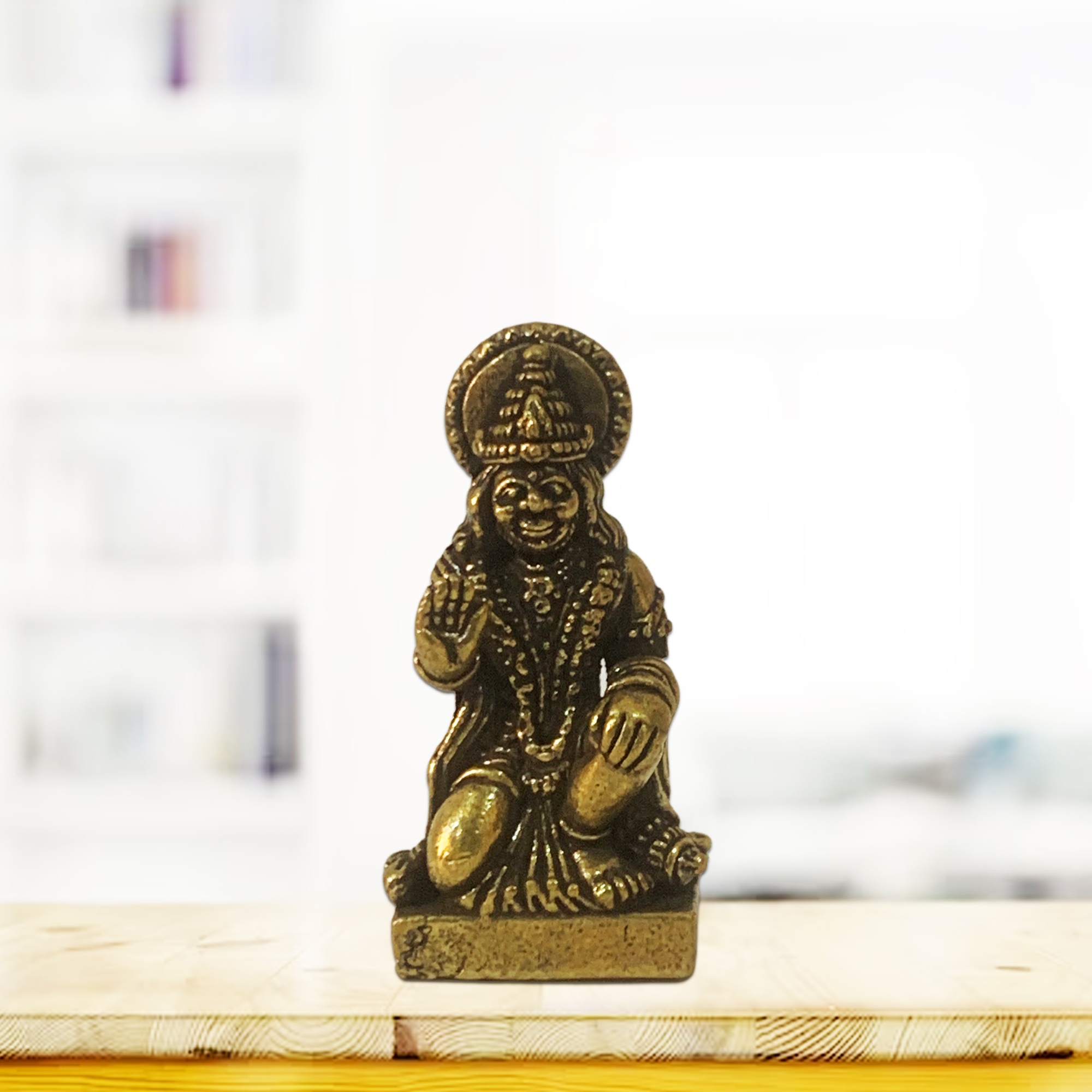 Beautifully cast in solid brass, the idol showcases detailed craftsmanship with a serene sitting posture that inspires peace, faith, and protection. It is compact and lightweight, making it ideal for placement in your home temple, wallet, office desk or vehicle dashboard for daily divine presence.