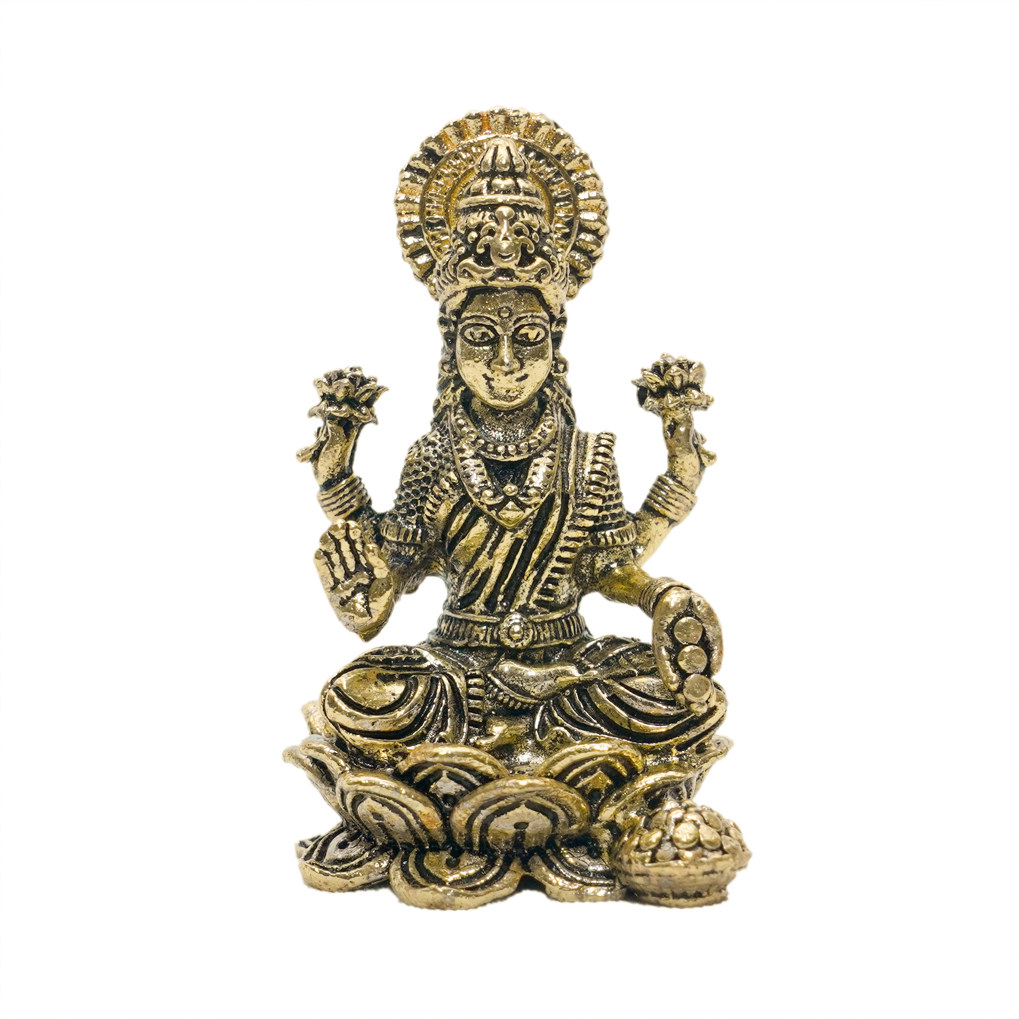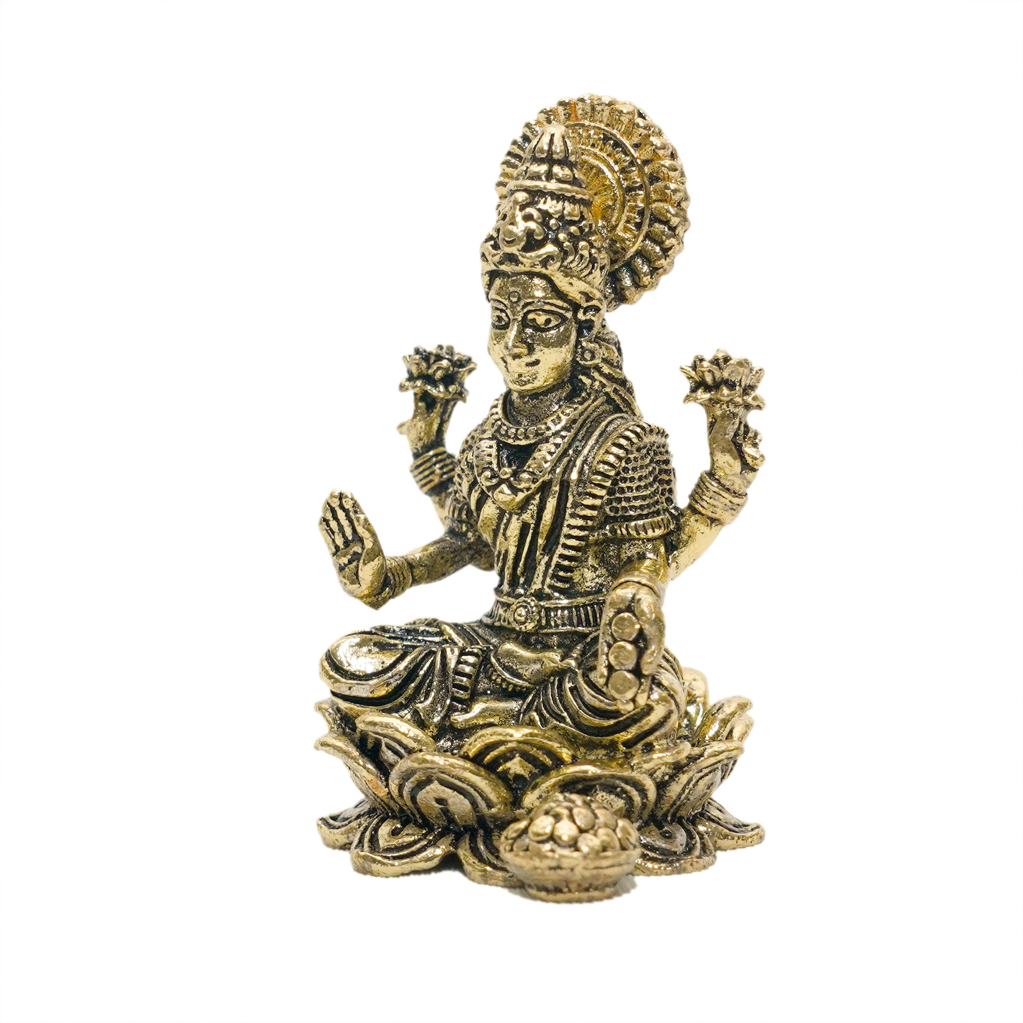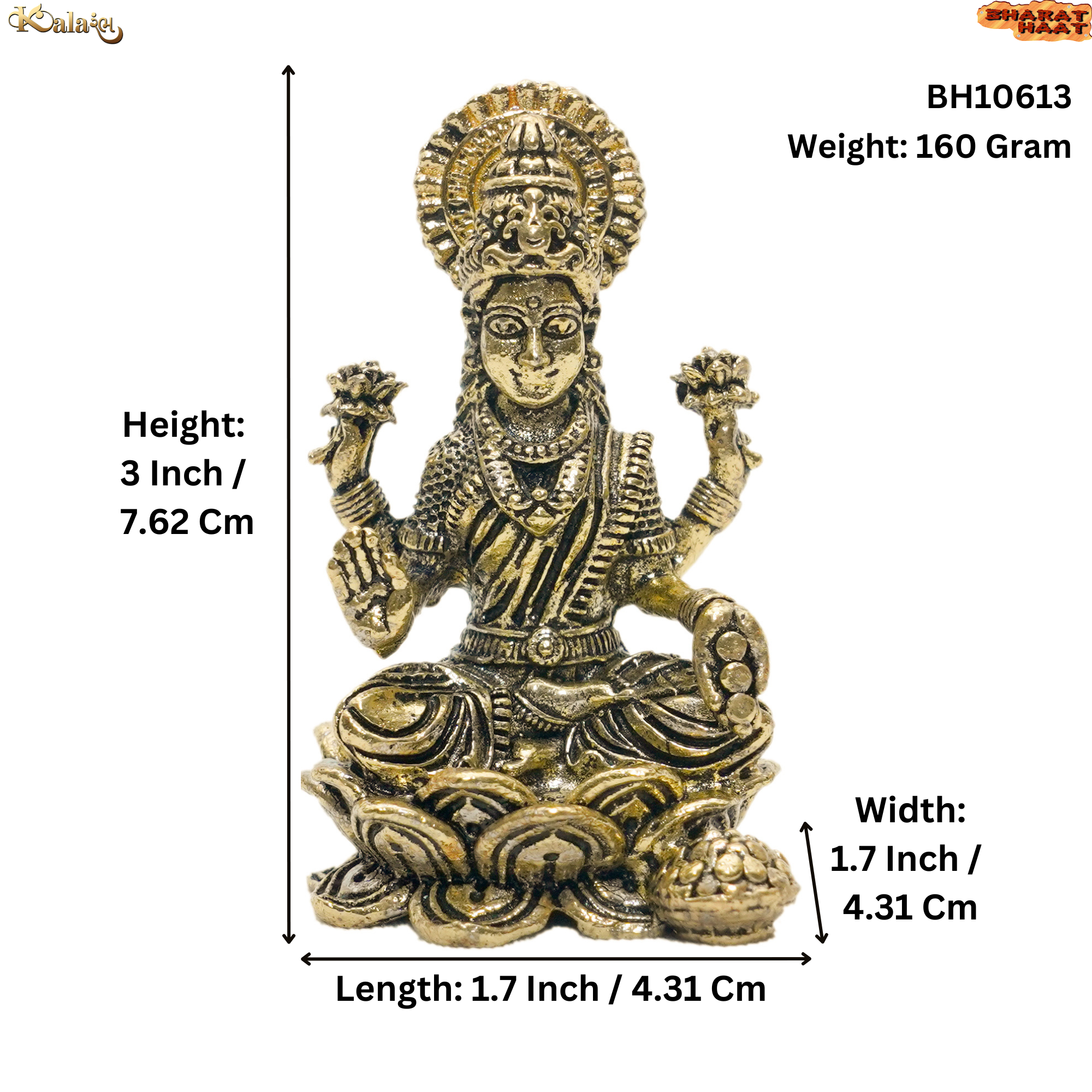 Exquisite Brass Lakshmi idol, 1.7 x 1.7 x 3 inches, 160 grams. Symbol of wealth, purity, and divine blessings—ideal for pooja rooms, festive rituals, or elegant décor.