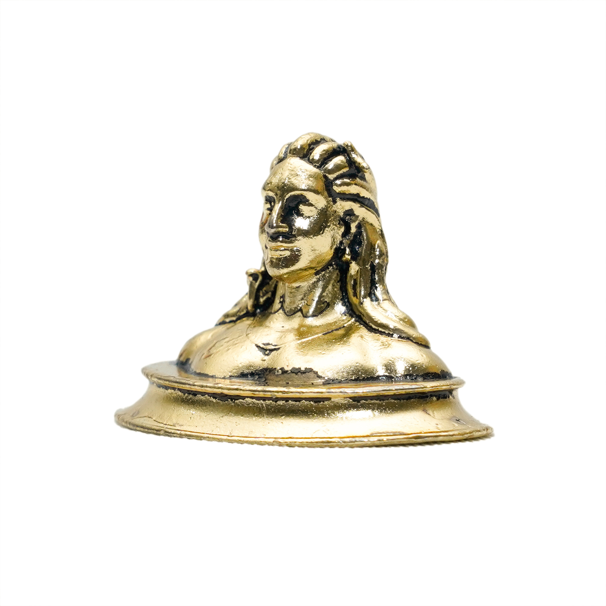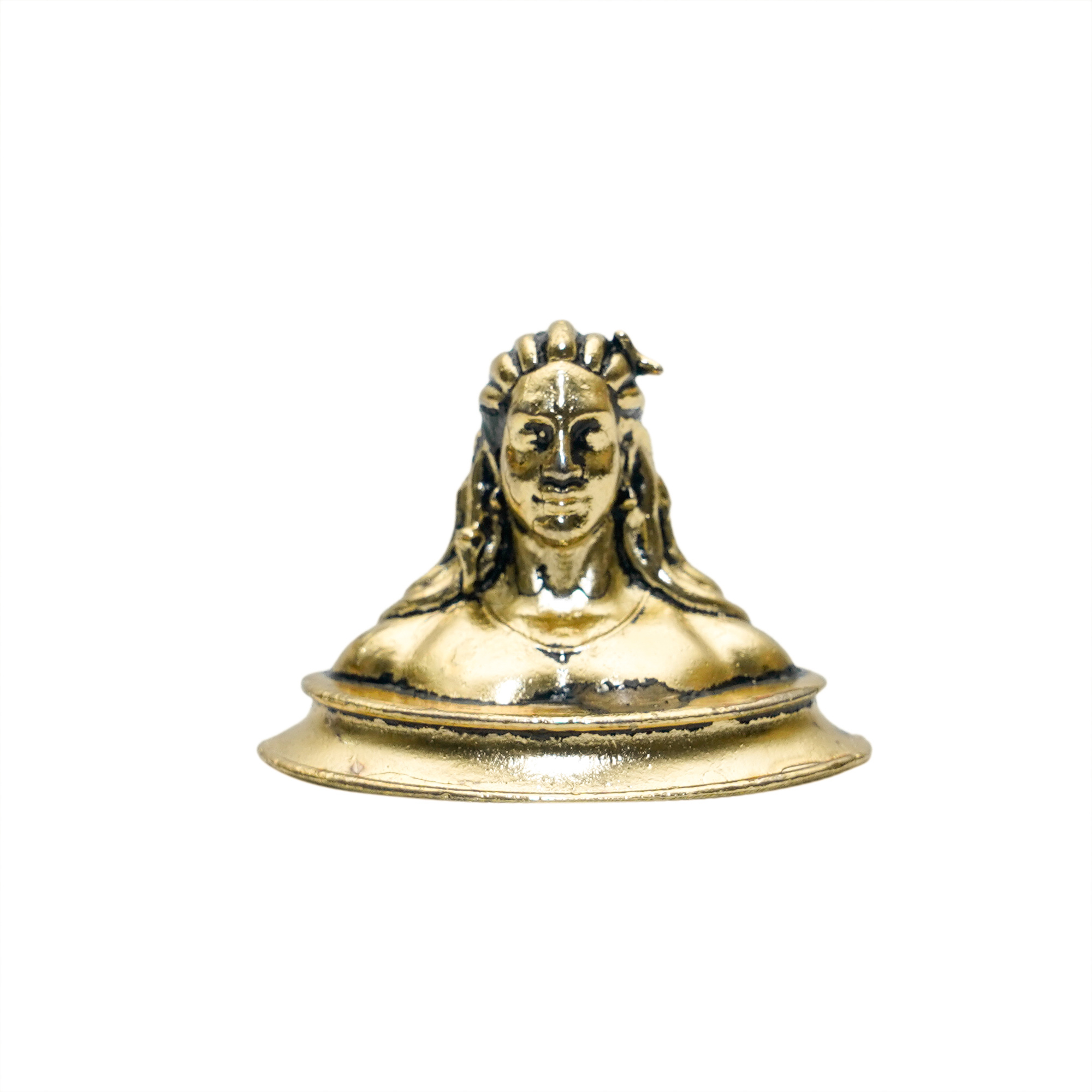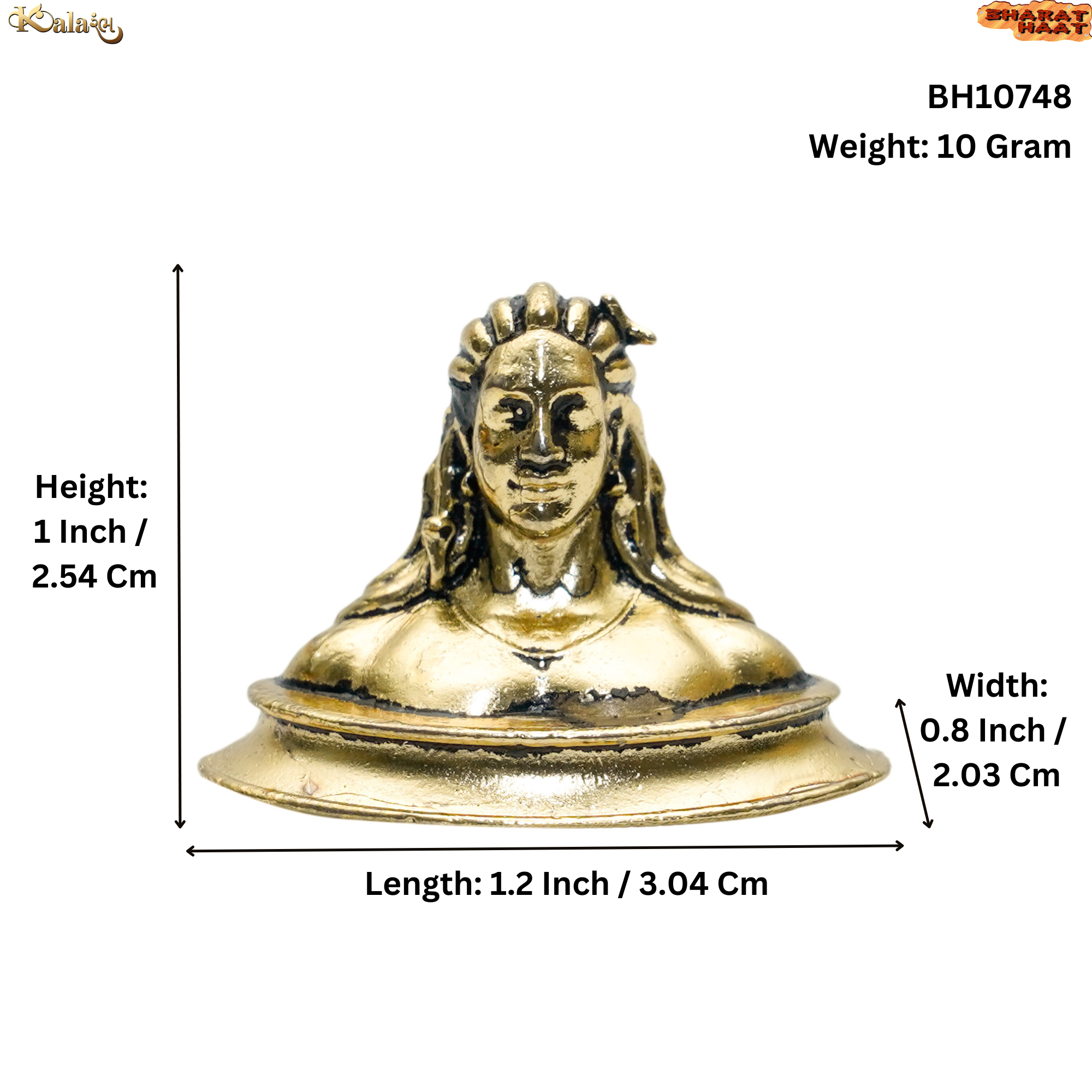Miniature Brass Aadiyogi idol – 1.2 x 0.8 x 1 inch, 10g. A finely handcrafted depiction of Lord Shiva as Aadiyogi, symbolizing meditation, spiritual wisdom, and divine energy.