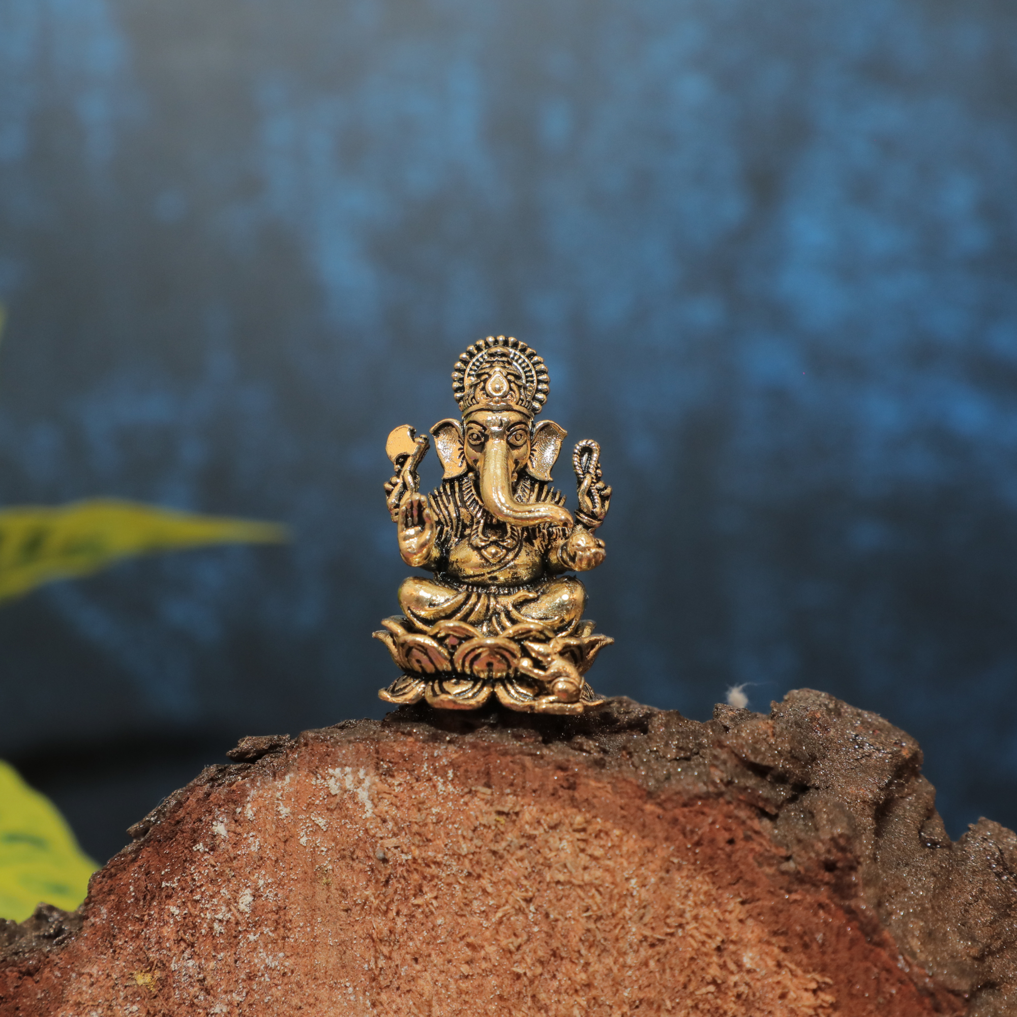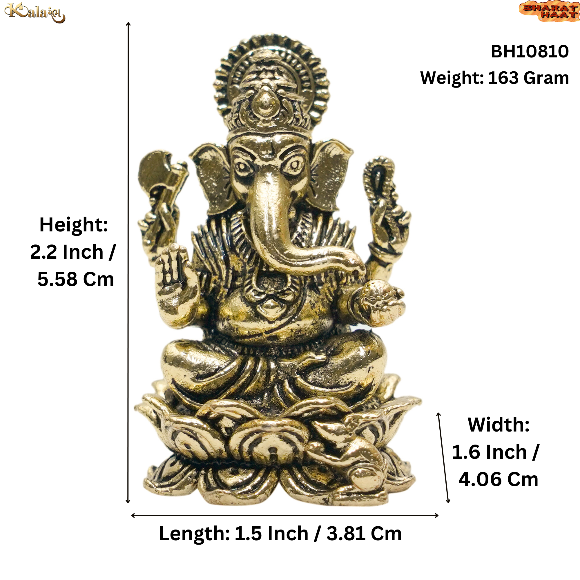 Handcrafted Brass Ganesha idol measuring 1.5 x 1.6 x 2.2 inches and weighing 163g. Ideal for home altars, small shelves, or as a thoughtful gift to invite blessings and positivity.