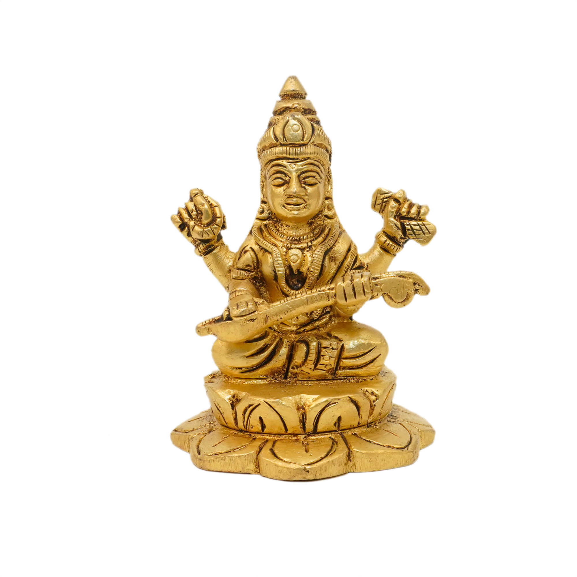 Beautifully crafted Brass Saraswati Maa idol symbolizing wisdom, music, and learning. Size: 2 x 2 x 2.8 inches, Weight: 280g. Ideal for temples, study rooms, or as a divine gift.