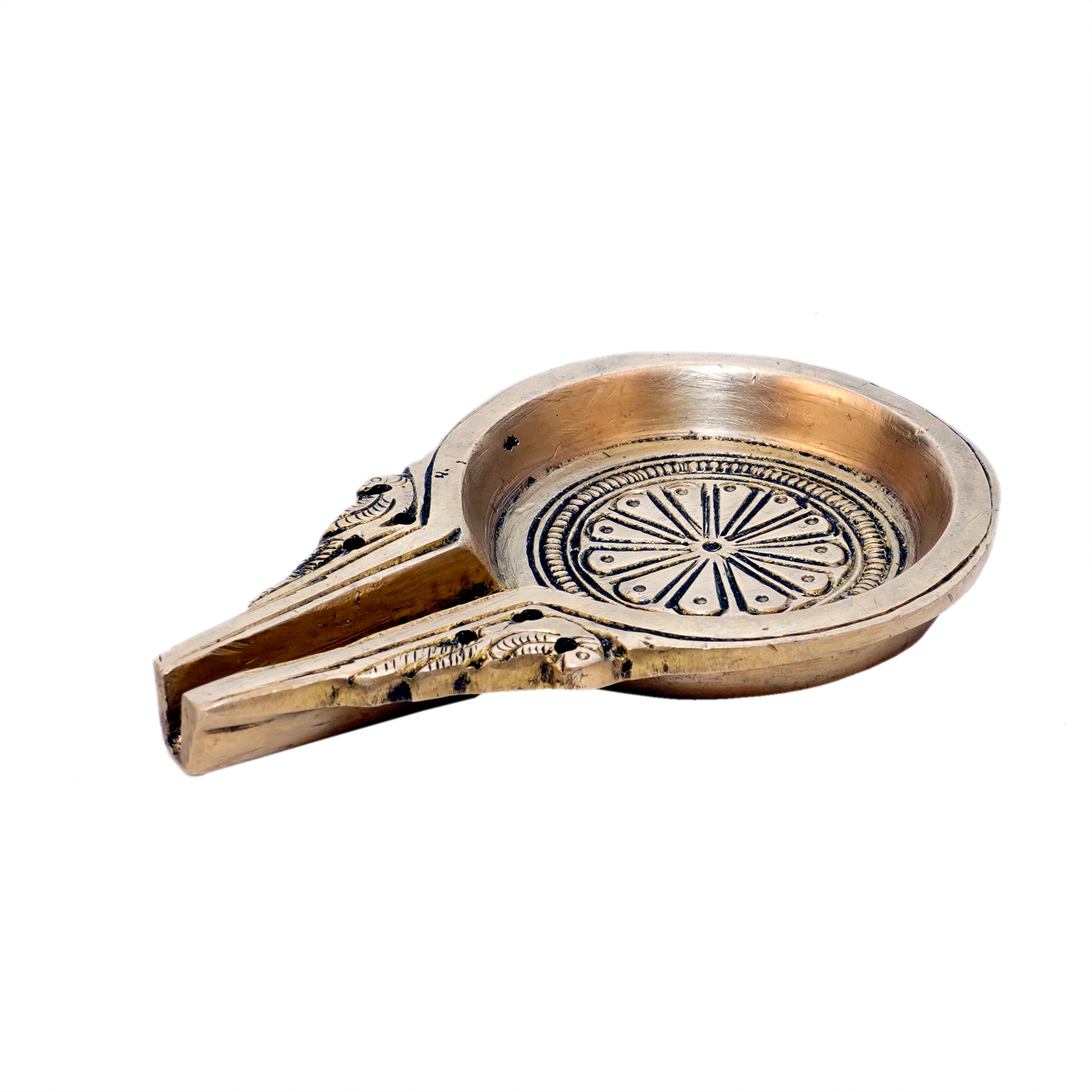 Elegant Brass Arghya Plate crafted with precision for traditional rituals and daily pooja. Dimension: 4.1 x 2.7 x 0.2 Inch | Weight: 200g. Ideal for temple, home altar, and ceremonial offerings.