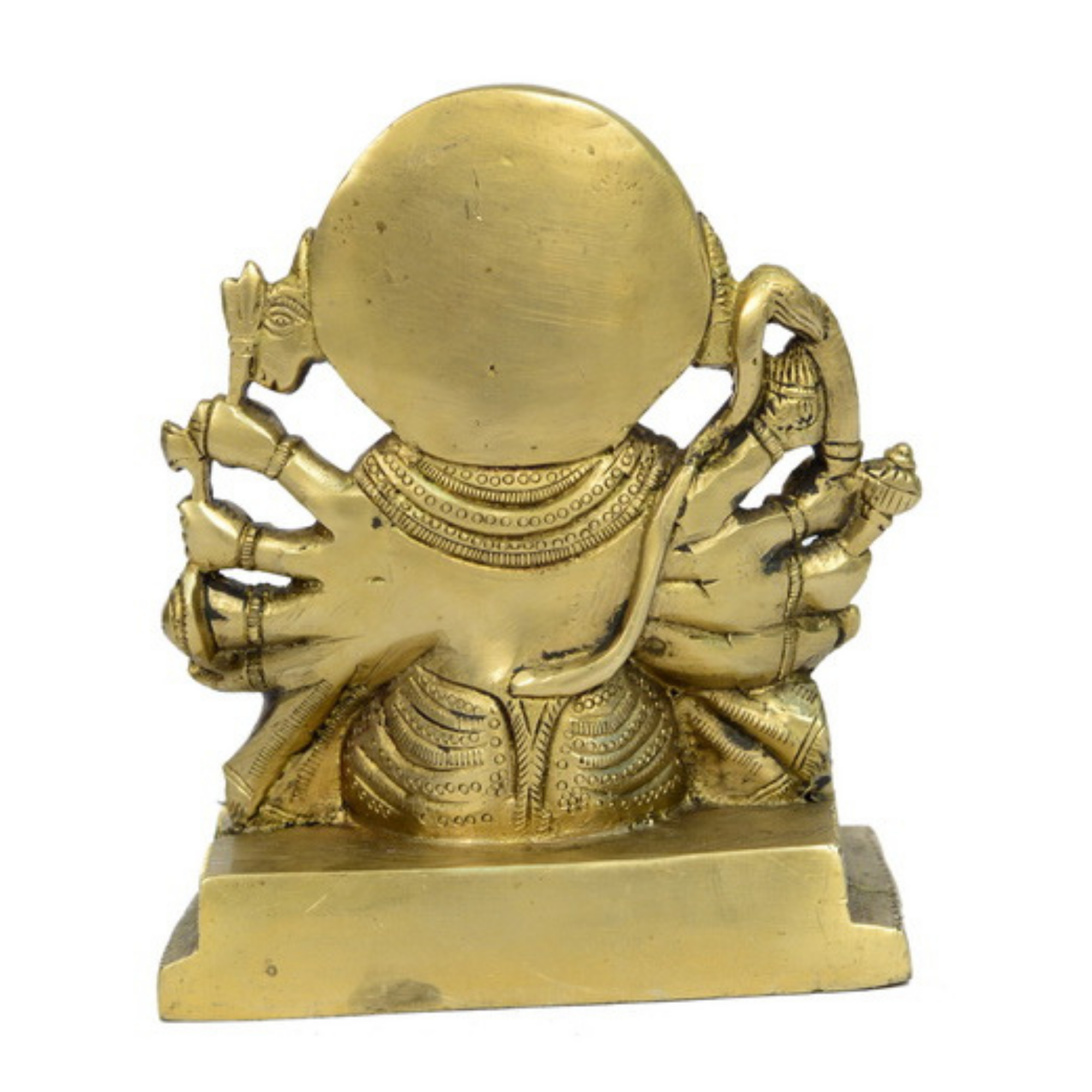 Elegant Brass Panchmukhi Hanuman idol representing the five-faced deity of strength and protection. Size: 5 x 2.8 x 6.5 Inch | Weight: 1.59 Kg. Ideal for home worship, temple décor, or as a divine gift.