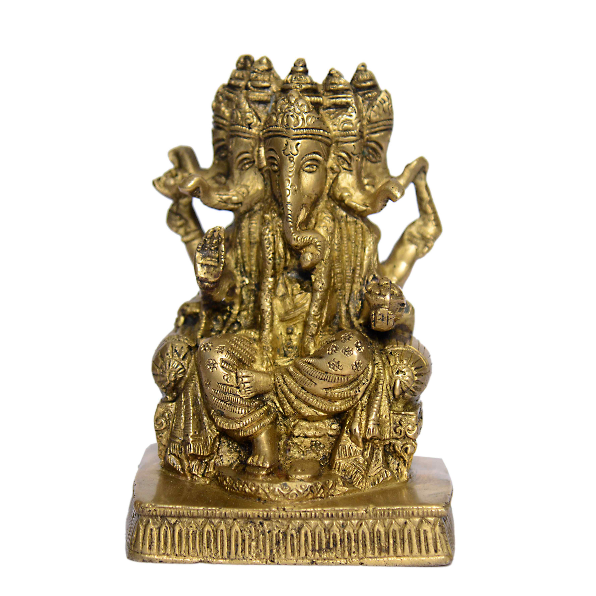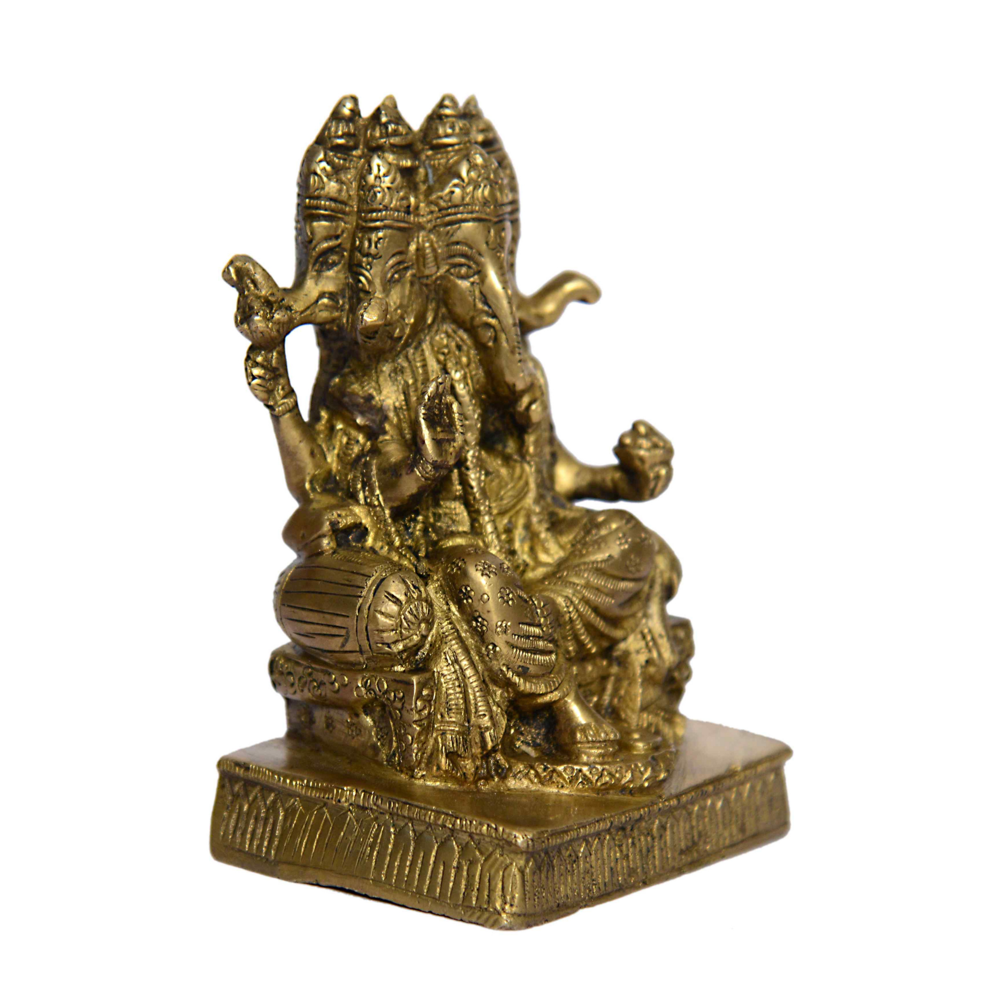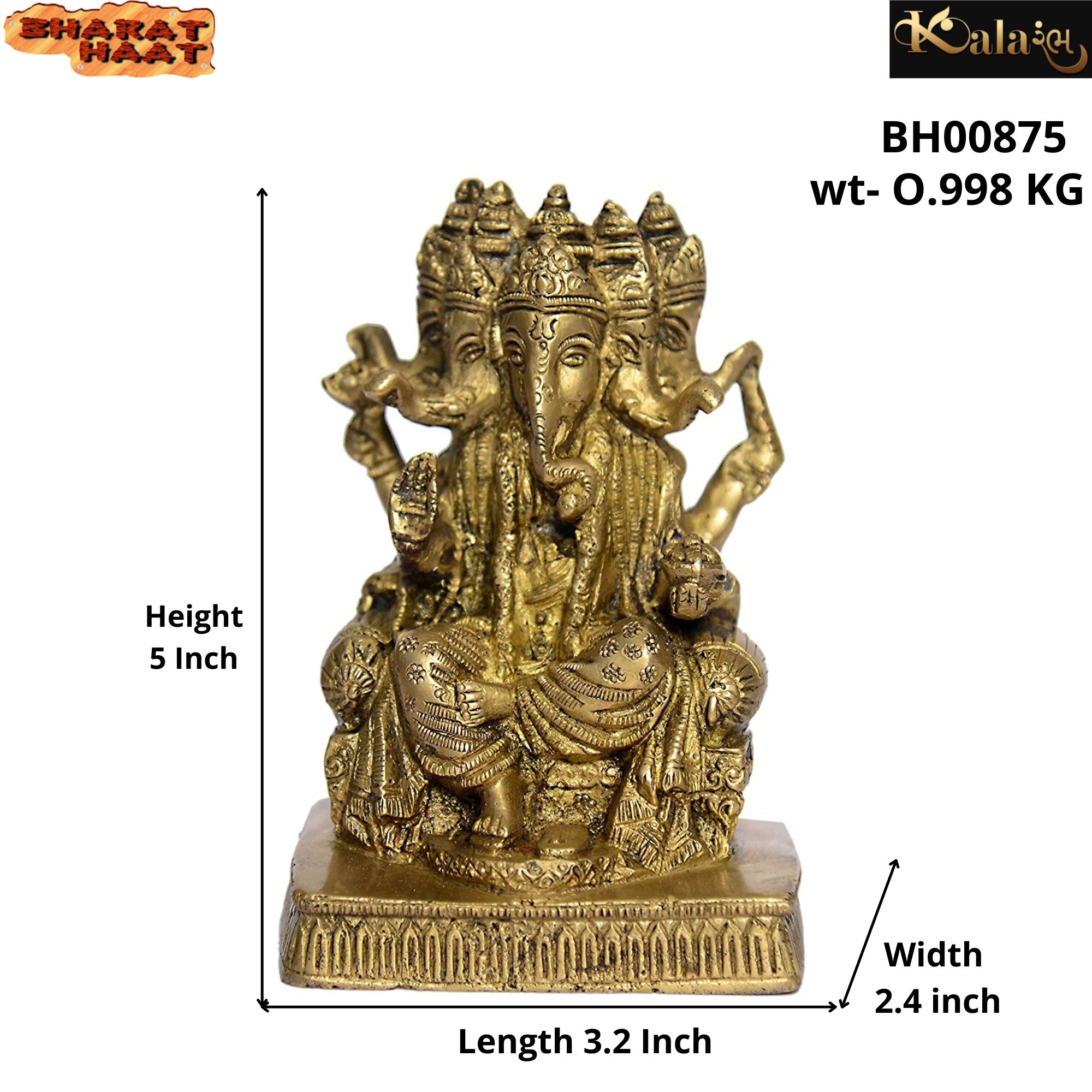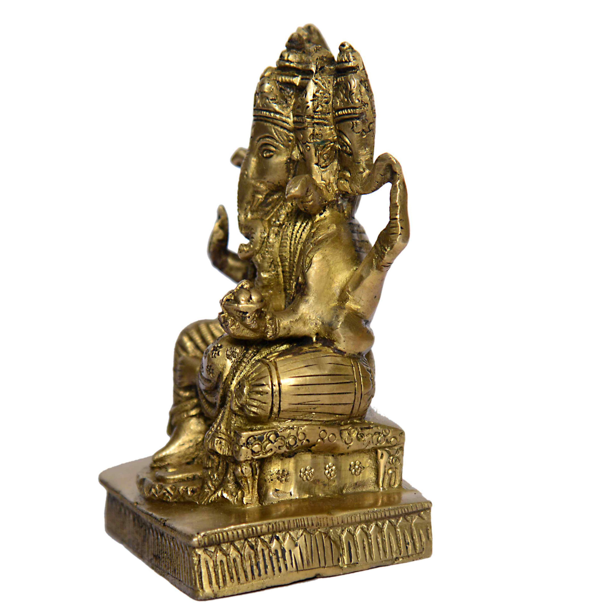 Elegant Brass Ganesha idol sitting with a flower motif. Size: 4.2 x 3 x 6.5 Inch | Weight: 1.61 Kg. Perfect for home worship, decorative altars, or as a spiritual gift.