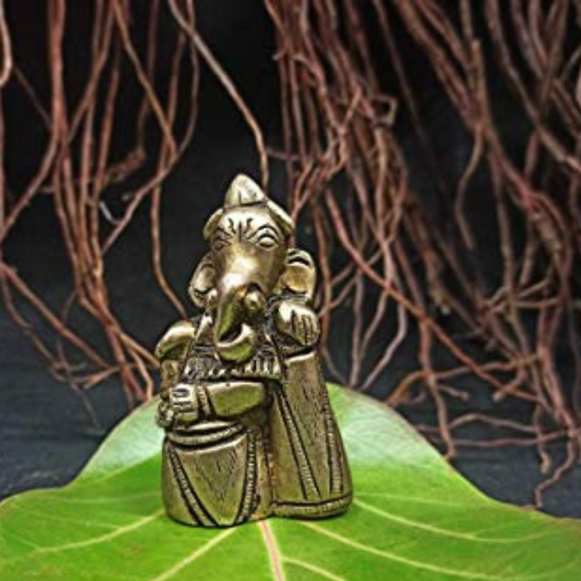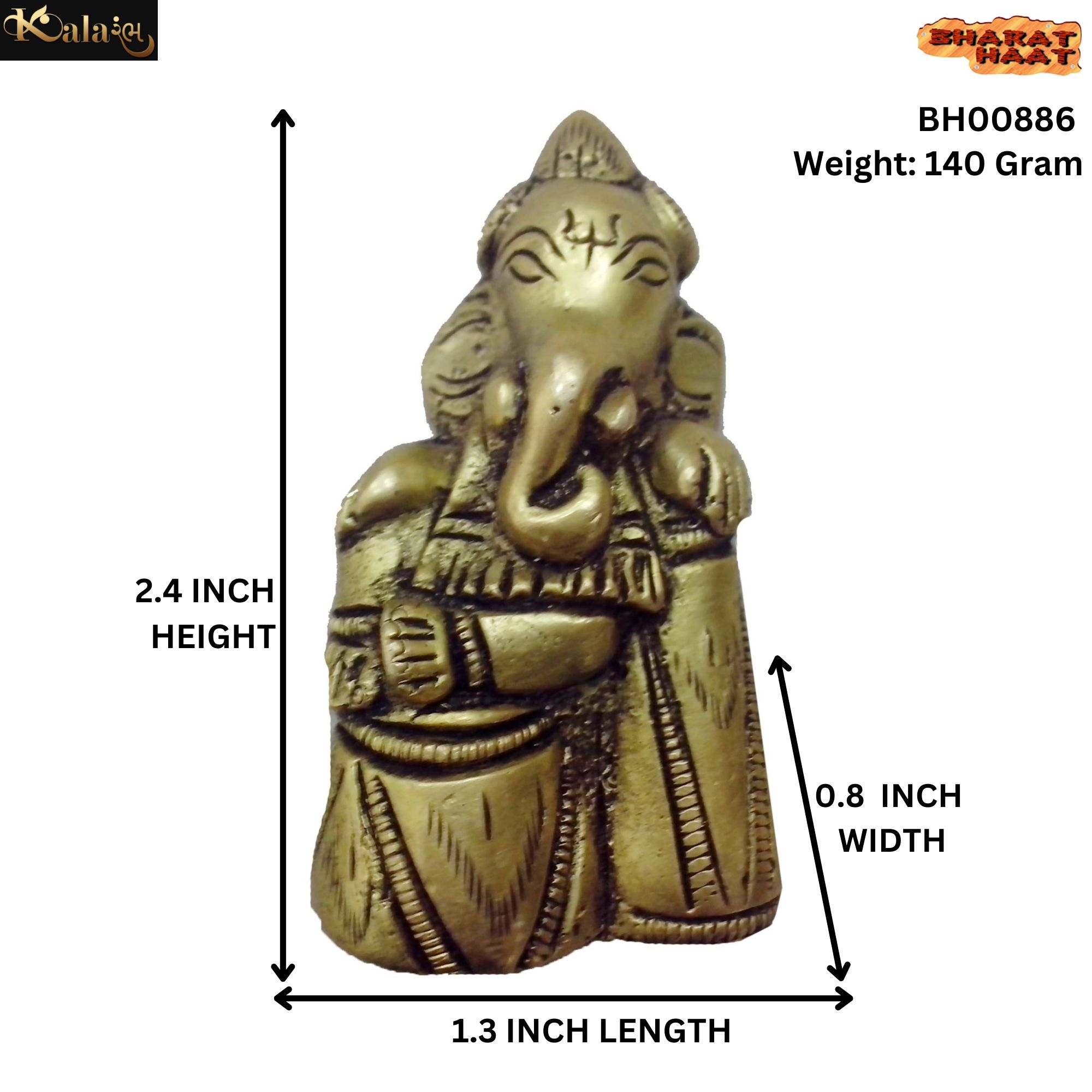 Miniature Brass Ganesha playing tabla, ideal for home worship and décor. Size: 1.3 x 0.8 x 2.4 Inch | Weight: 140g. Adds charm to pooja rooms or as a thoughtful spiritual gift.