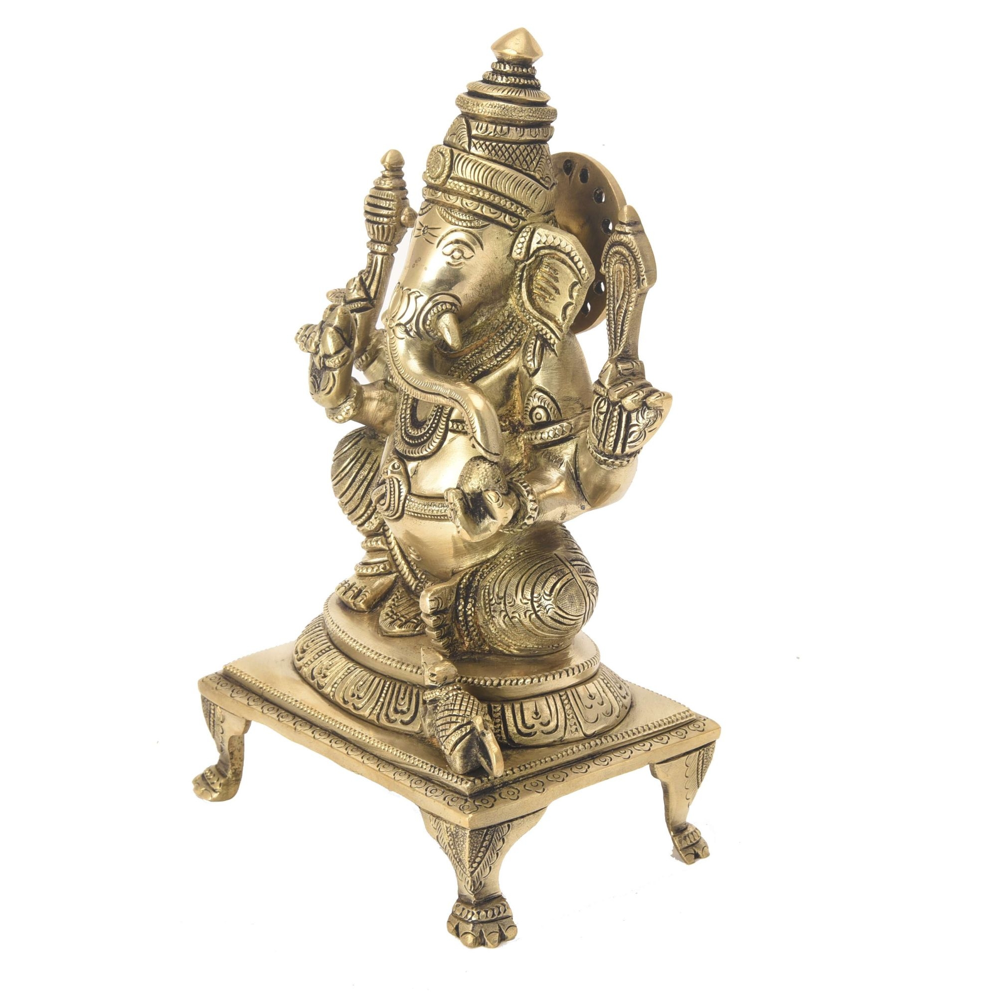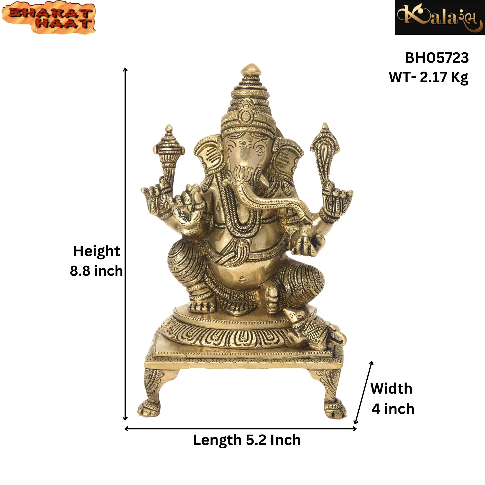 Brass Bajath Ganesh – Handcrafted Decorative Brass Statue, 8.8 Inch