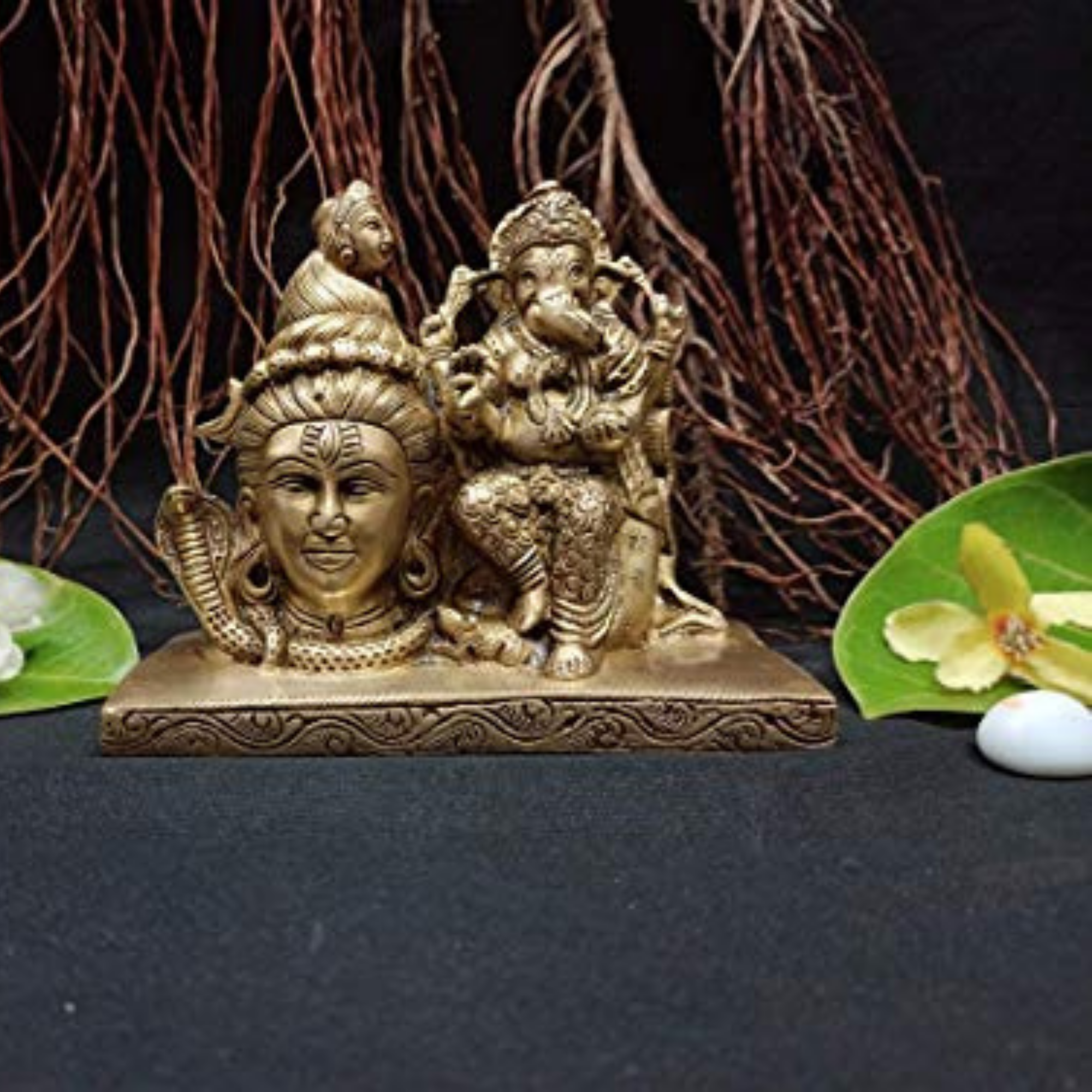 Beautiful Brass Shiva with Ganesha statue for pooja rooms and home décor. Size: 5.3 x 2.9 x 4.5 Inch | Weight: 1.2 Kg. Perfect for adding spiritual energy and divine blessings to your sacred space.