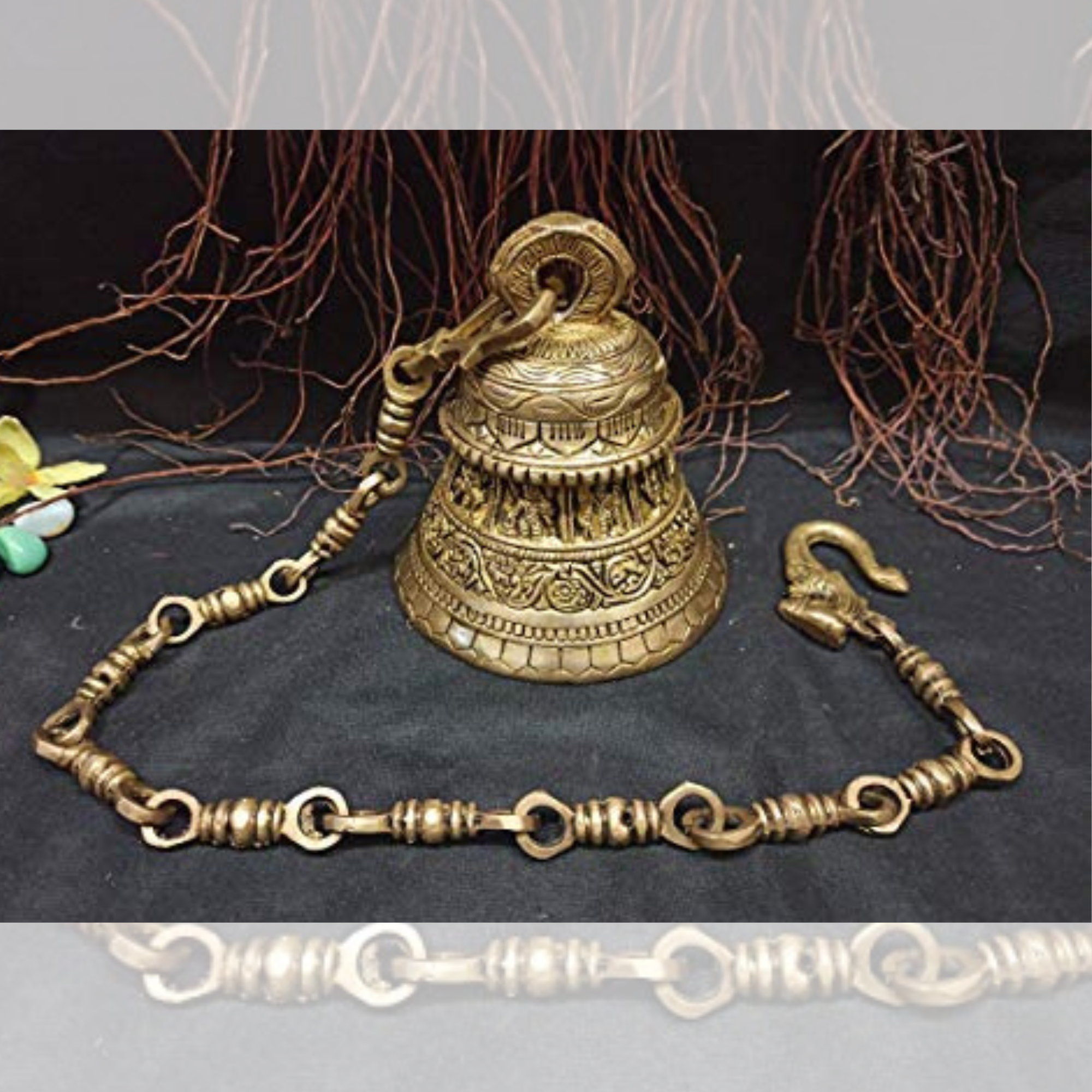 Design: Intricately crafted Vishnu motif on a traditional hanging bell