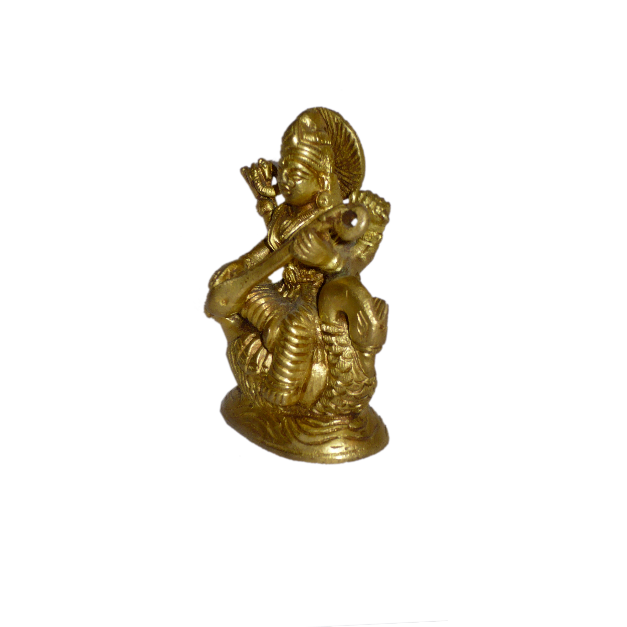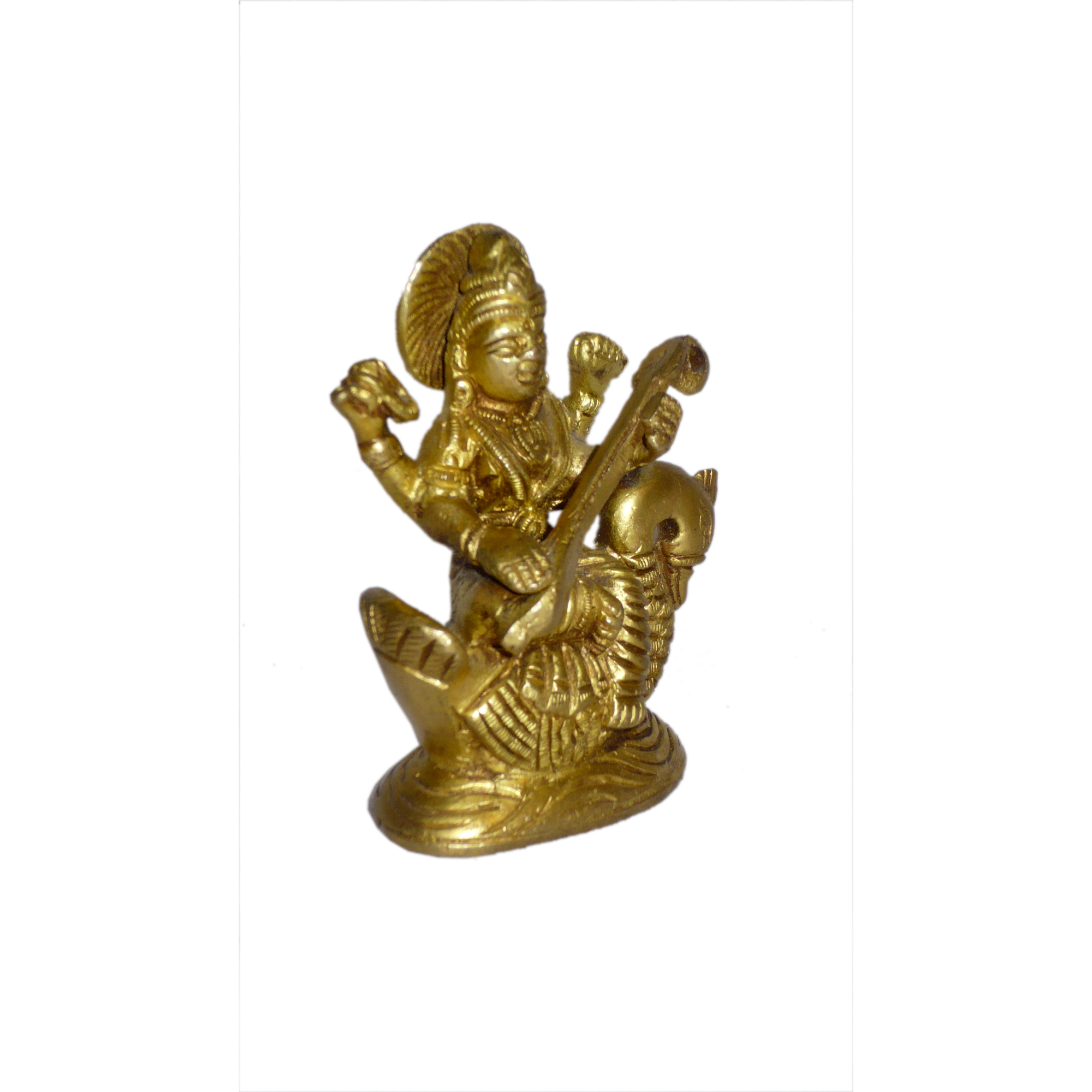 Handcrafted Brass Sarasvati Devi – 2.3-inch small goddess statue, ideal for pooja rooms, study corners, or spiritual home décor.
