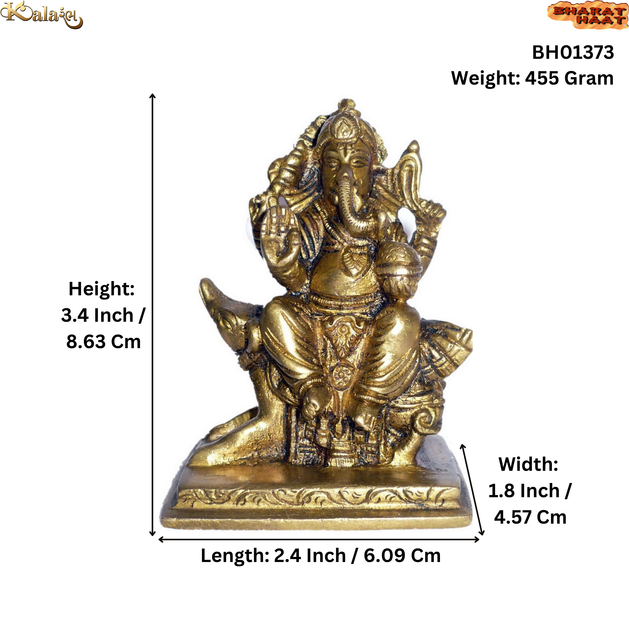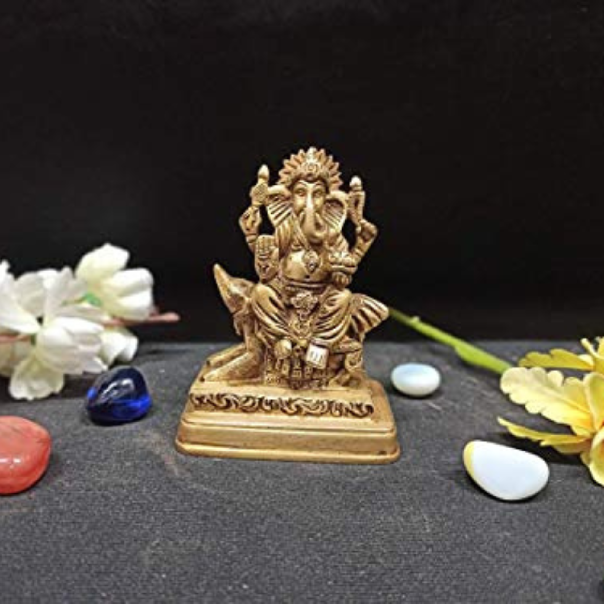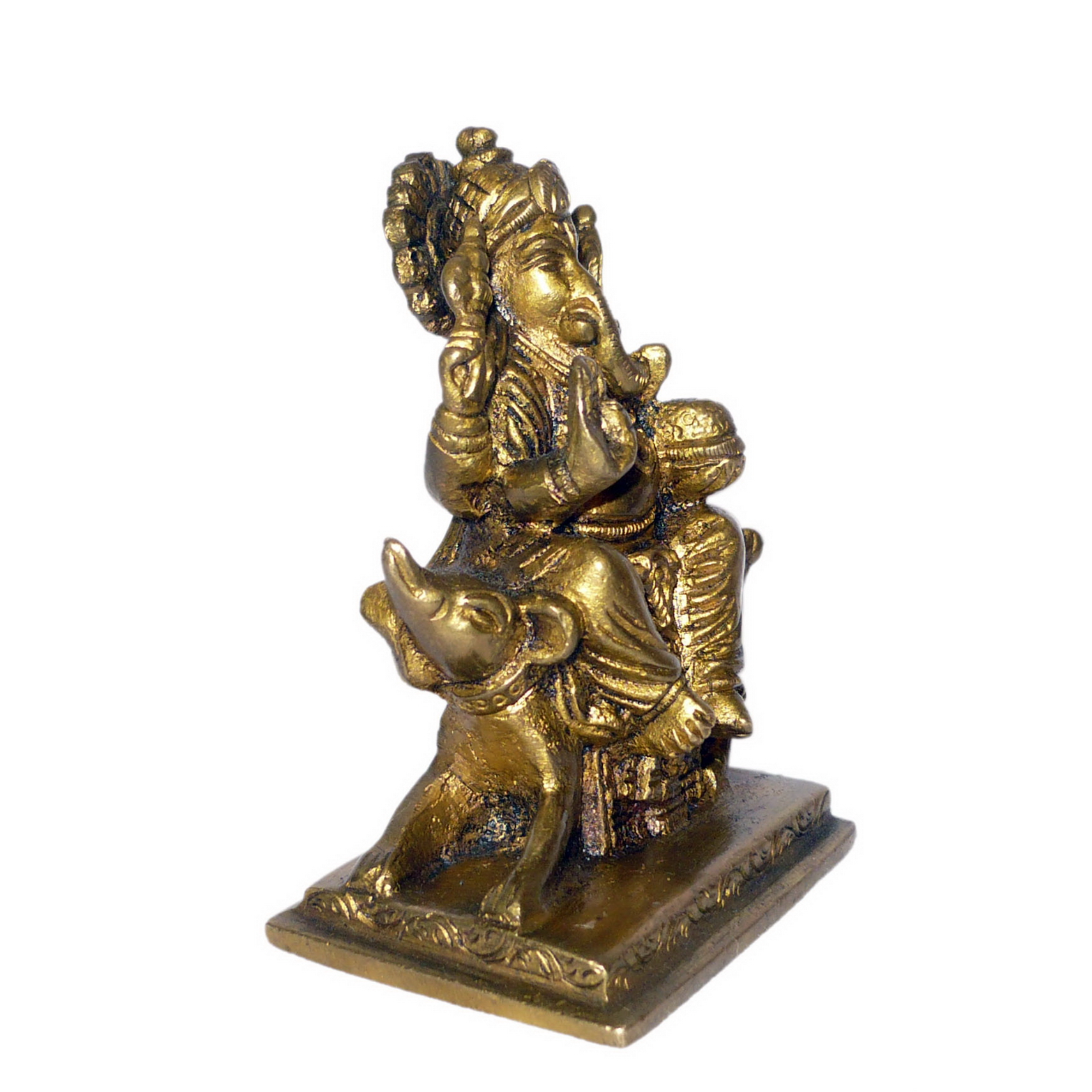 Handcrafted Brass Ganesha Sitting on Rat Small – 2.4-inch decorative brass Ganesha idol, ideal for pooja, home décor, or gifting.