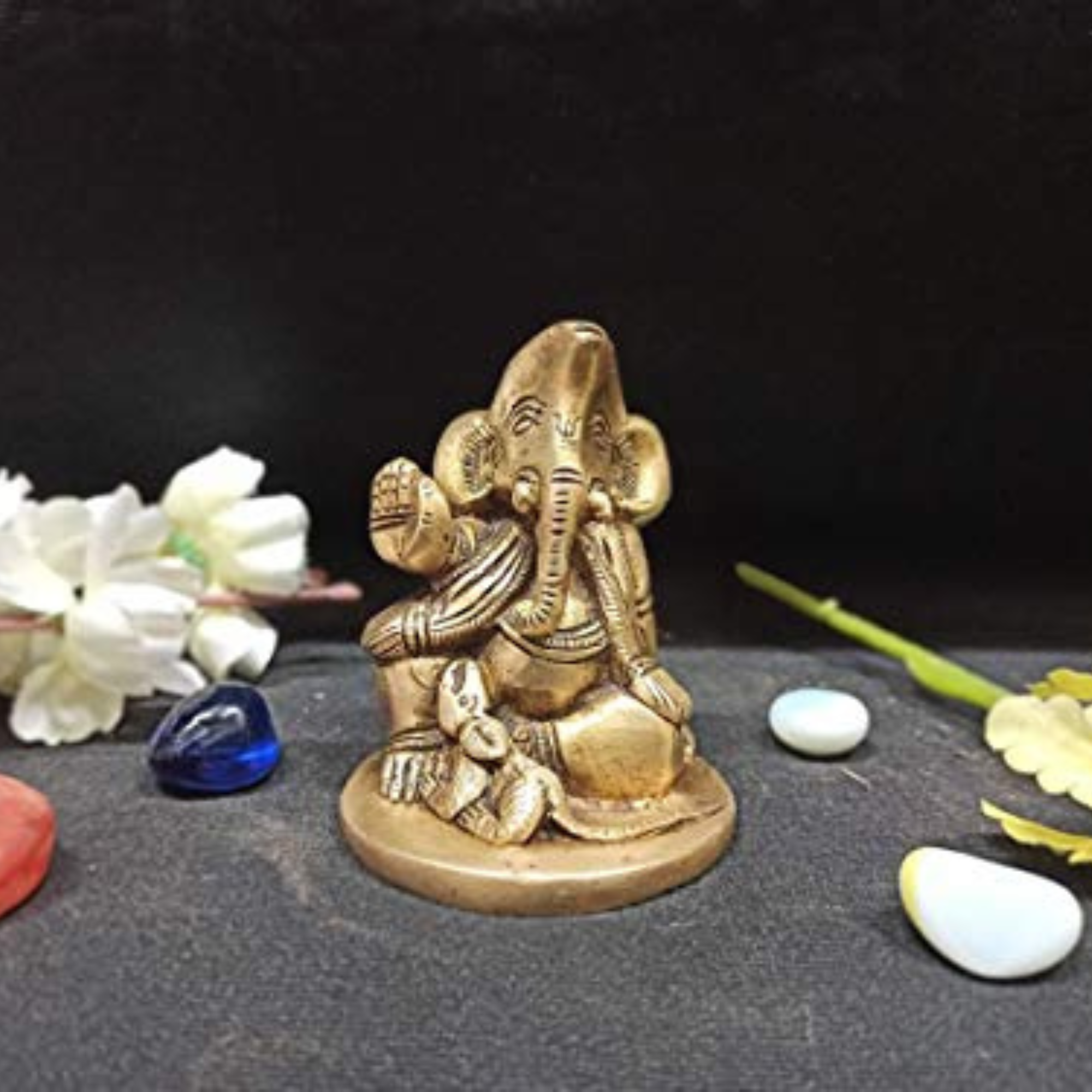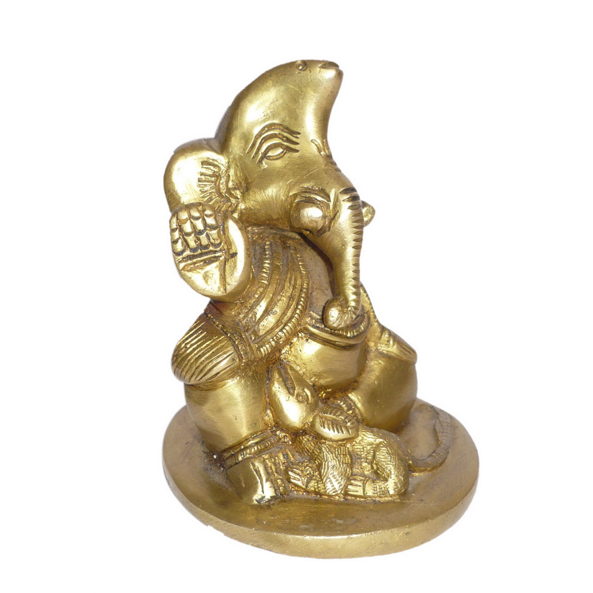 Handcrafted Brass Rat Ganesha Small – 2.2-inch decorative brass Ganesha idol, ideal for pooja, home décor, or gifting.
