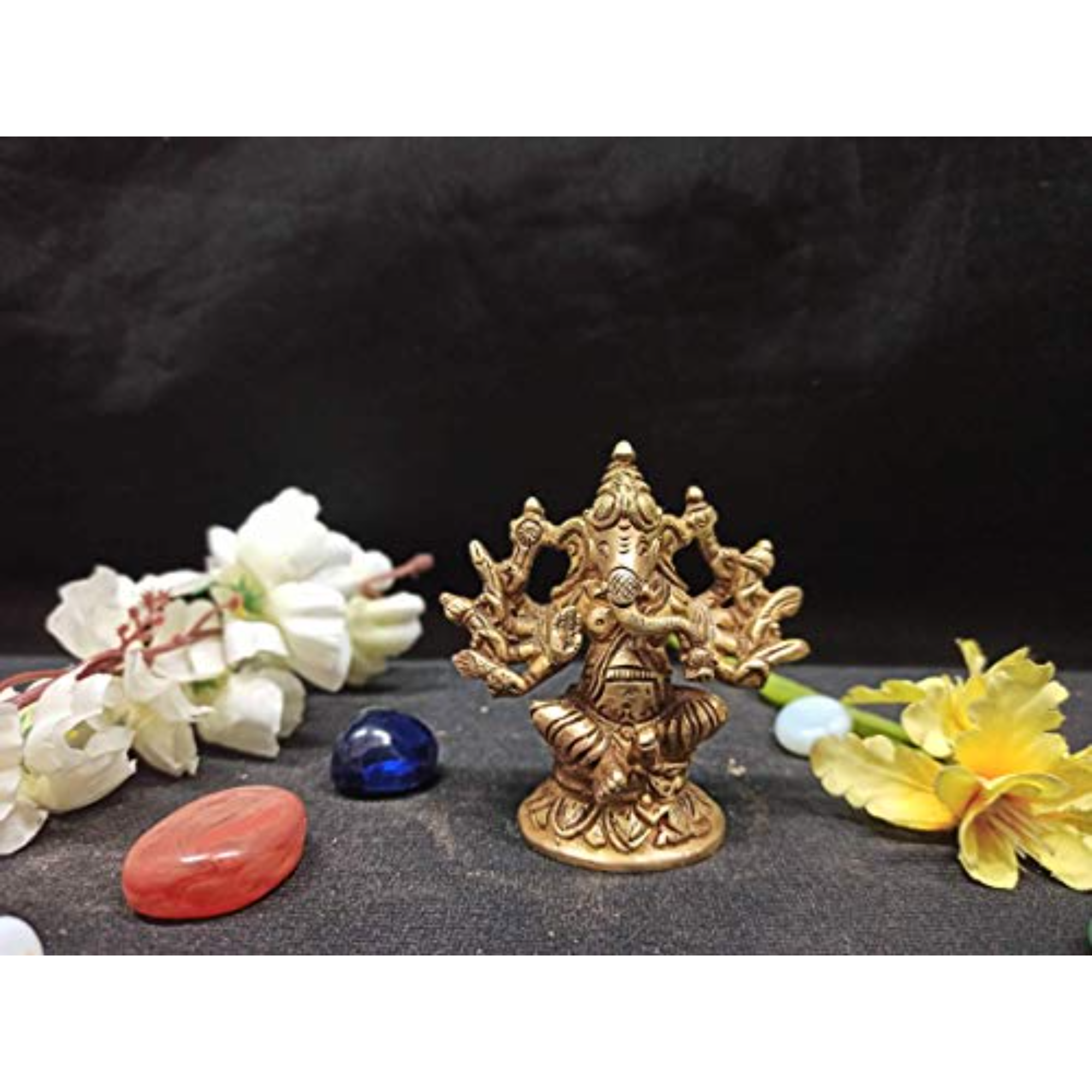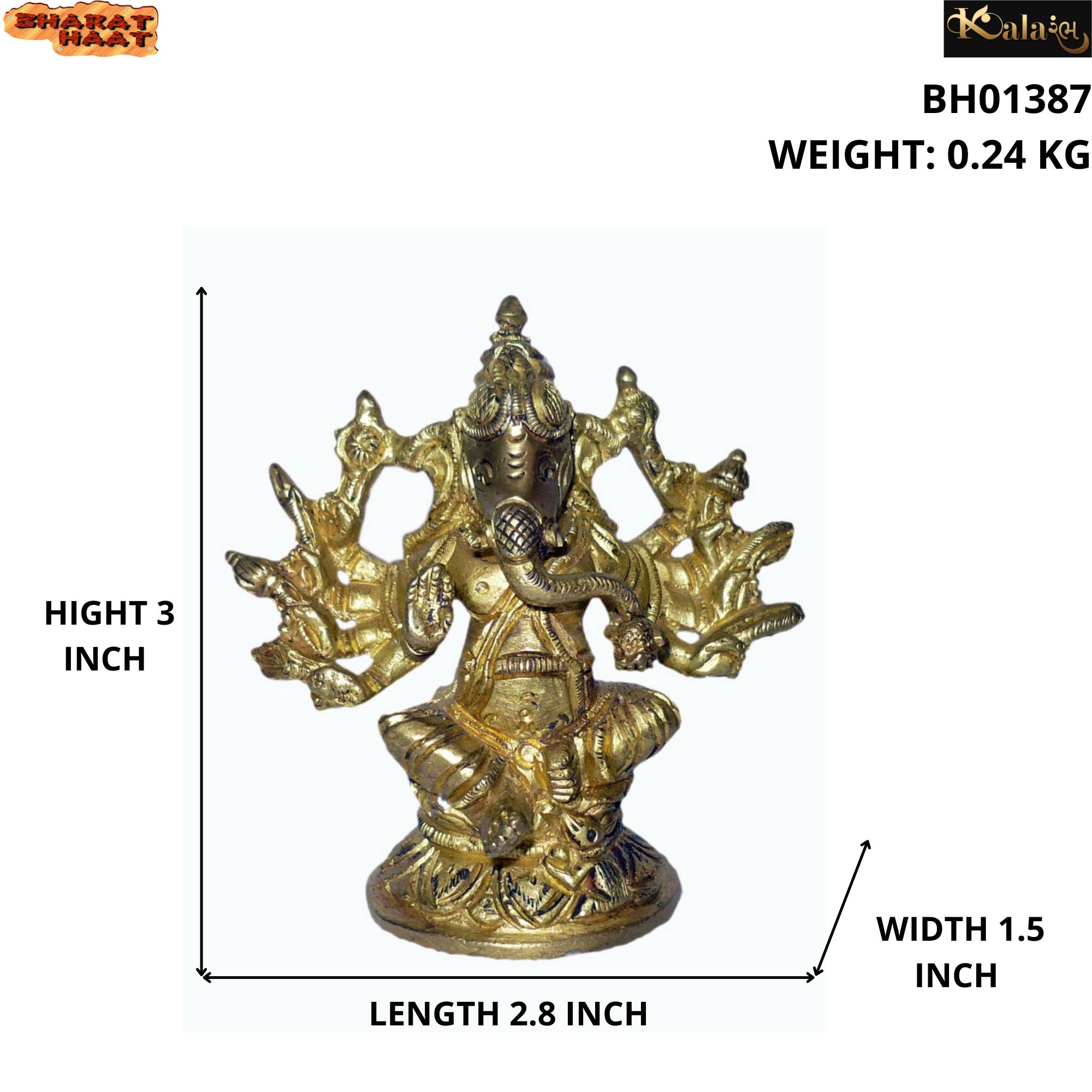 Handcrafted Brass 12 Hand Ganesha Small – 2.8-inch decorative brass Ganesha idol, ideal for pooja, home décor, or gifting.