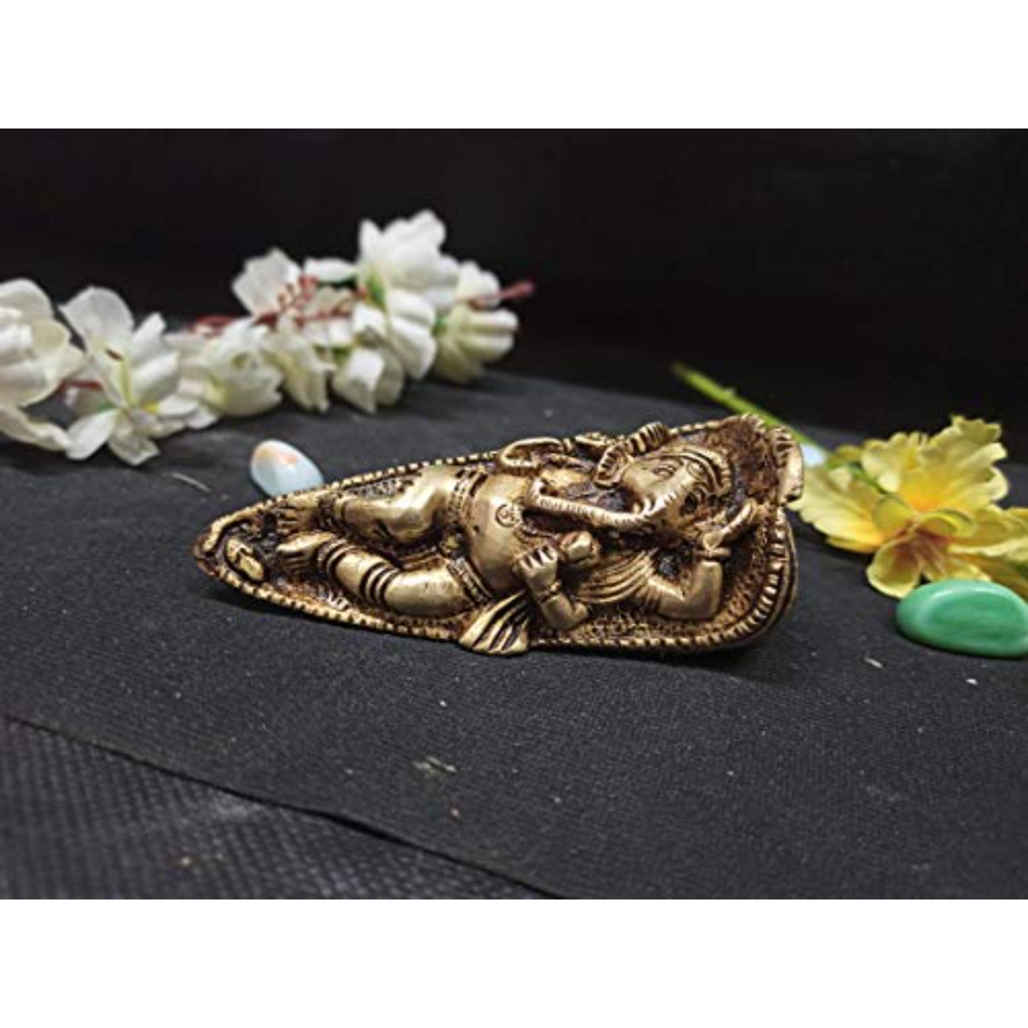 Design: Ganesha depicted sleeping on a pan, perfect for small pooja altars or décor