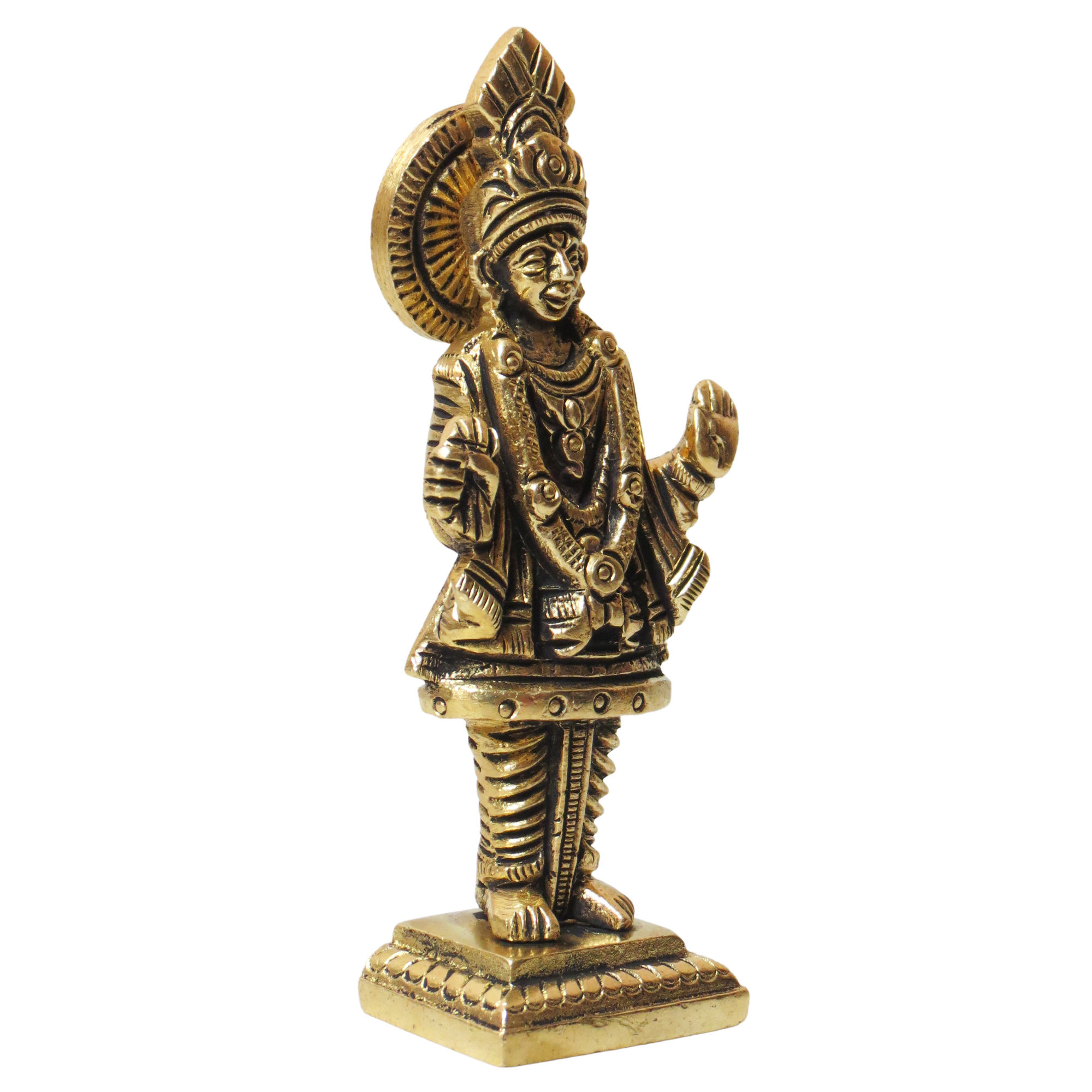 This elegant brass idol is handcrafted by skilled Indian artisans, showcasing traditional artistry and fine detailing that highlights Swaminarayan’s calm and powerful presence. The polished golden brass finish enhances its beauty and gives it a divine aura.