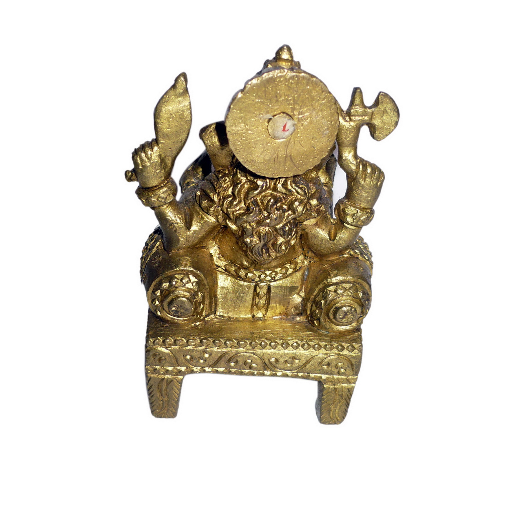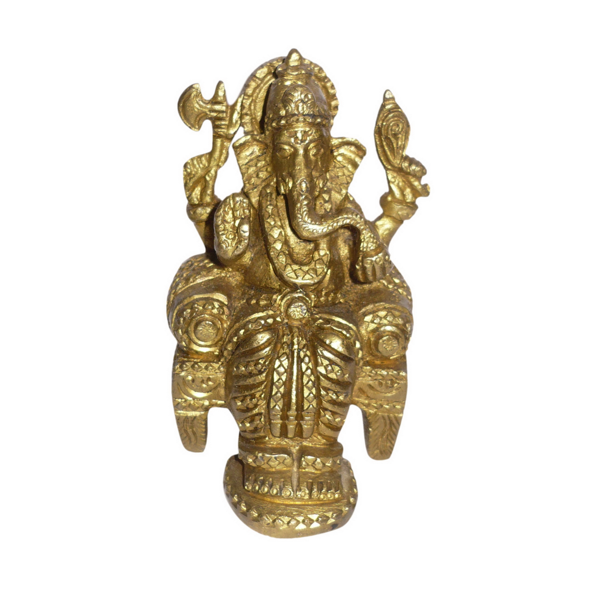 Brass Ganesha Sitting on Sinhasan Small Idol KBH01398