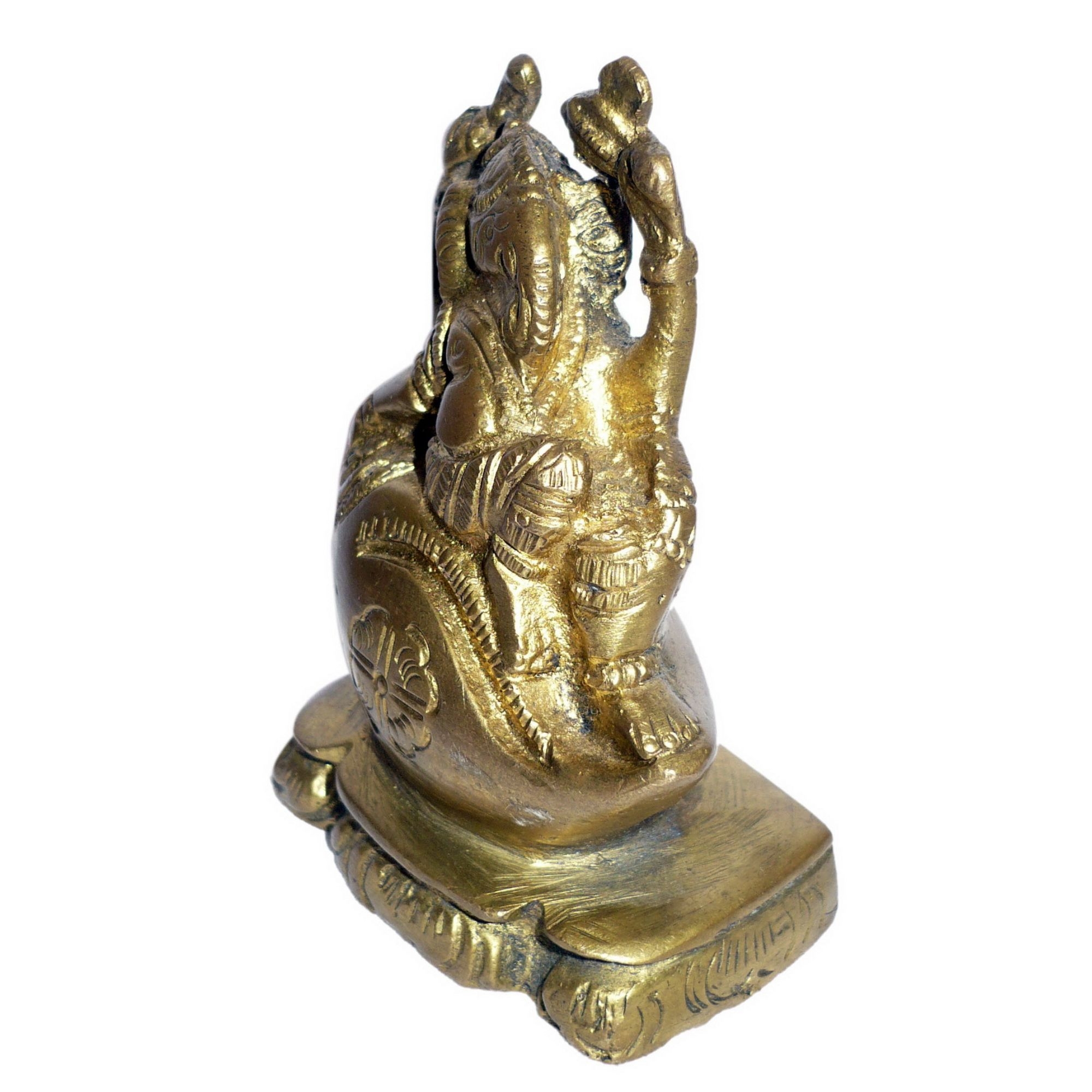 Brass Ganesha Sitting on Shankh Small Idol KBH01405
