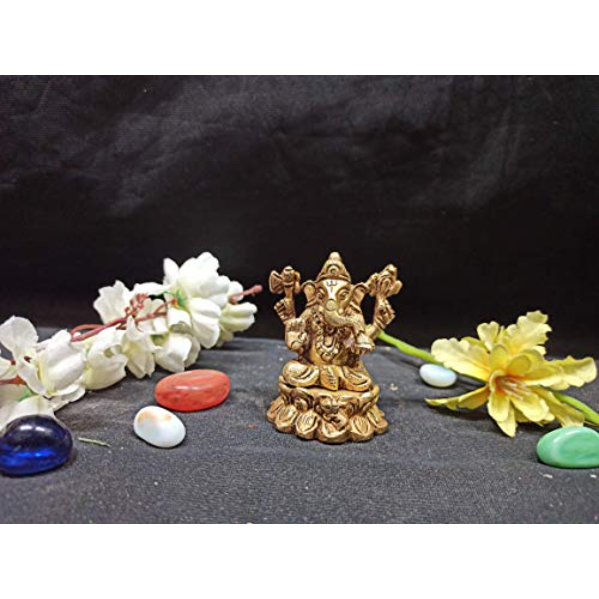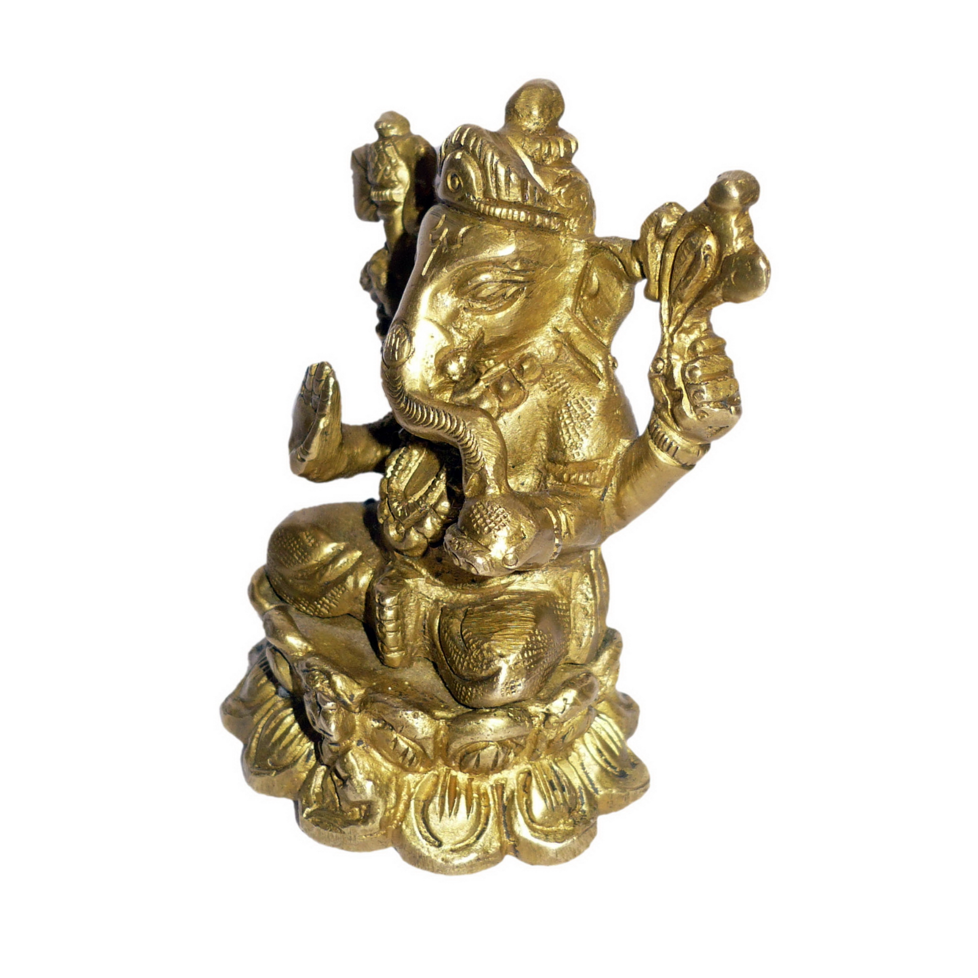 Handcrafted Brass Kamal Sitting Ganesha Mid – mid-size decorative brass Ganesha idol, perfect for pooja, home décor, or gifting.