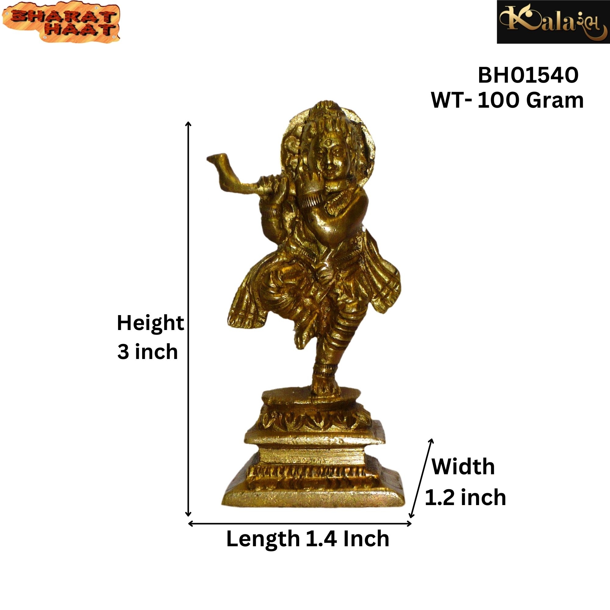 Elegant Brass Krishna Dancing Standing Mid — mid-size decorative brass idol showcasing the playful and divine dance of Lord Krishna, ideal for décor or gifting.
