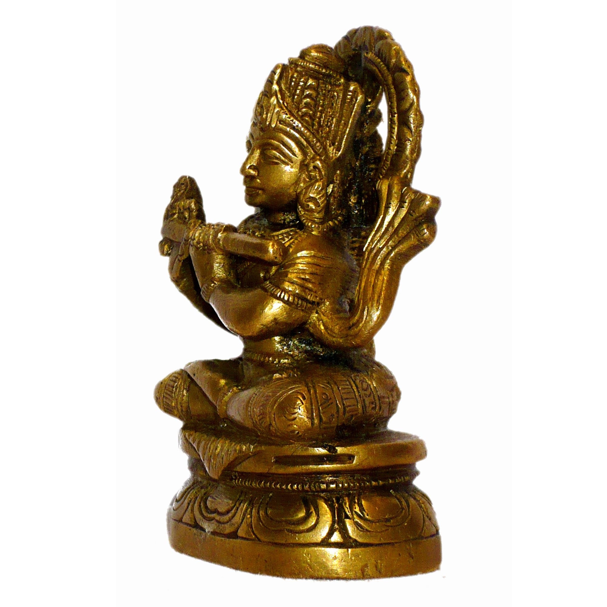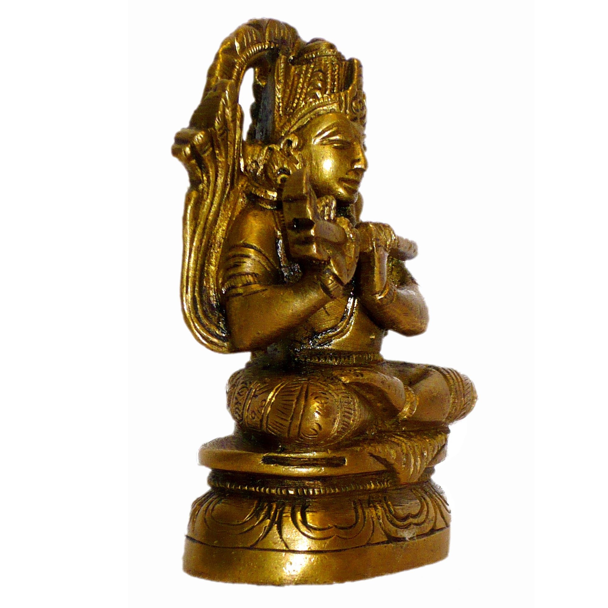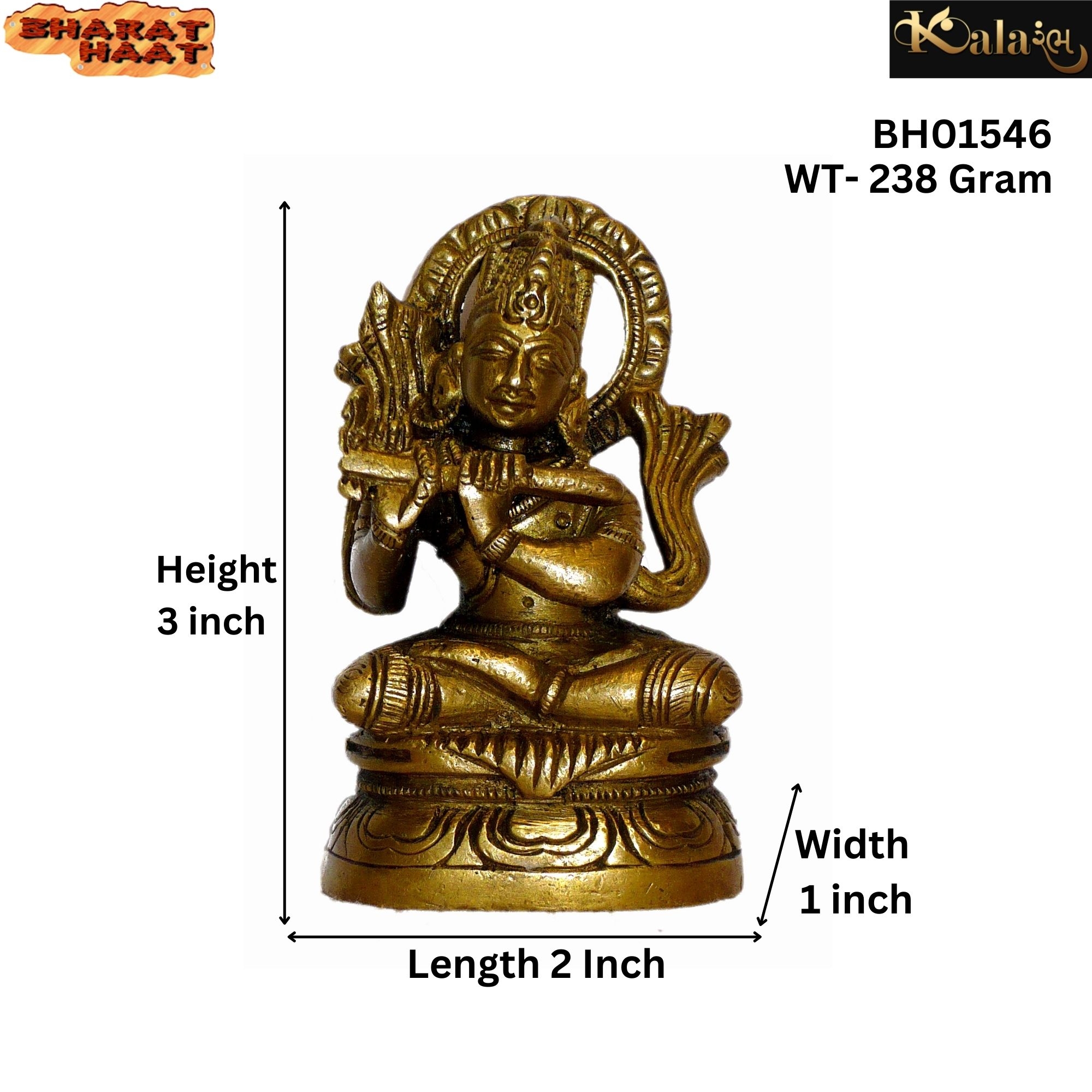 Handcrafted Brass Krishna Sitting Mid — mid-size decorative brass idol representing Lord Krishna, perfect for home temples, décor, or gifting.
