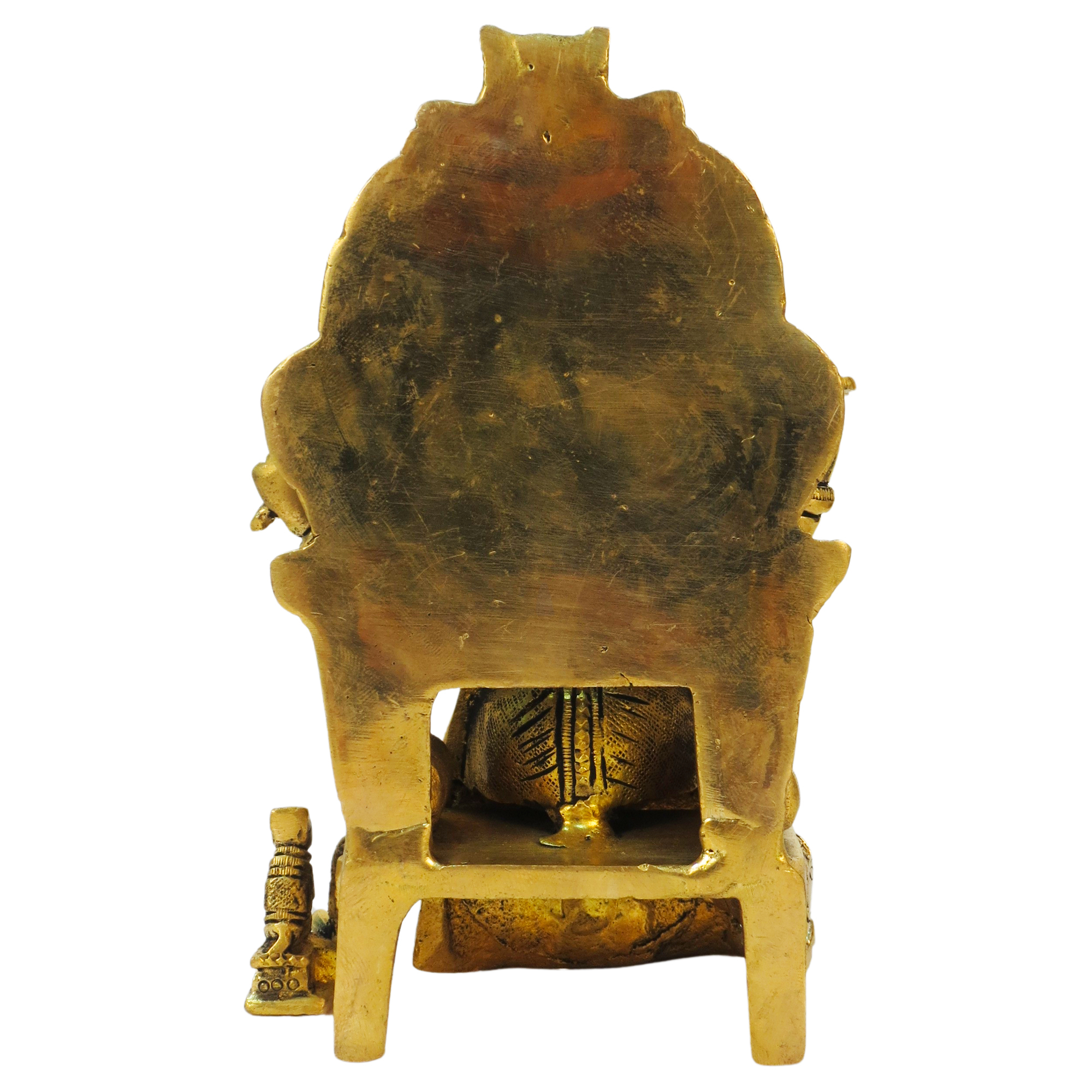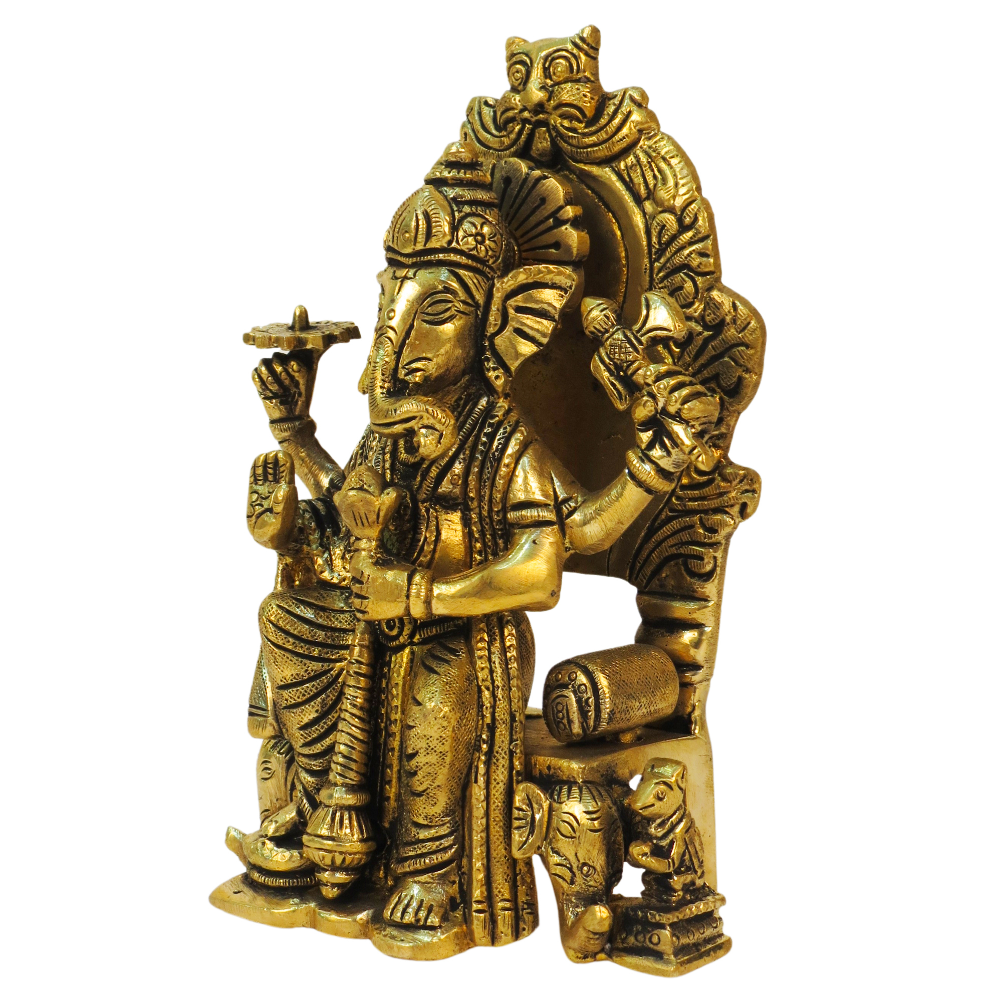 Expertly handcrafted by skilled Indian artisans using pure solid brass, this idol stands out for its detailed carving, expressive features, and traditional finish. The design reflects the grandeur of Lord Ganesha seated in a royal posture, radiating positivity and divine grace.