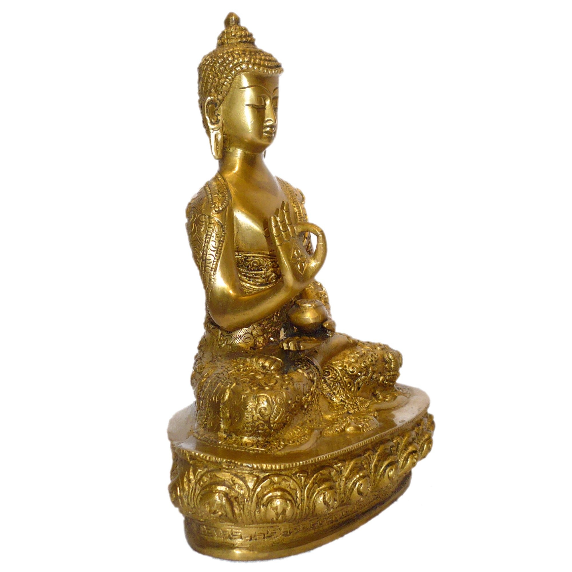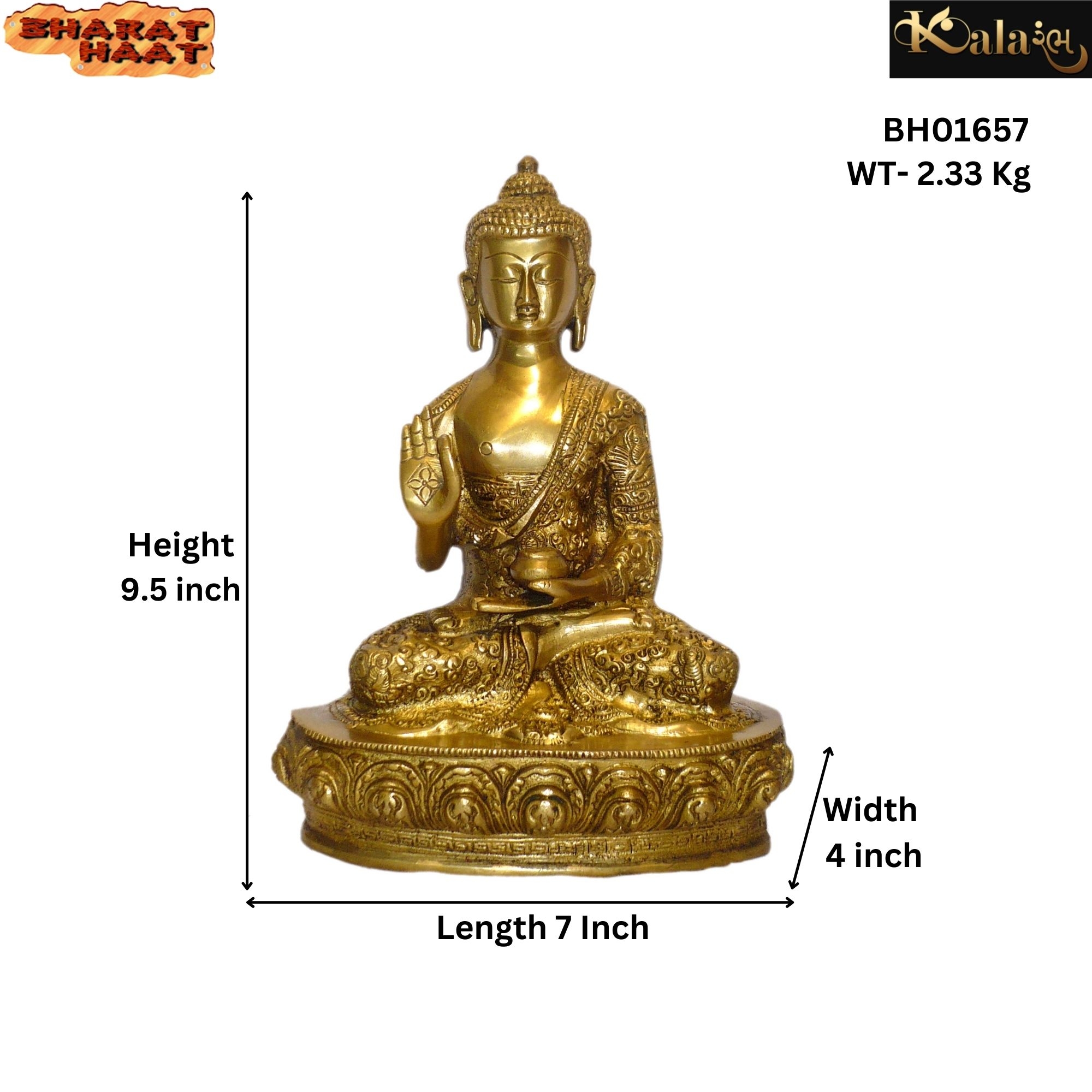 Elegant Brass Story Buddha Mid idol symbolizing peace and mindfulness — ideal for enhancing positive energy and décor in homes, offices, and meditation spaces.