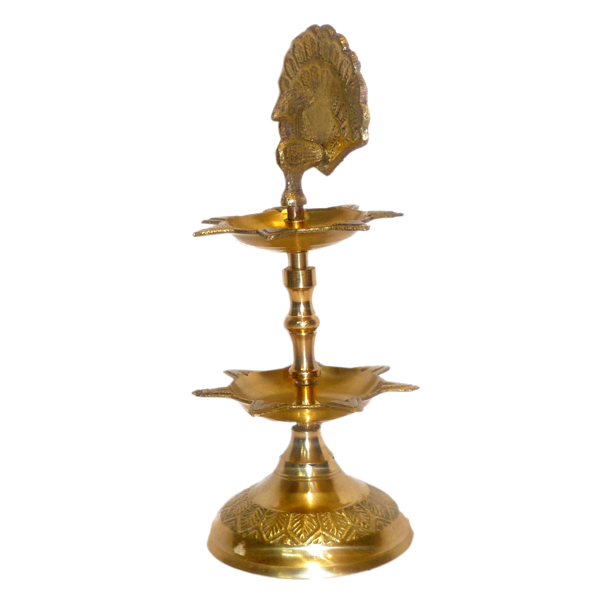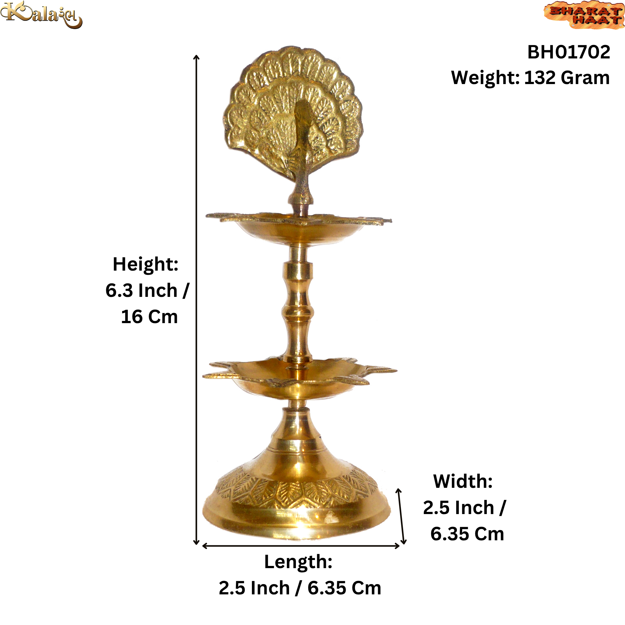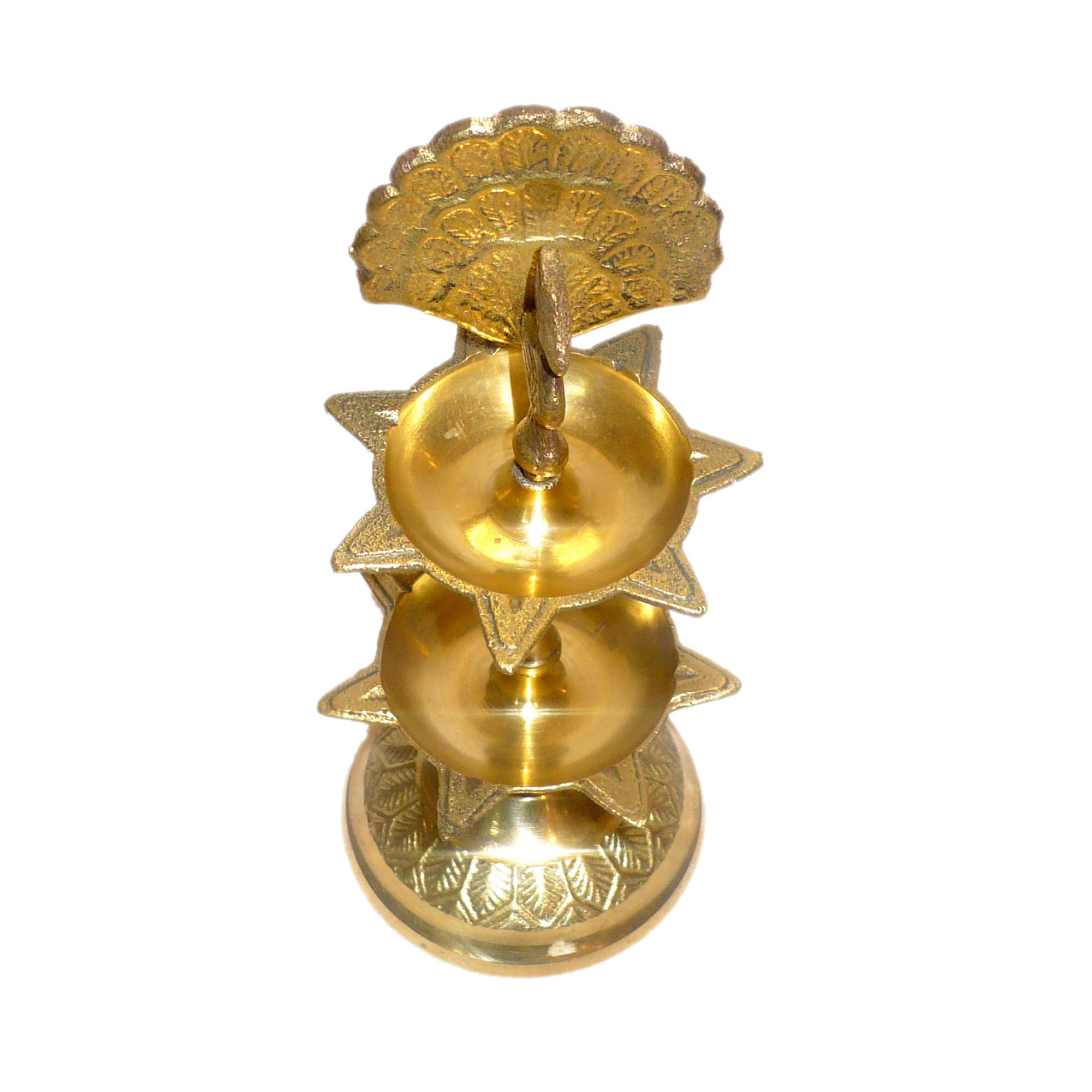 Brass Peacock Divi 2 Step Mid — medium 2-tiered peacock design crafted from high-quality brass, perfect for home décor or pooja rituals.