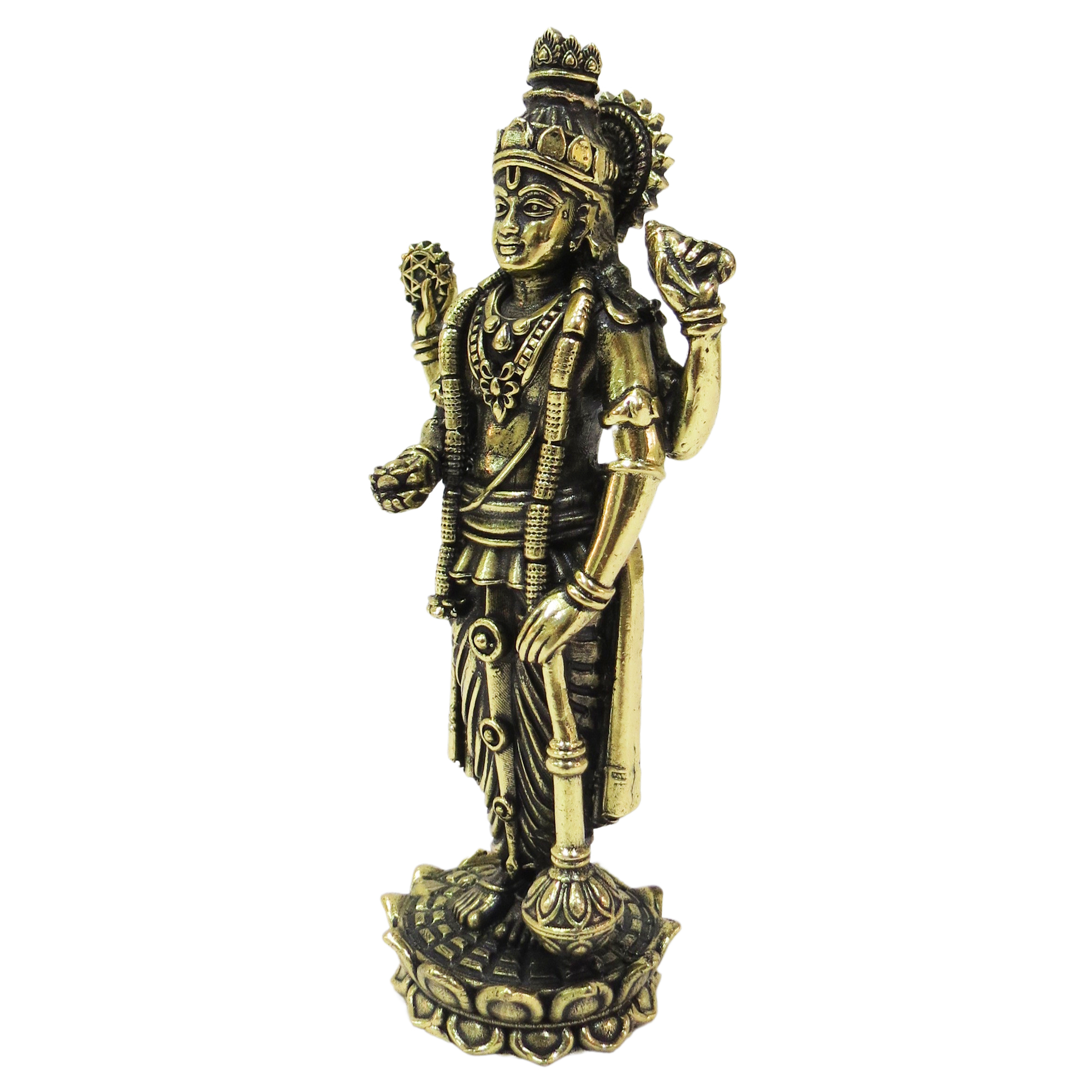Enhance your spiritual space with this Handcrafted Brass Vishnu Standing Idol, representing Lord Vishnu, the preserver of the universe and a symbol of protection, harmony, and prosperity. Made from pure solid brass, this idol brings divine energy and elegance to your home or office.