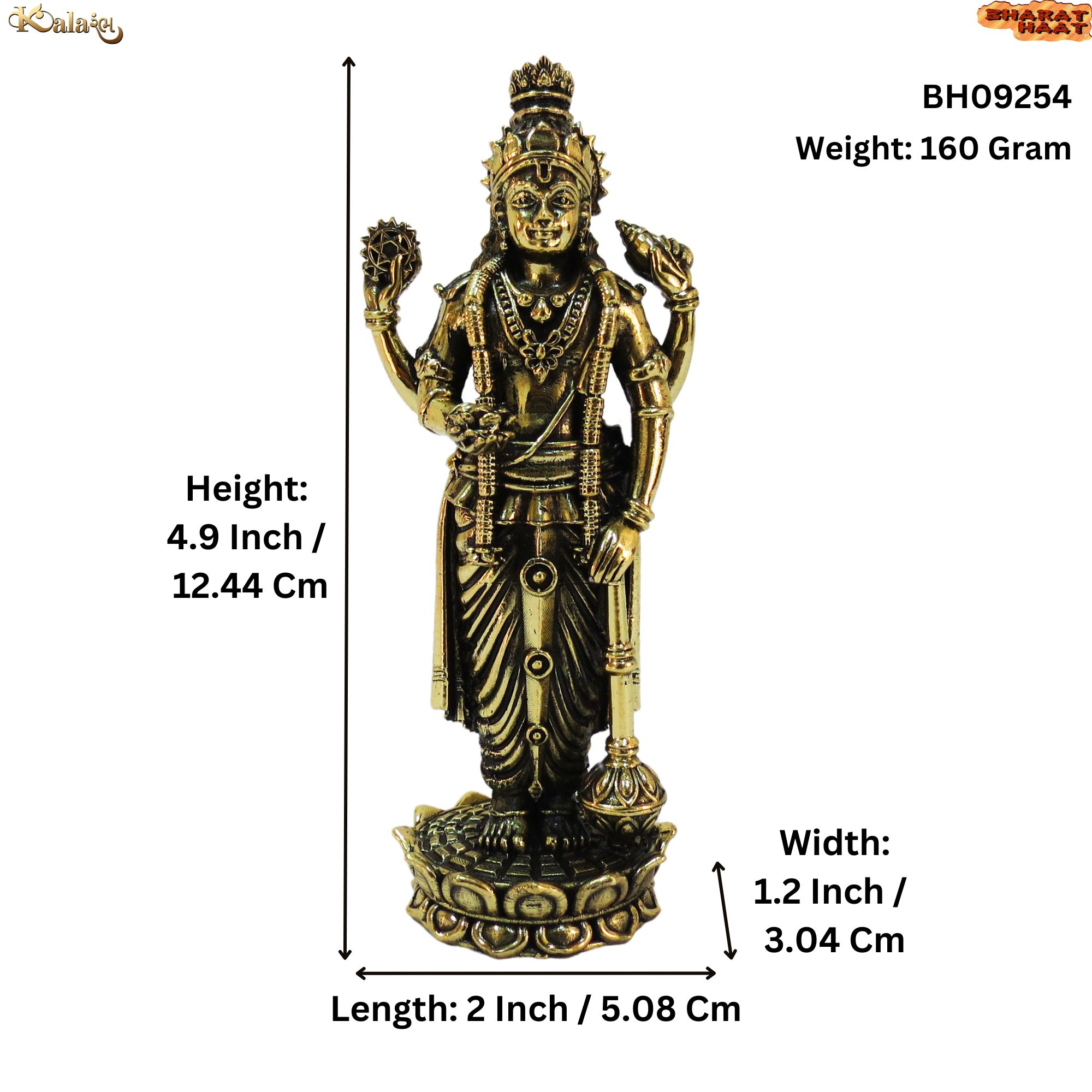 The golden polished finish enhances its spiritual aura and makes it a visually striking decorative piece. This Brass Vishnu Standing Idol is believed to bring peace, protection, prosperity, and positivity into your life, creating a harmonious environment.