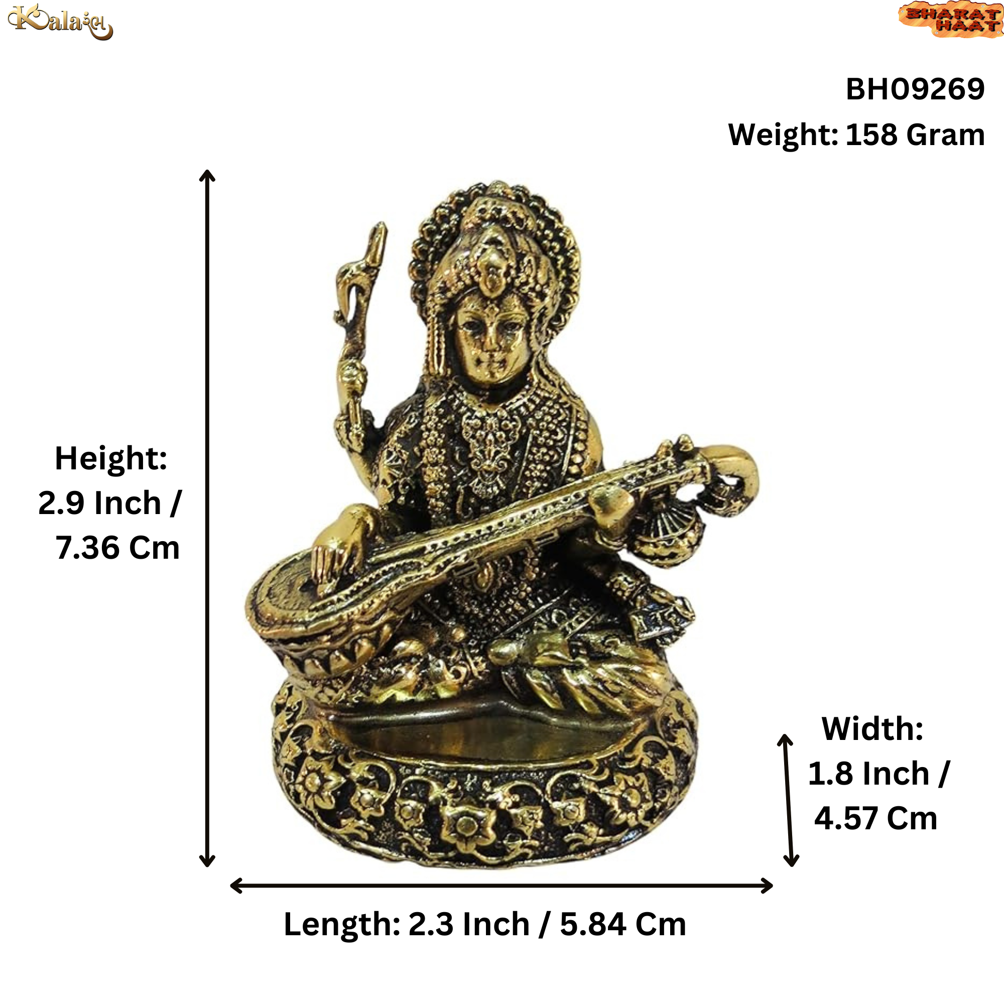 This elegant brass idol features fine handcrafted detailing by traditional Indian artisans, giving it a radiant and spiritual appeal. Measuring 2.3 x 1.8 x 2.9 Inch (5.84 x 4.57 x 7.36 Cm) and weighing 158 grams, it is compact yet powerful in its divine presence—perfect for your pooja room, study table, or office desk.