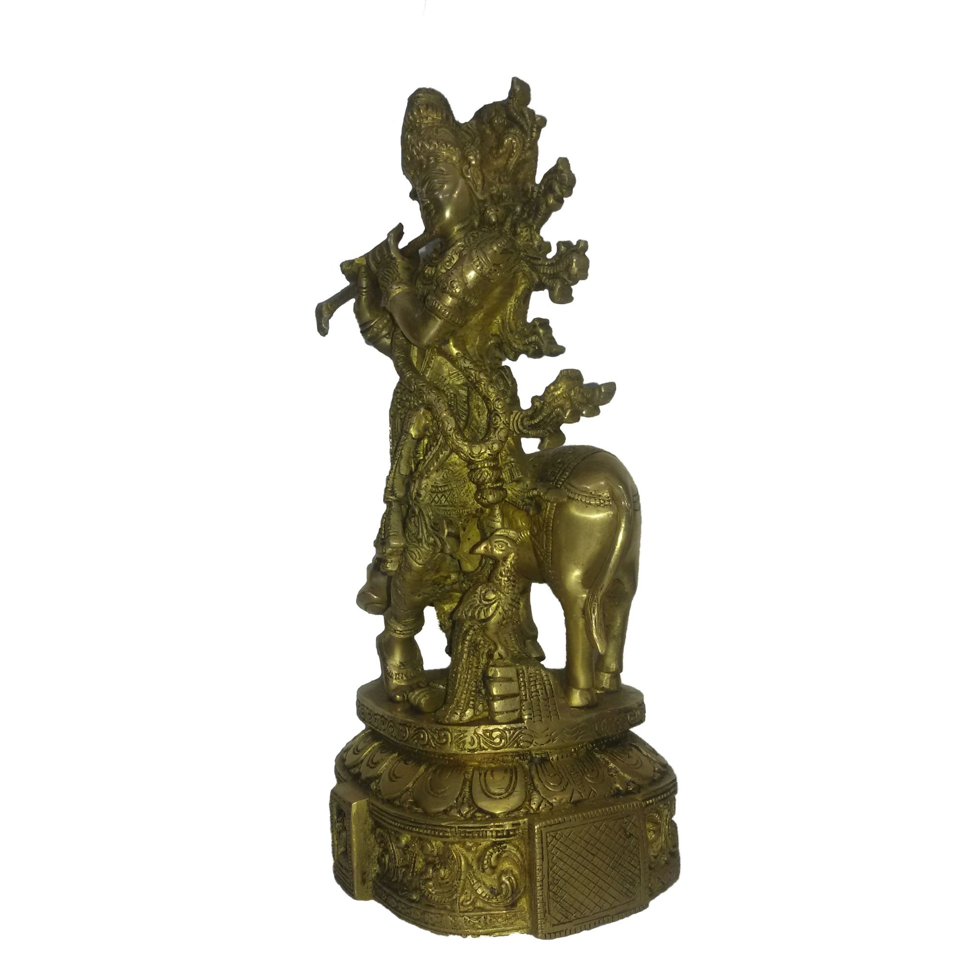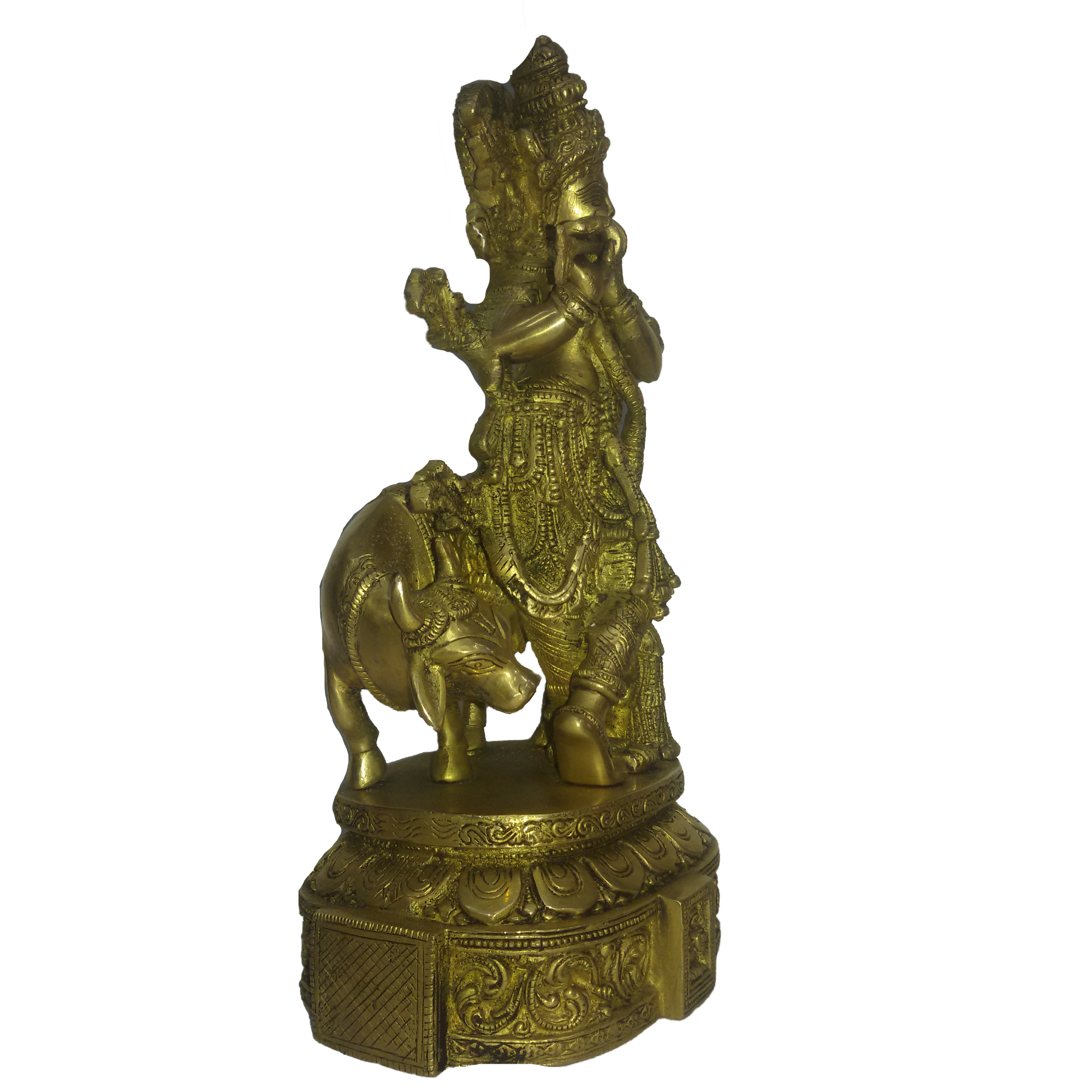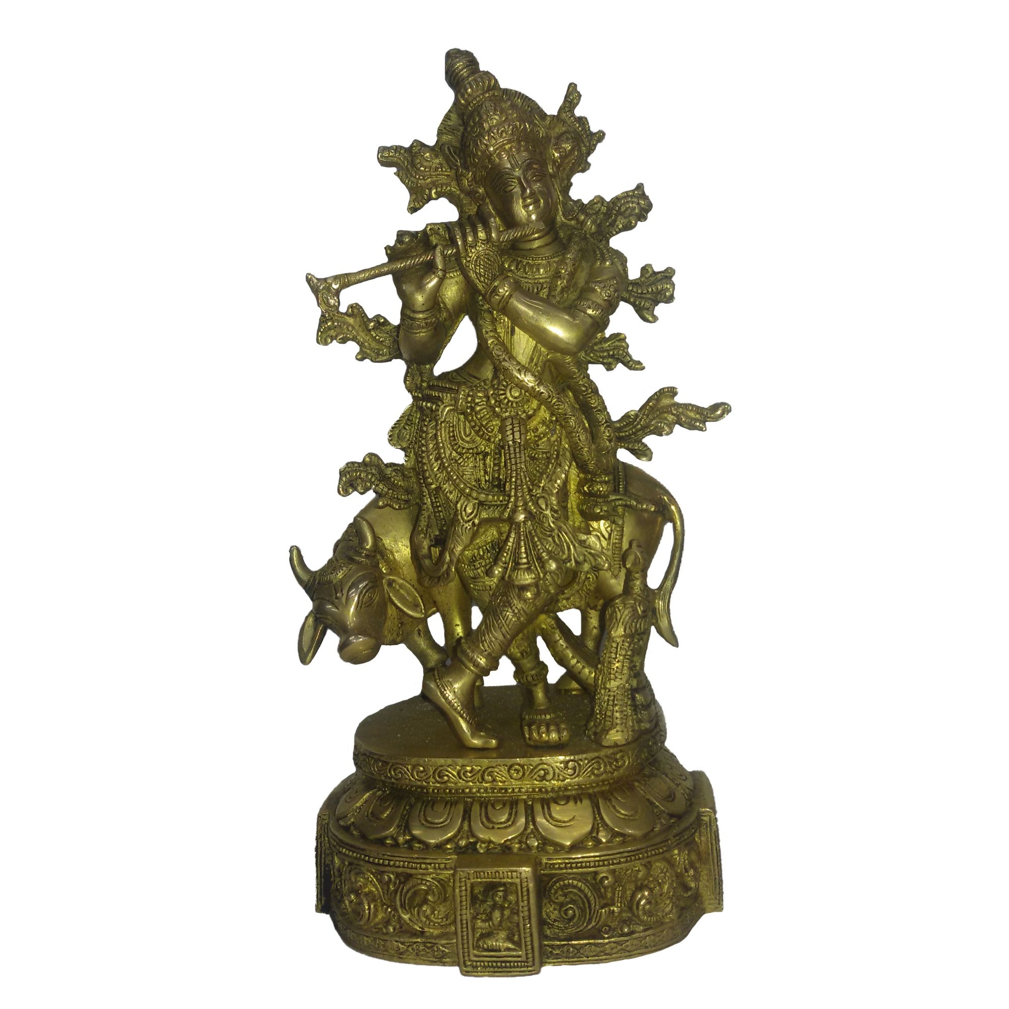Intricate Design: Beautifully crafted Krishna with Cow for a divine touch.