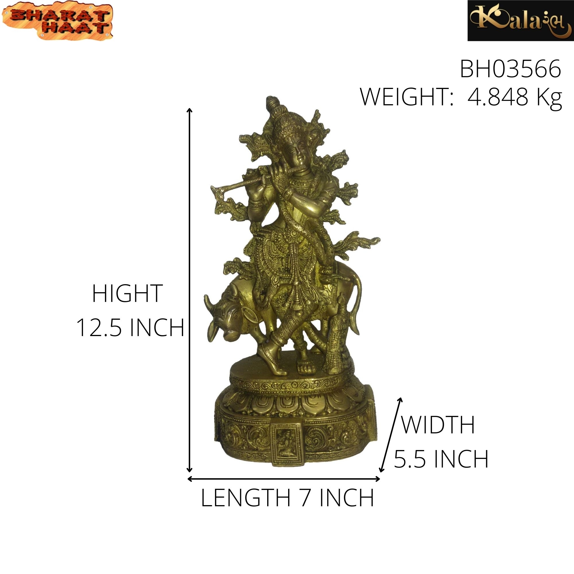 Brass Krishna with Cow statue featuring exquisite craftsmanship. Durable and elegant, ideal for home altars, décor, or gifting.