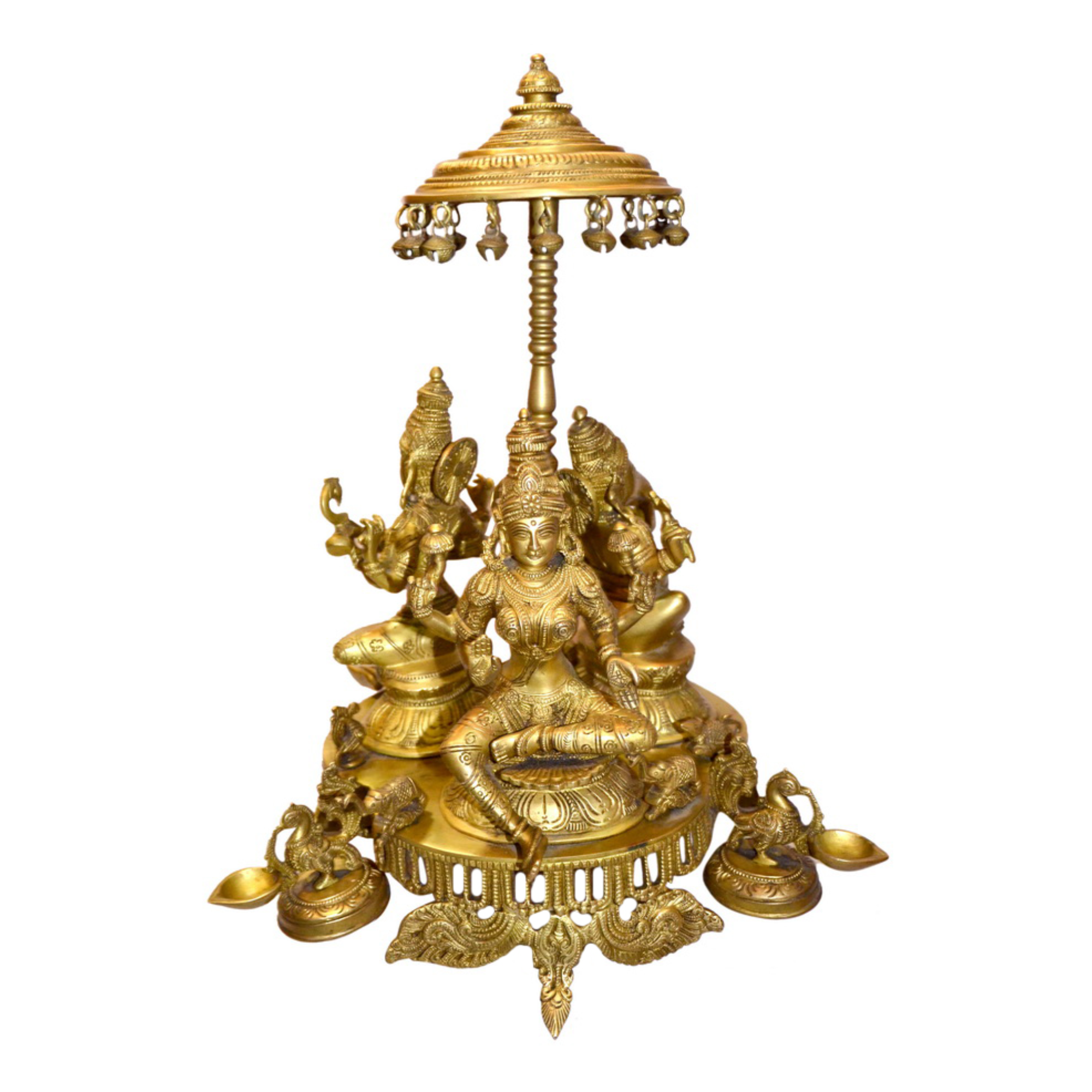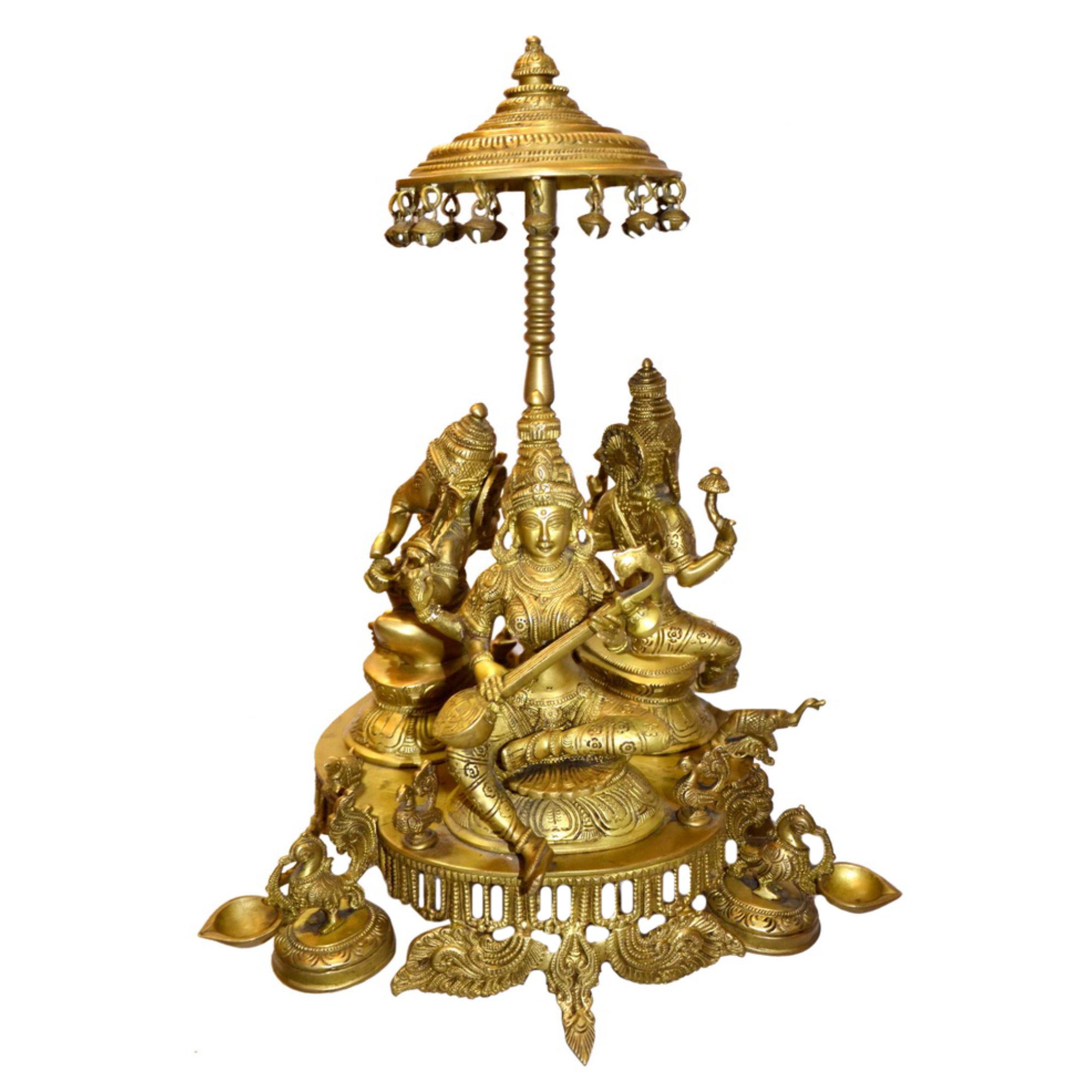 Handcrafted solid brass idol set of Ganesha, Lakshmi & Saraswati