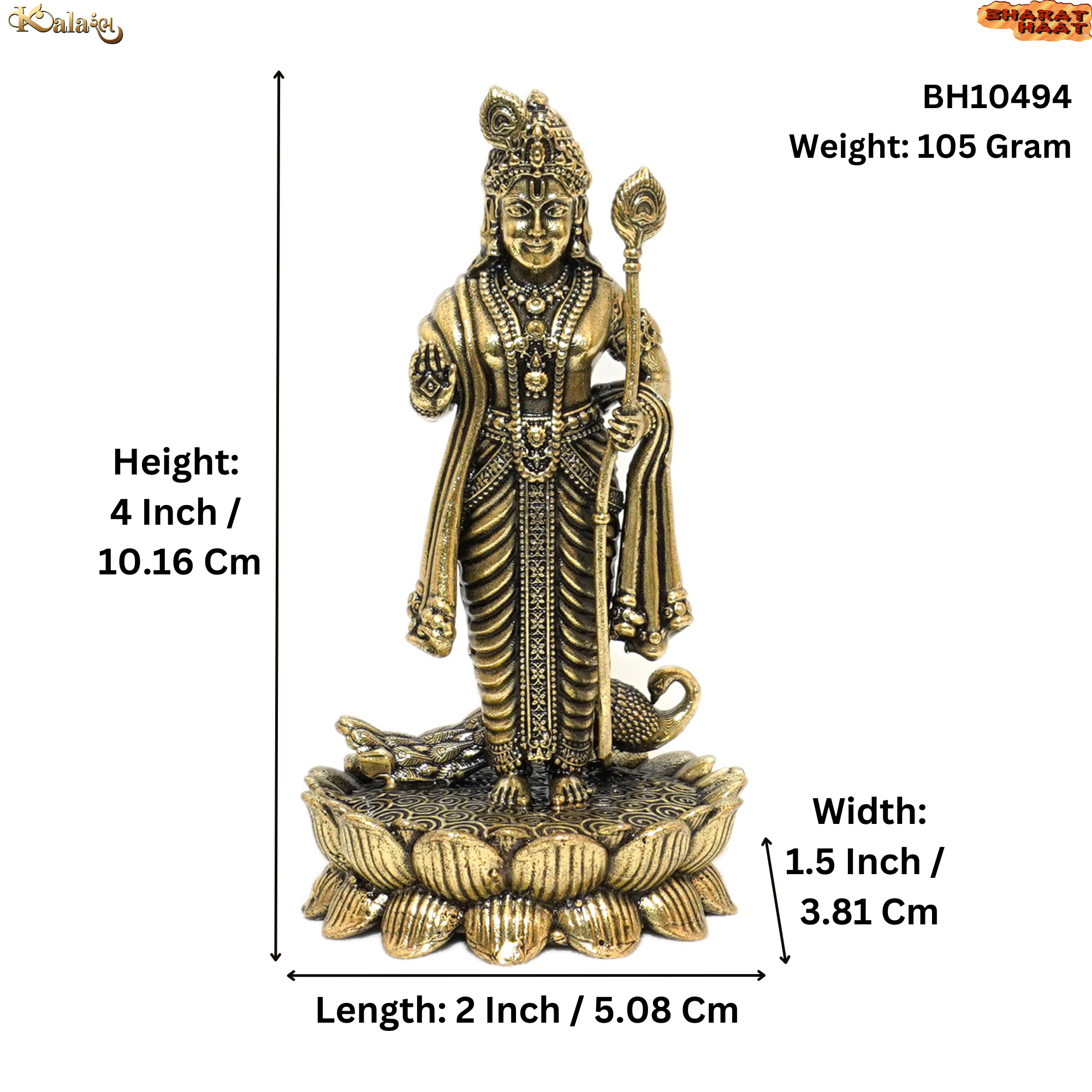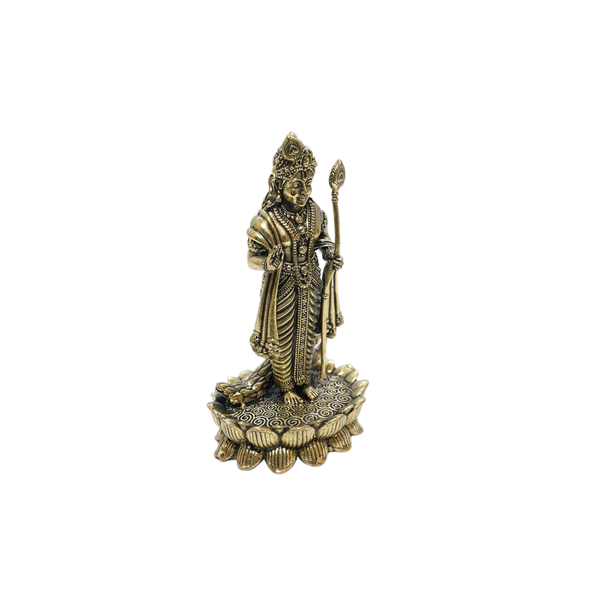 Handcrafted Brass Kartikeya idol, 4 inches tall and 105 grams, ideal for pooja, spiritual décor, and gifting.