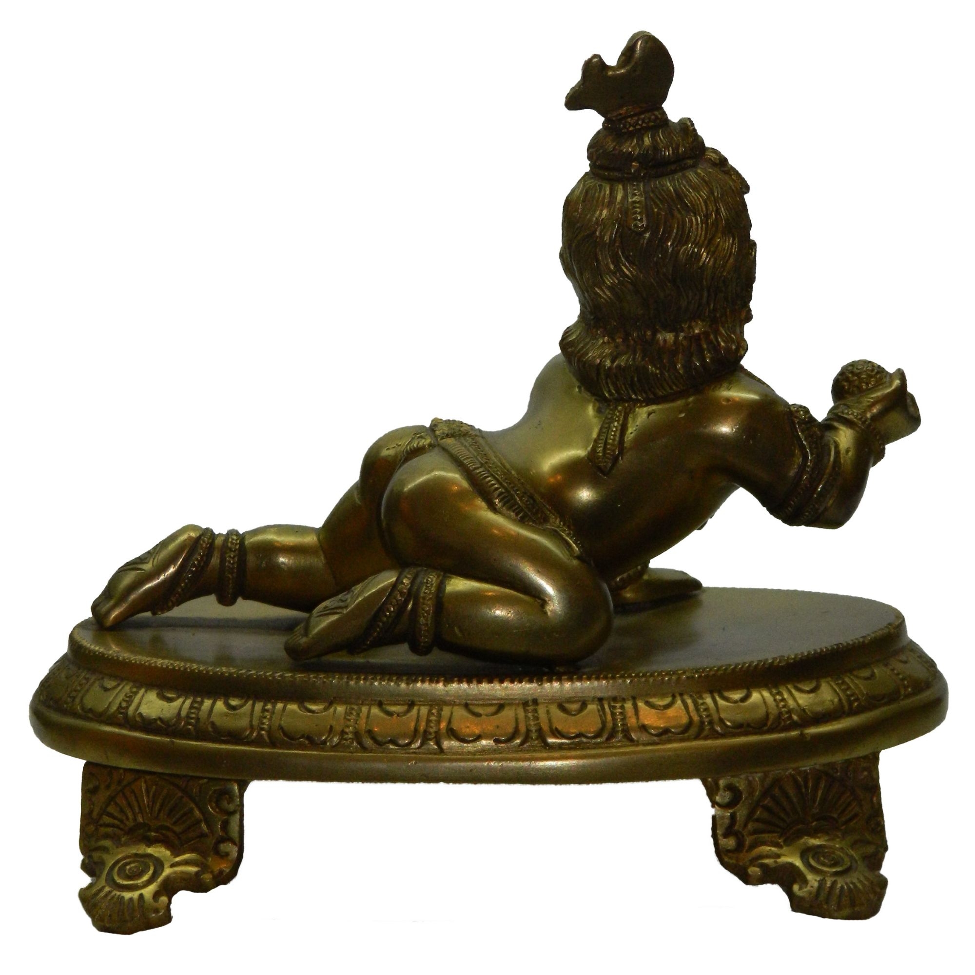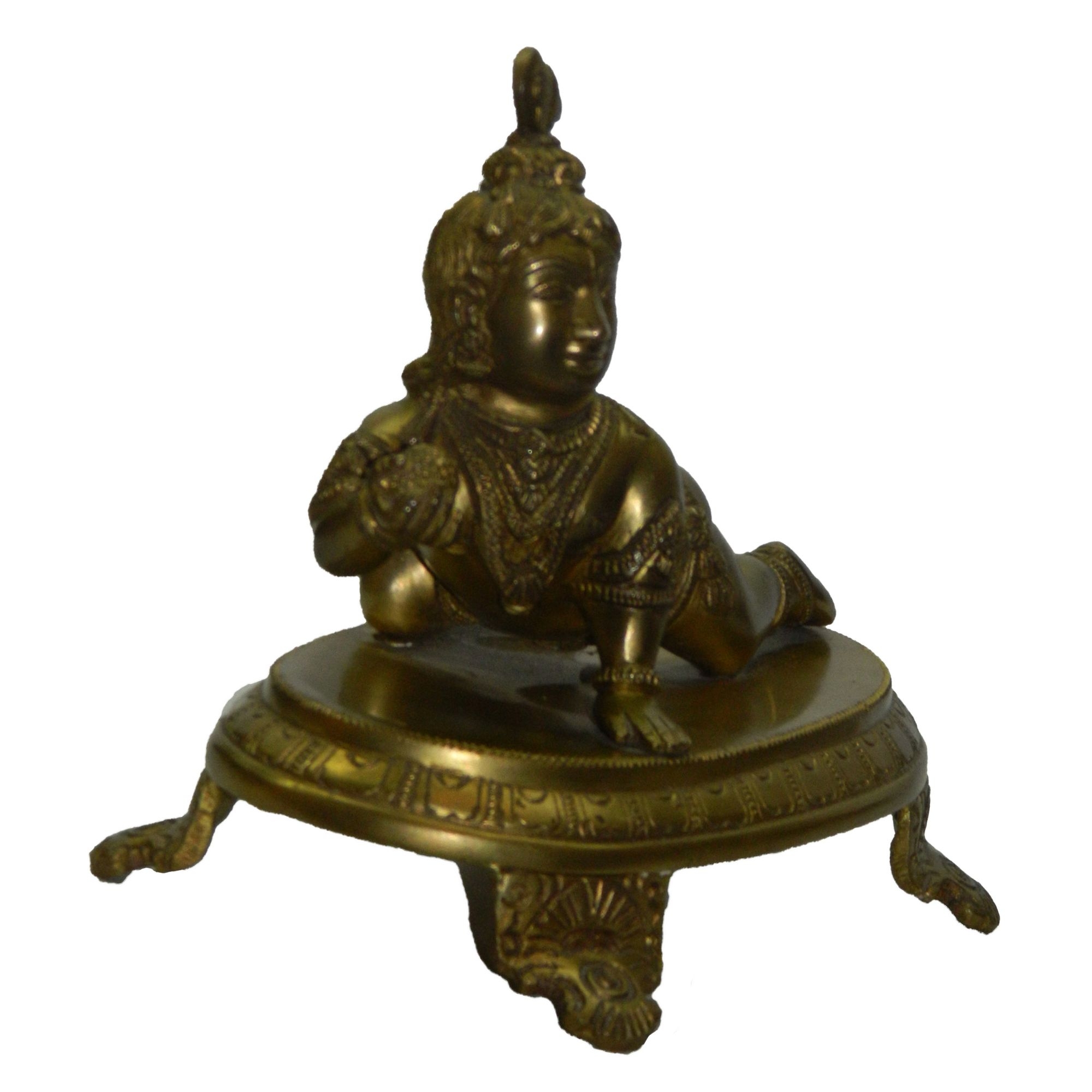 Handcrafted Brass Bal Krishna on Bajath, 6 inches tall and 1.98 Kg, ideal for pooja, home décor, and gifting.