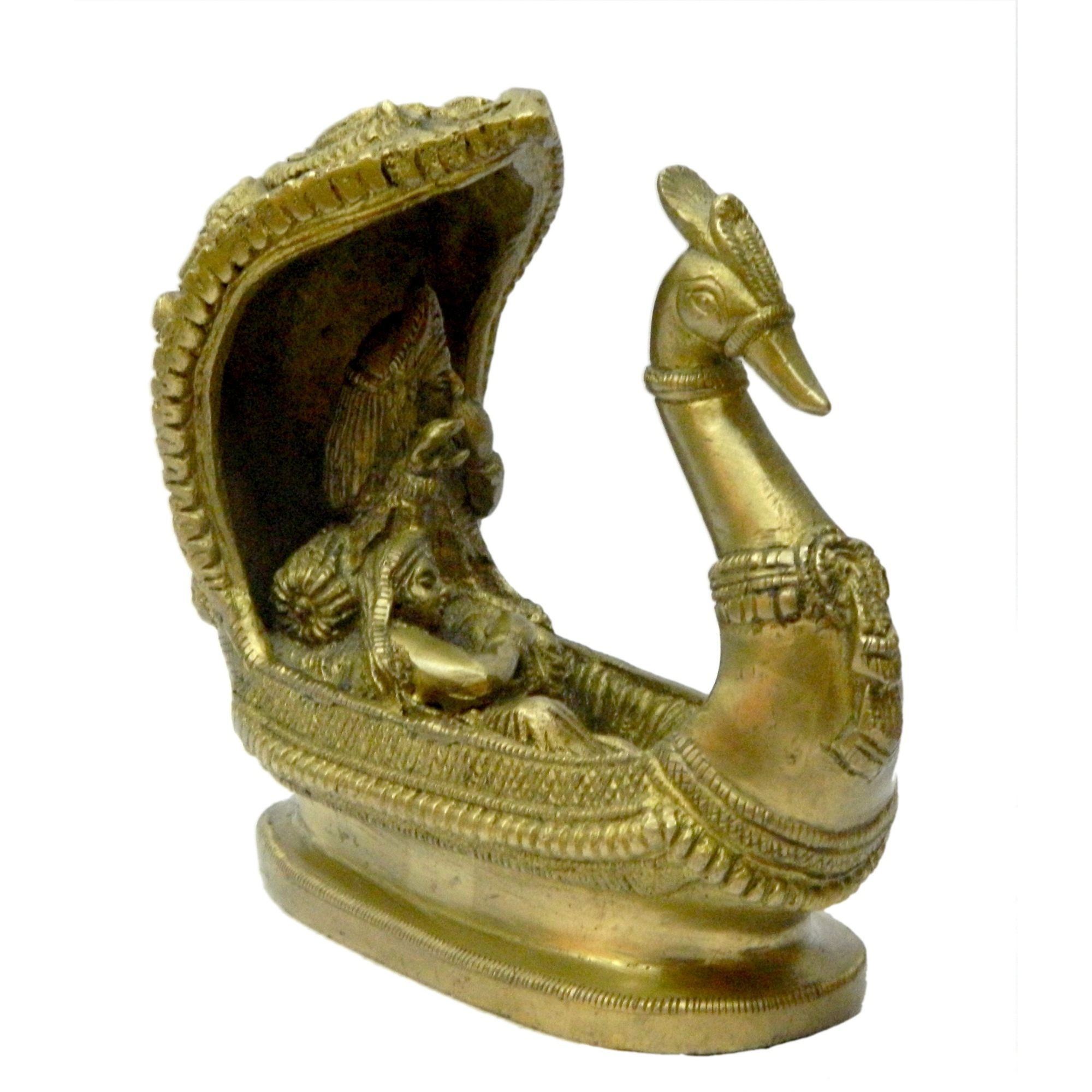 Handcrafted Brass Radha Krishna Sleeping on Duck, 5.5 inches tall and 1.57 Kg, ideal for pooja, home décor, and gifting.