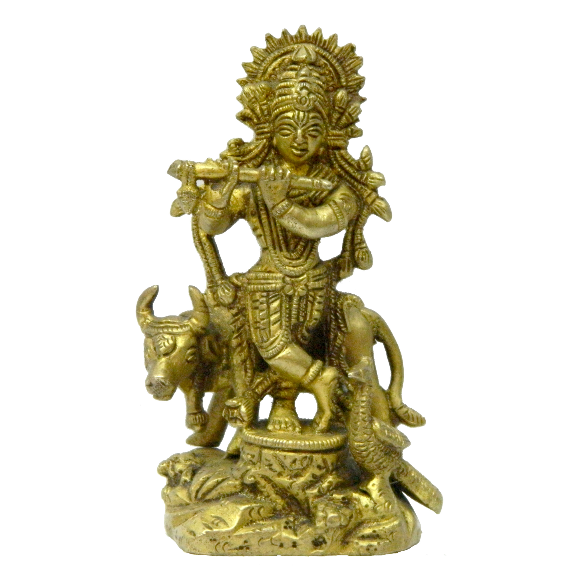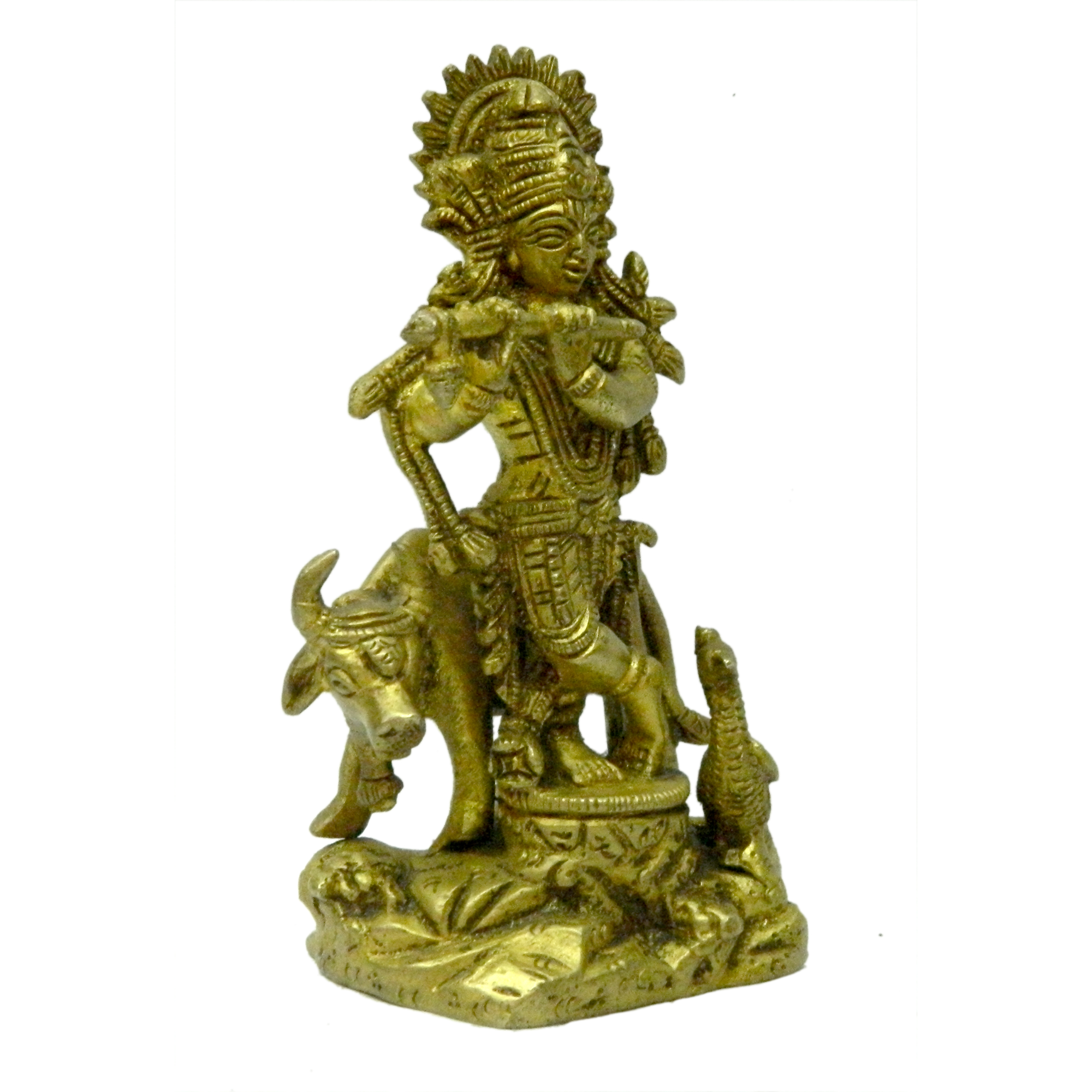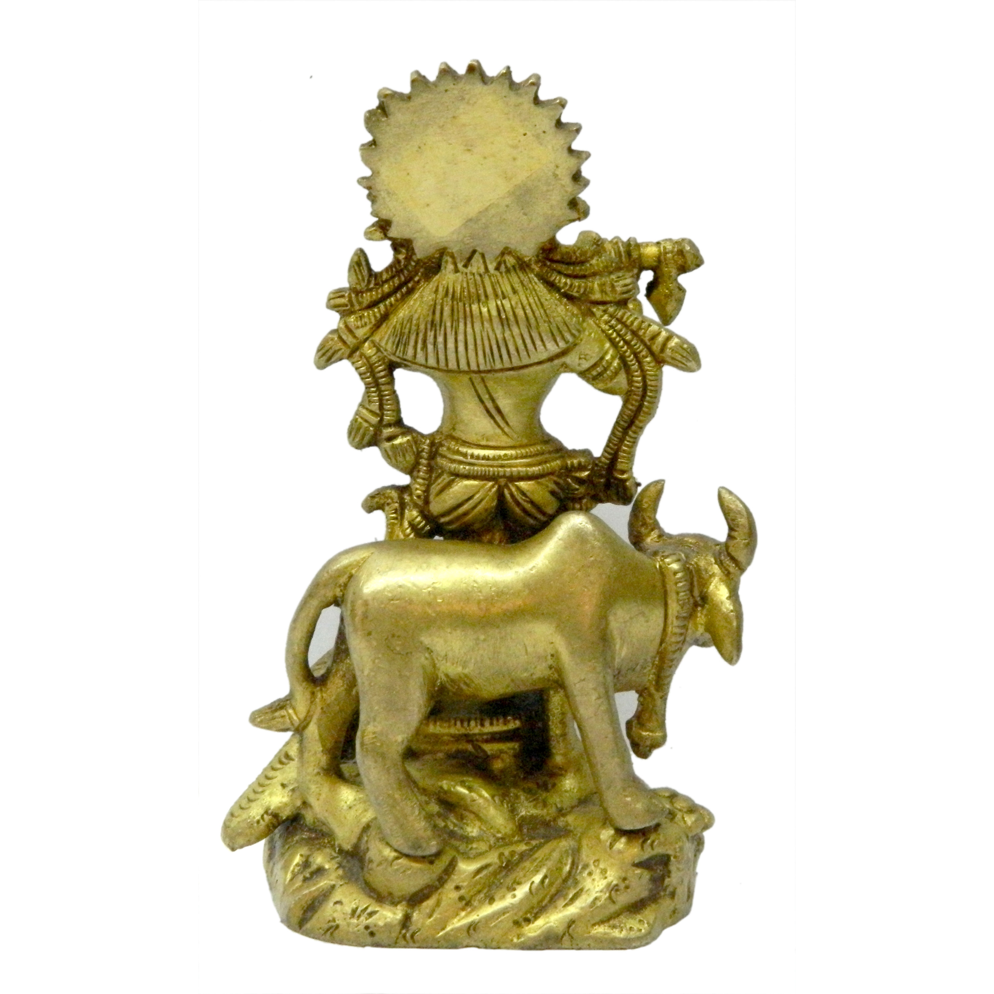 Handcrafted Brass Krishna with Cow, 4.5 inches tall and 506 grams, ideal for pooja, home décor, and gifting.