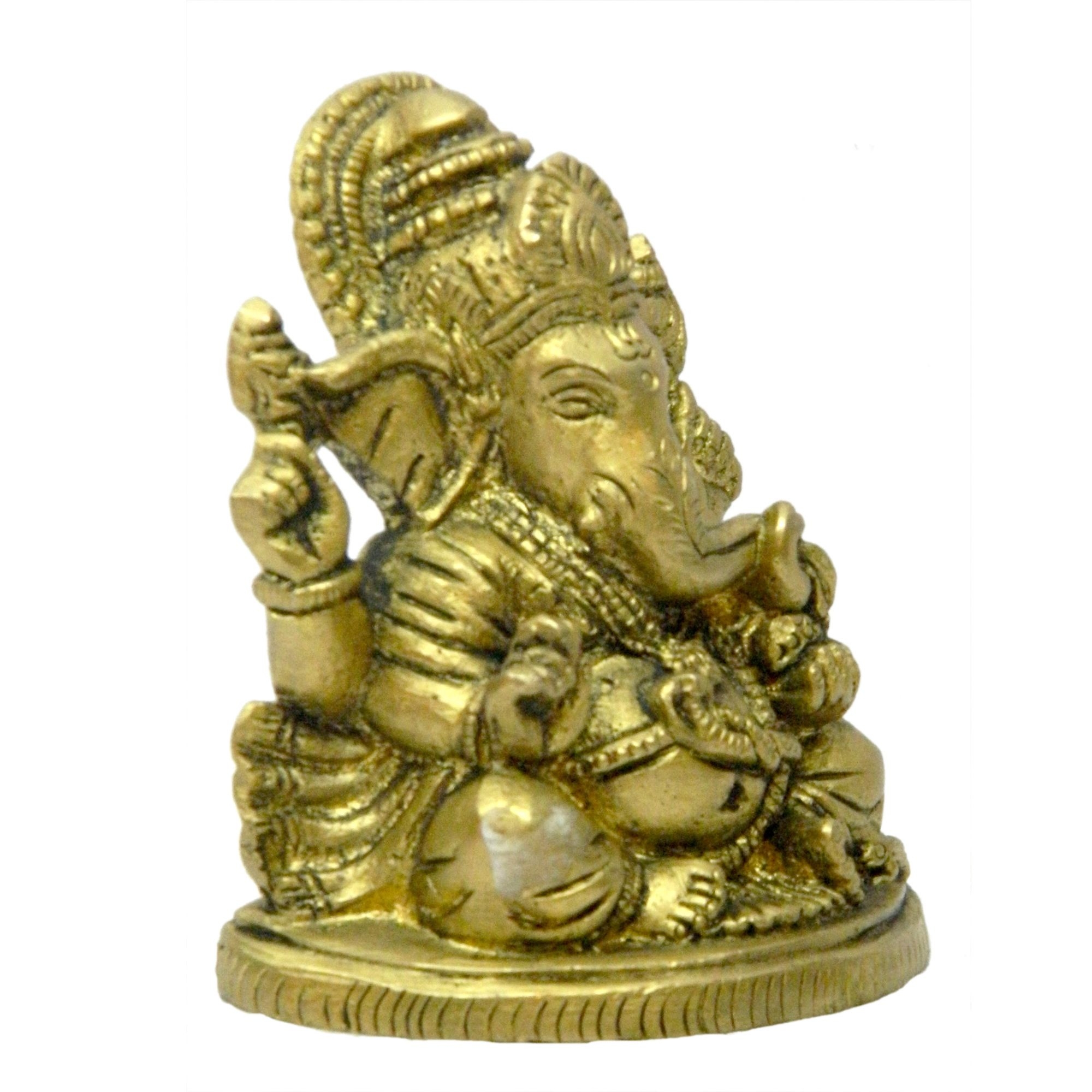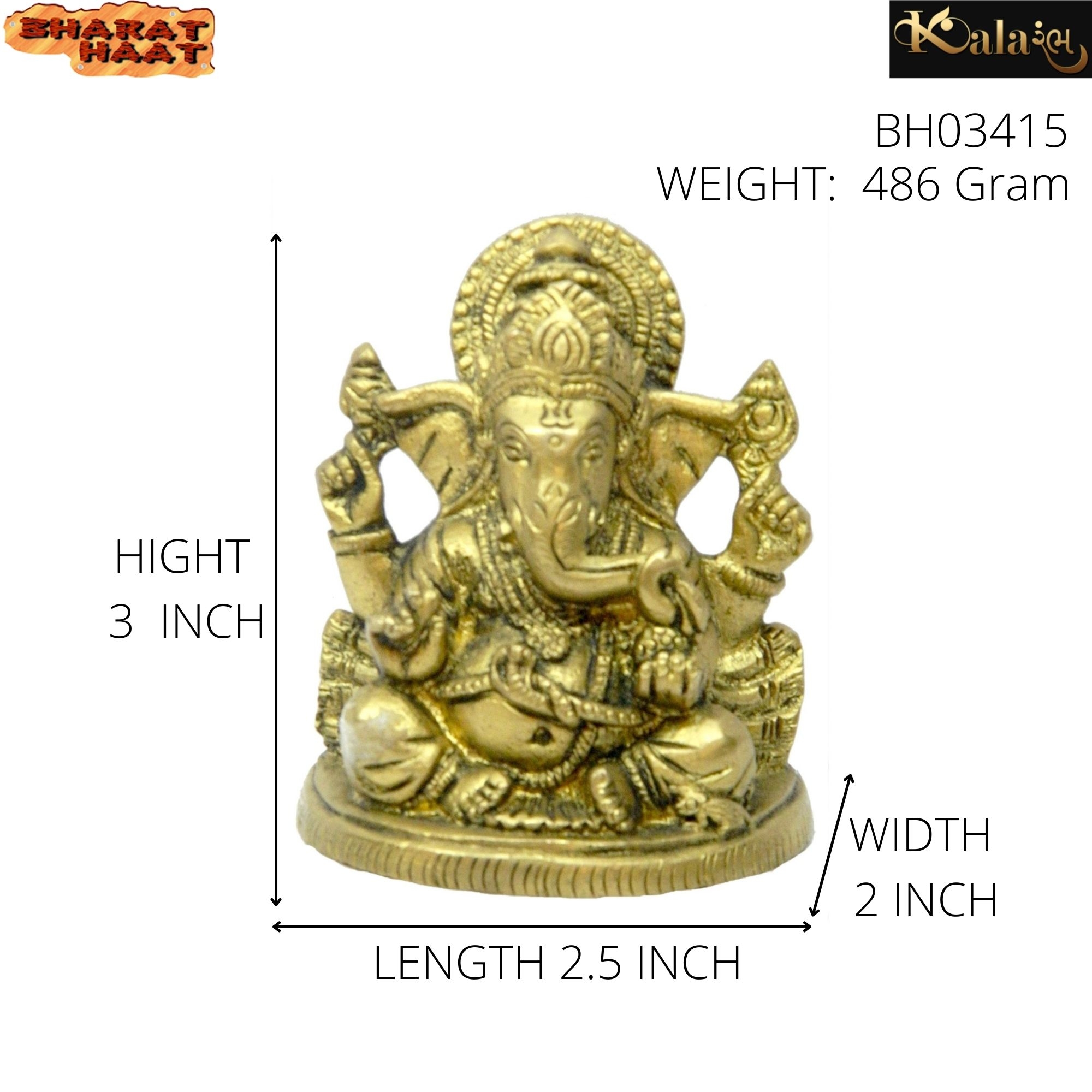 Handcrafted Brass Ganesha Sitting, 3 inches tall and 486 grams, ideal for pooja, home décor, and gifting.