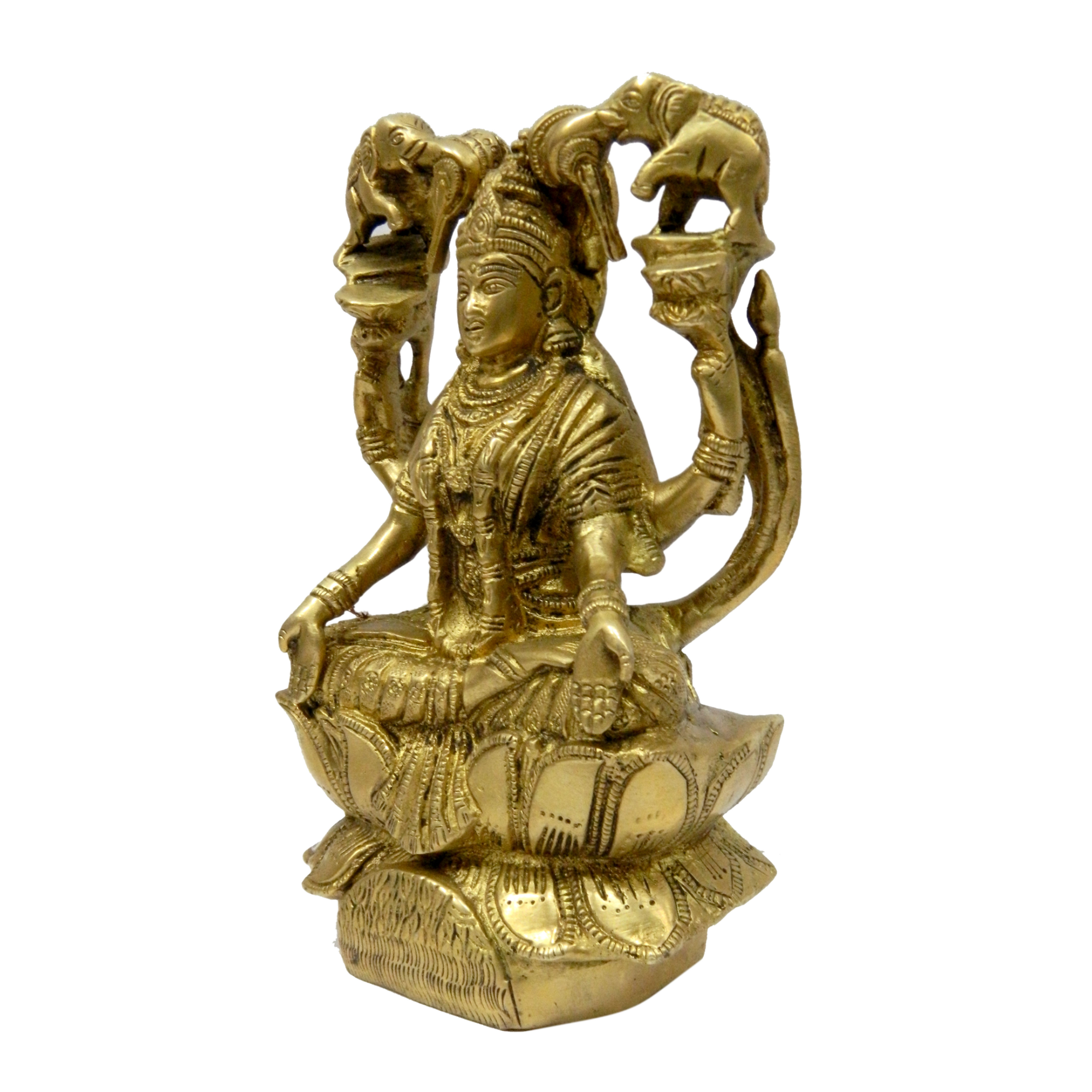 Handcrafted Brass Gaj Laxmi Idol, 7.5 inches tall and 2.04 kg in weight, perfect for pooja, home décor, and festive gifting.