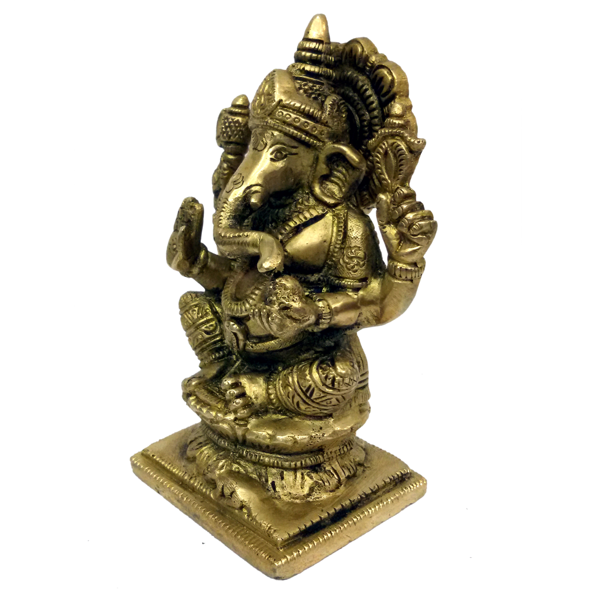 Handcrafted Brass Ganesha Sitting, 4.5 inches tall and 960 grams, ideal for pooja, home décor, and gifting.