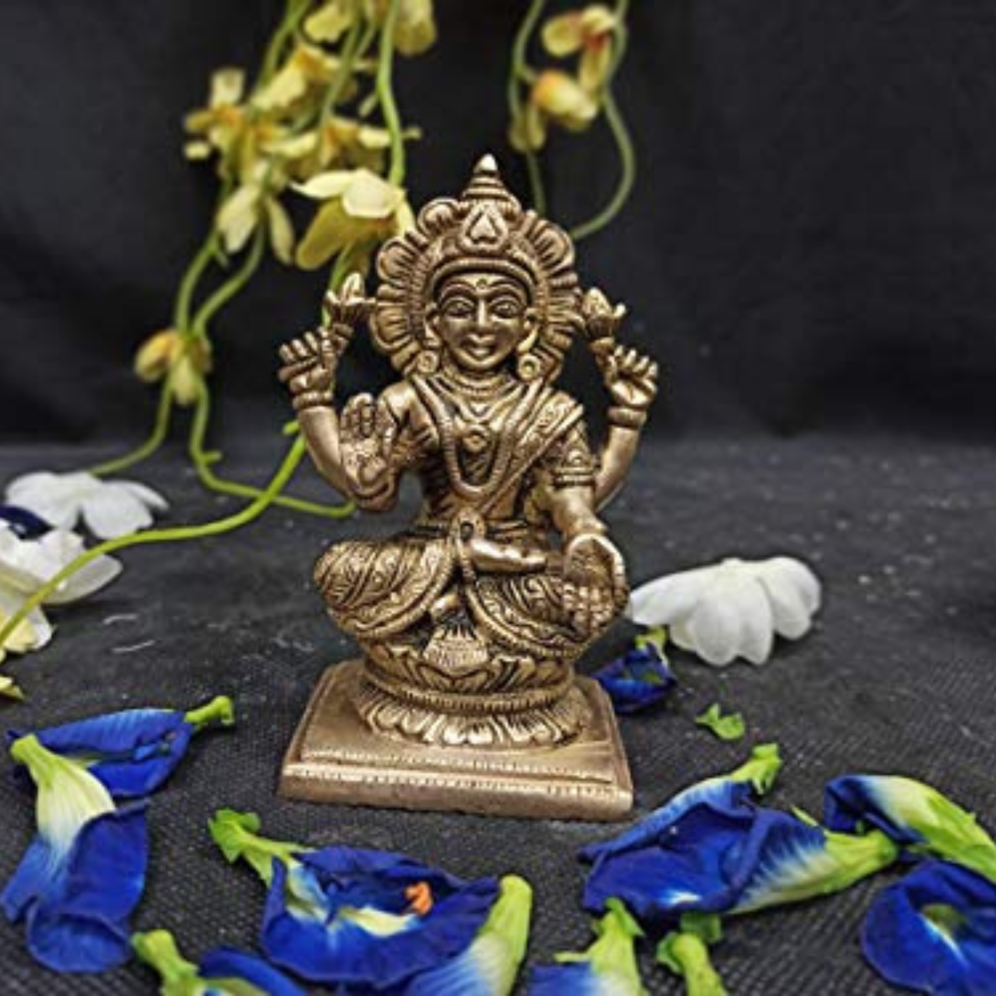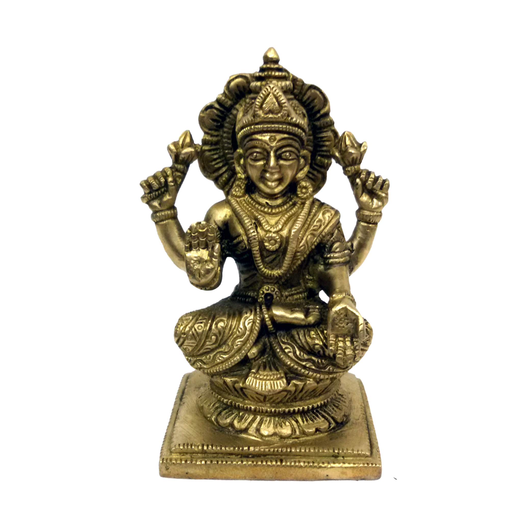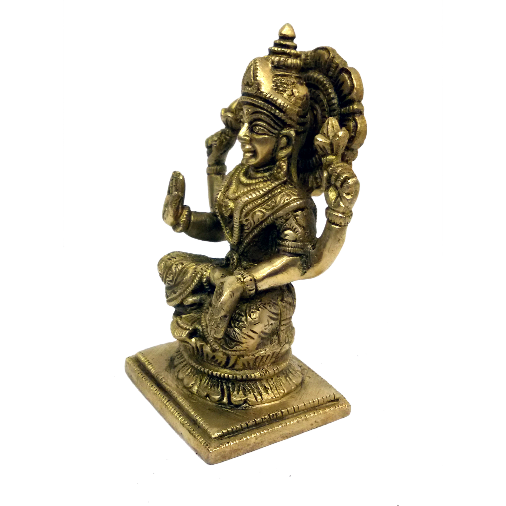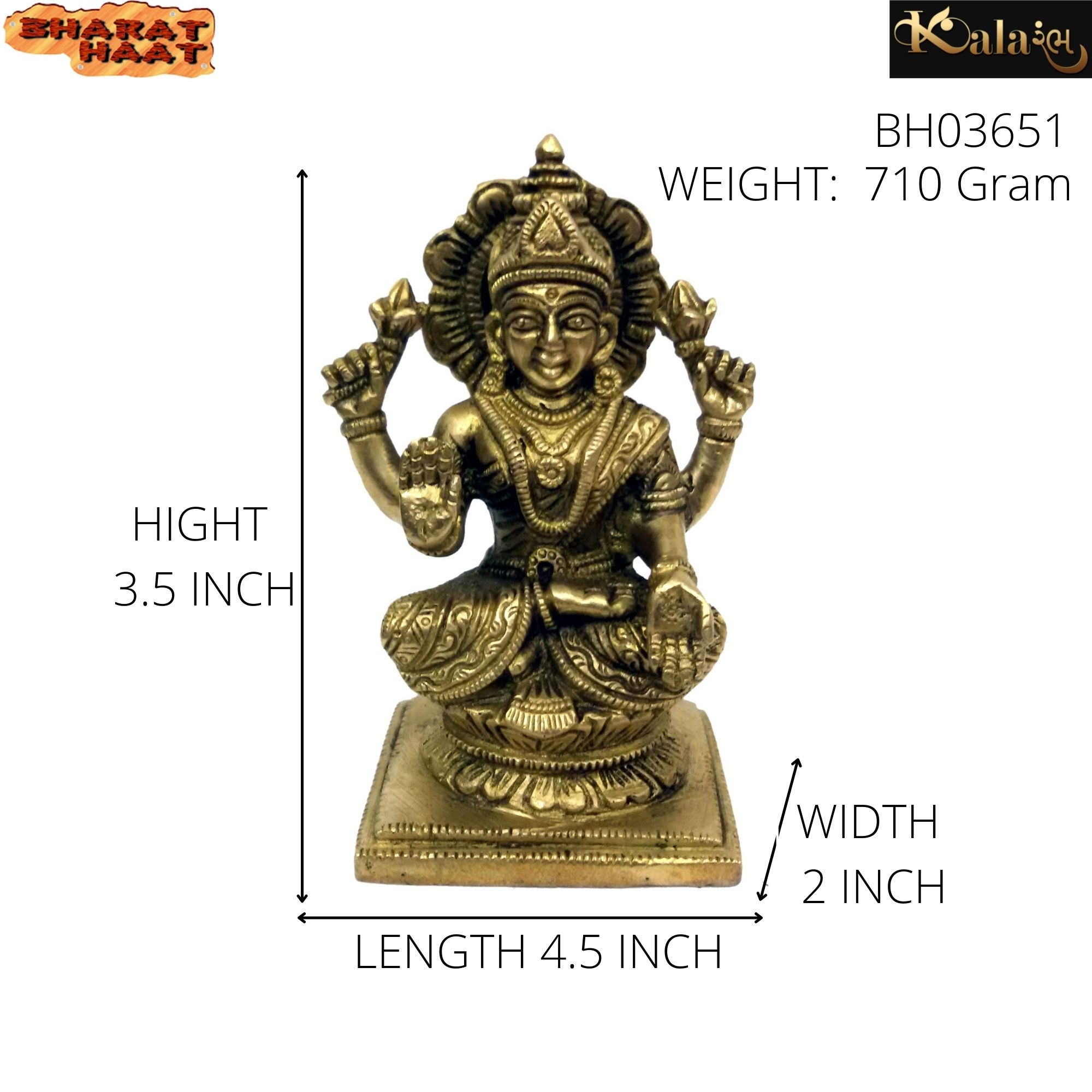 Handcrafted Brass Laxmi Devi, 3.5 inches tall and 710 grams, ideal for pooja, home décor, and gifting.
