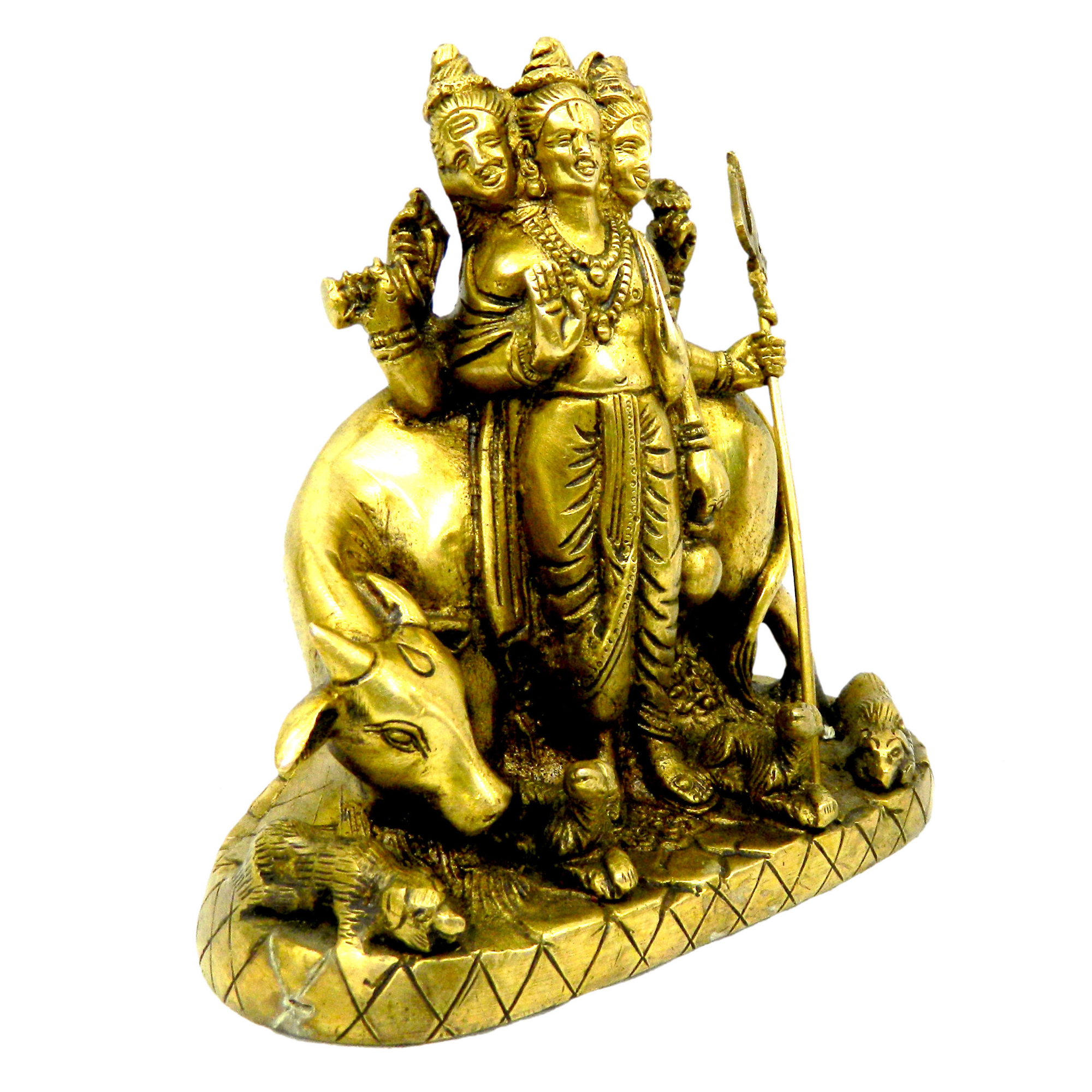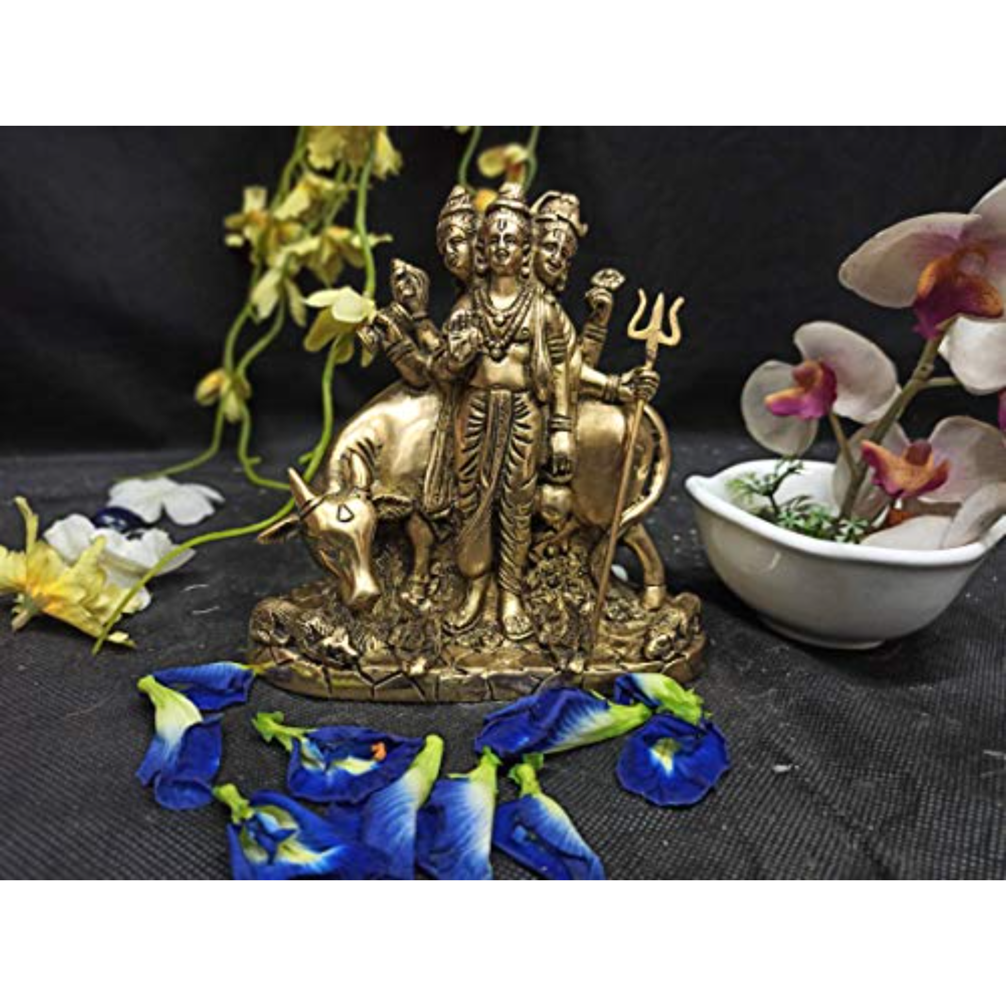 Handcrafted Brass Dattatray, 6 inches tall and 2.05 kg, ideal for pooja, home décor, and gifting.