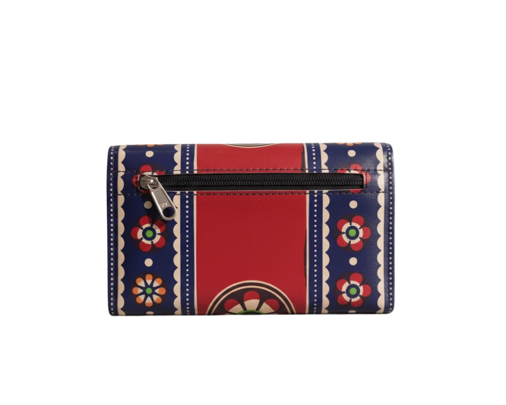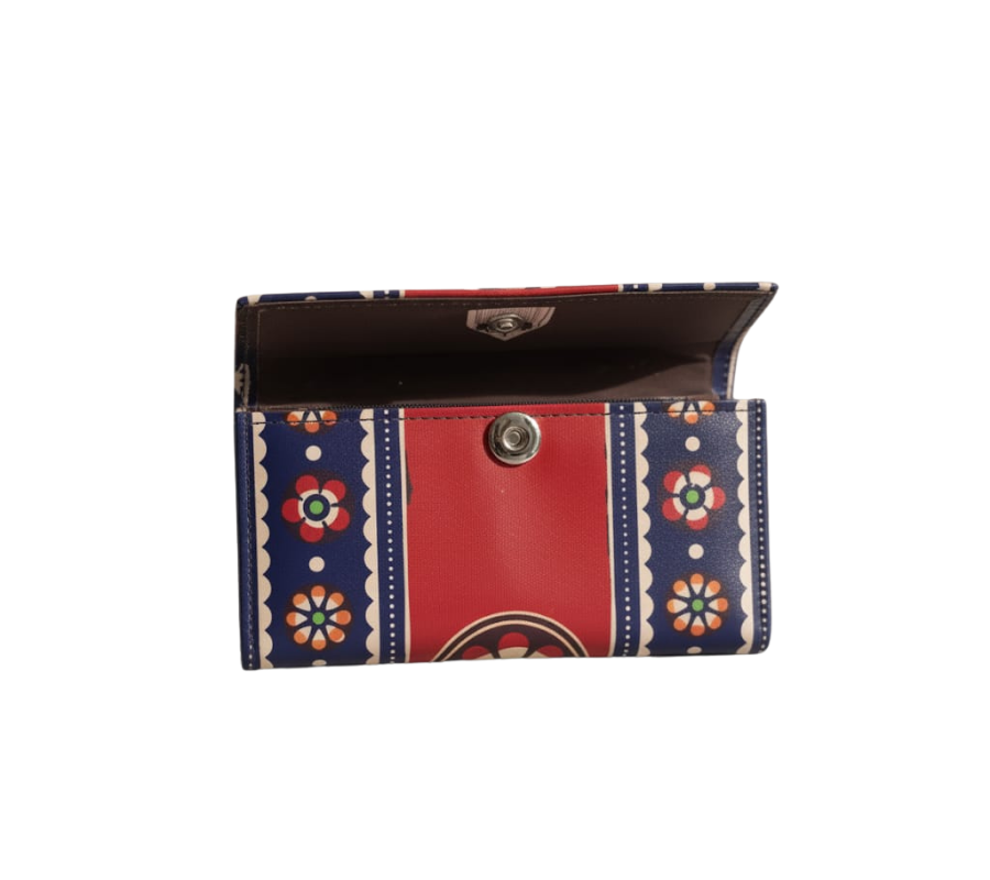 This purse is a classic example of age old Shantiniketan craft. It was introduced in West Bengal, India during the 1940s. The traditional motifs used for These Shantiniketan bags depict the rich cultural heritage of India. It derives its name from the place where it was first introduced – Shantiniketan. The Shantiniketan style evolved as a result of the Art Movement. These products have now become world famous for their applique, batik and embossed craft work. Moreover the process of burnishing the leather gives it an elegant sheen and brings out the colors. The embossing craft is an intricate process. After the final leather is made, it is then stitched into the desired product . Finally the product is coated with a lacquer finish for making the product shiny and long lasting.