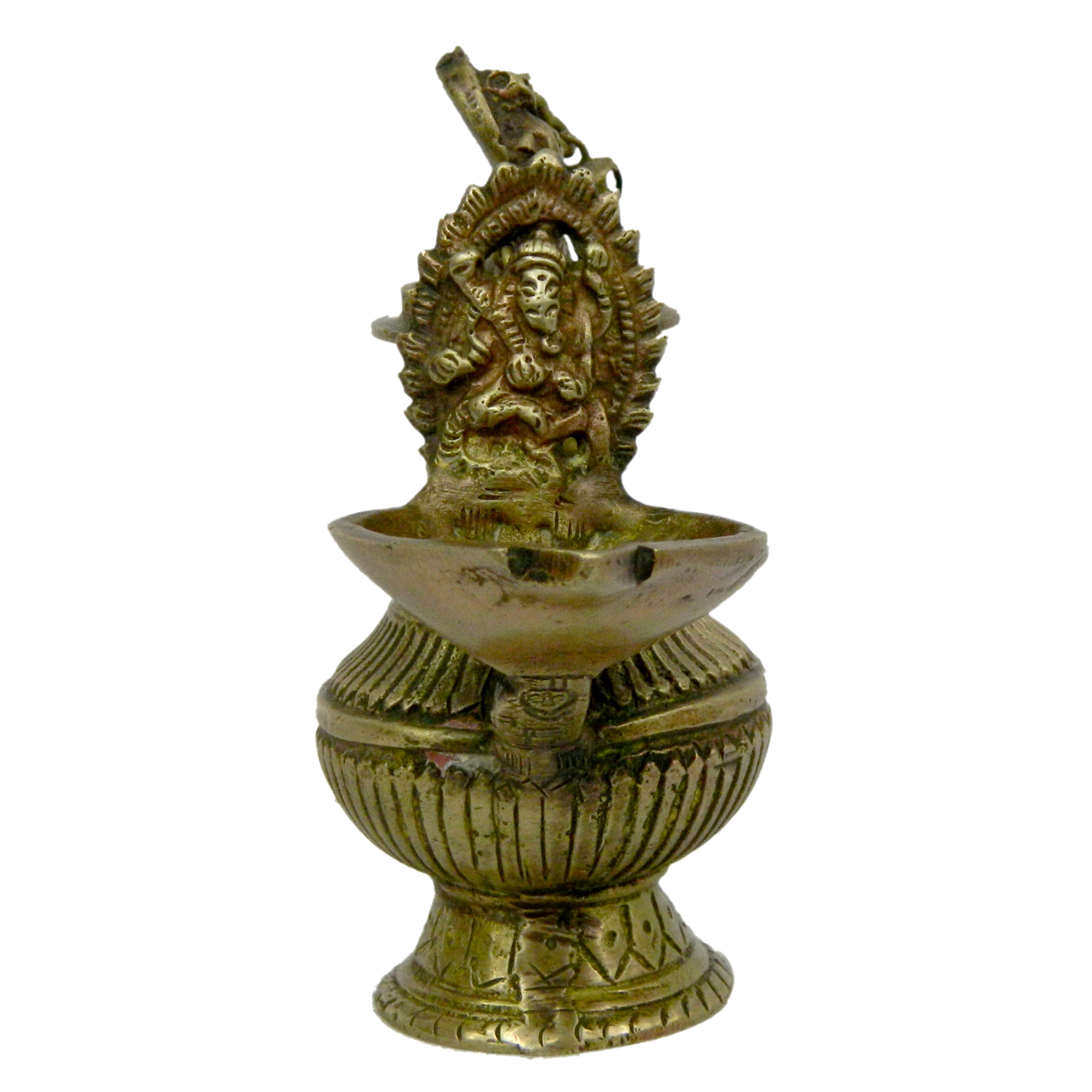 Design: Elegant brass pot with deep (diya) design, symbolizing purity, prosperity, and divine light.