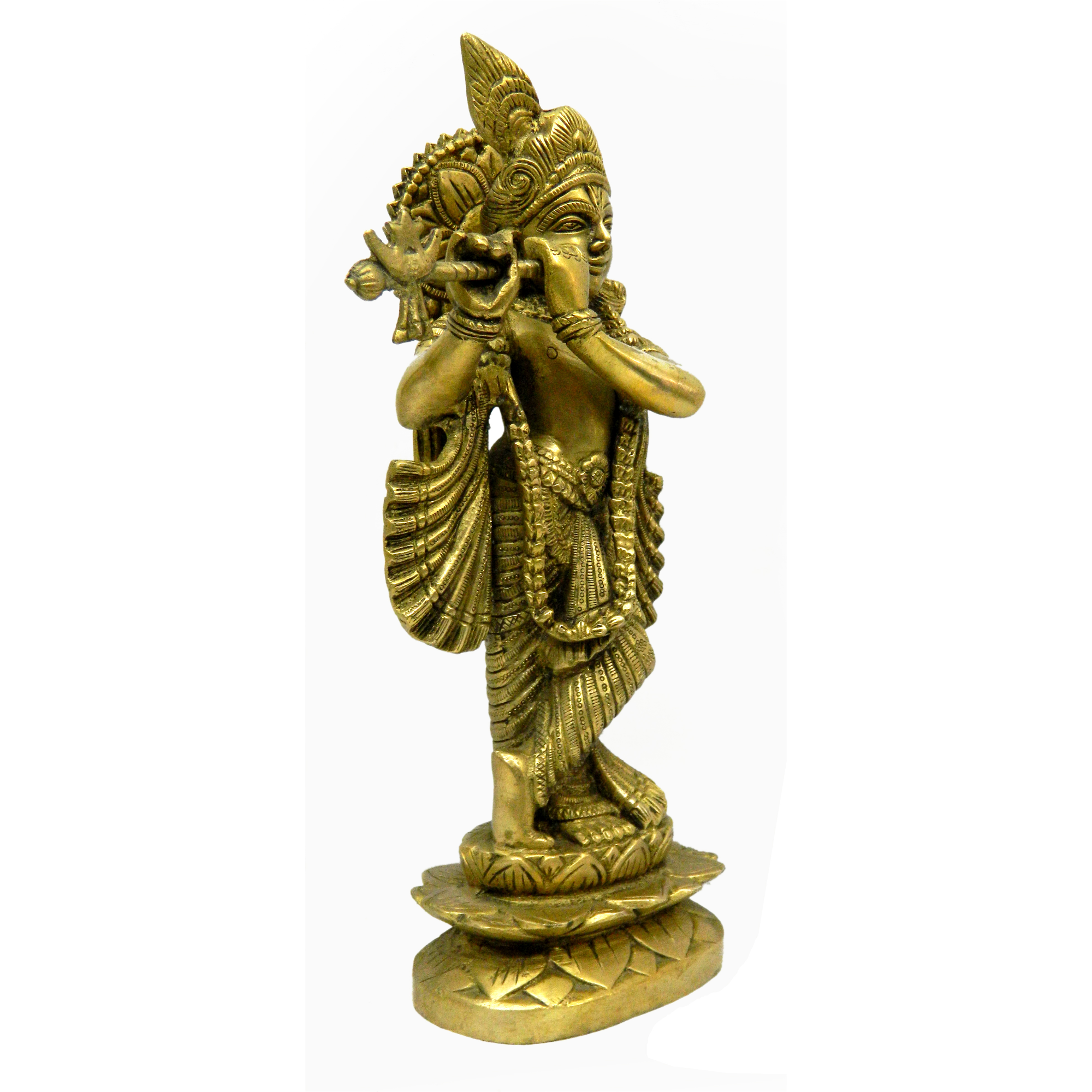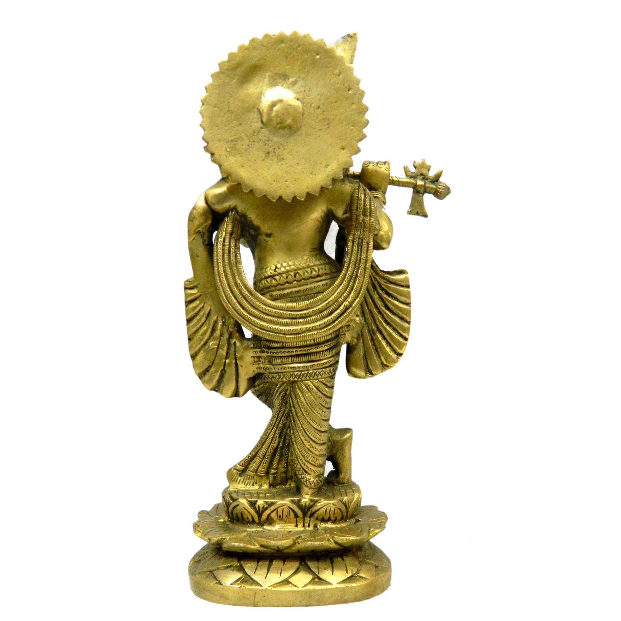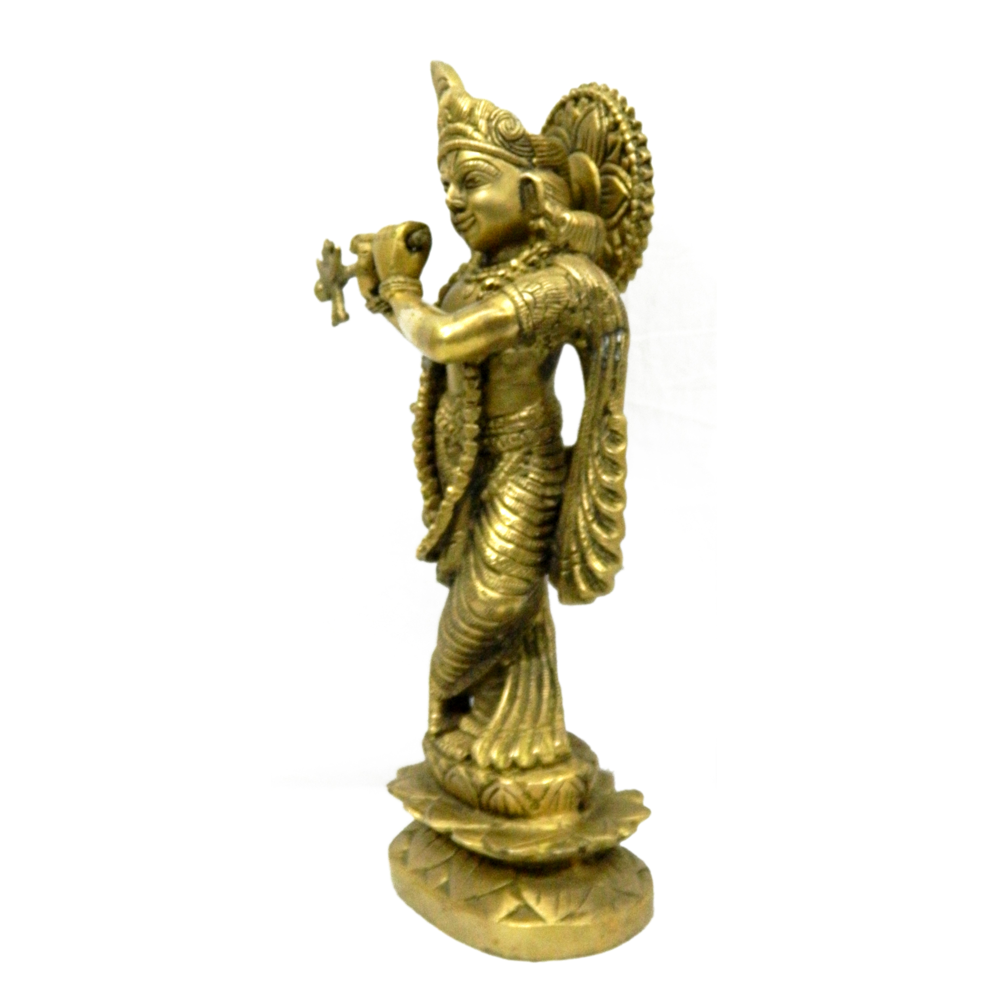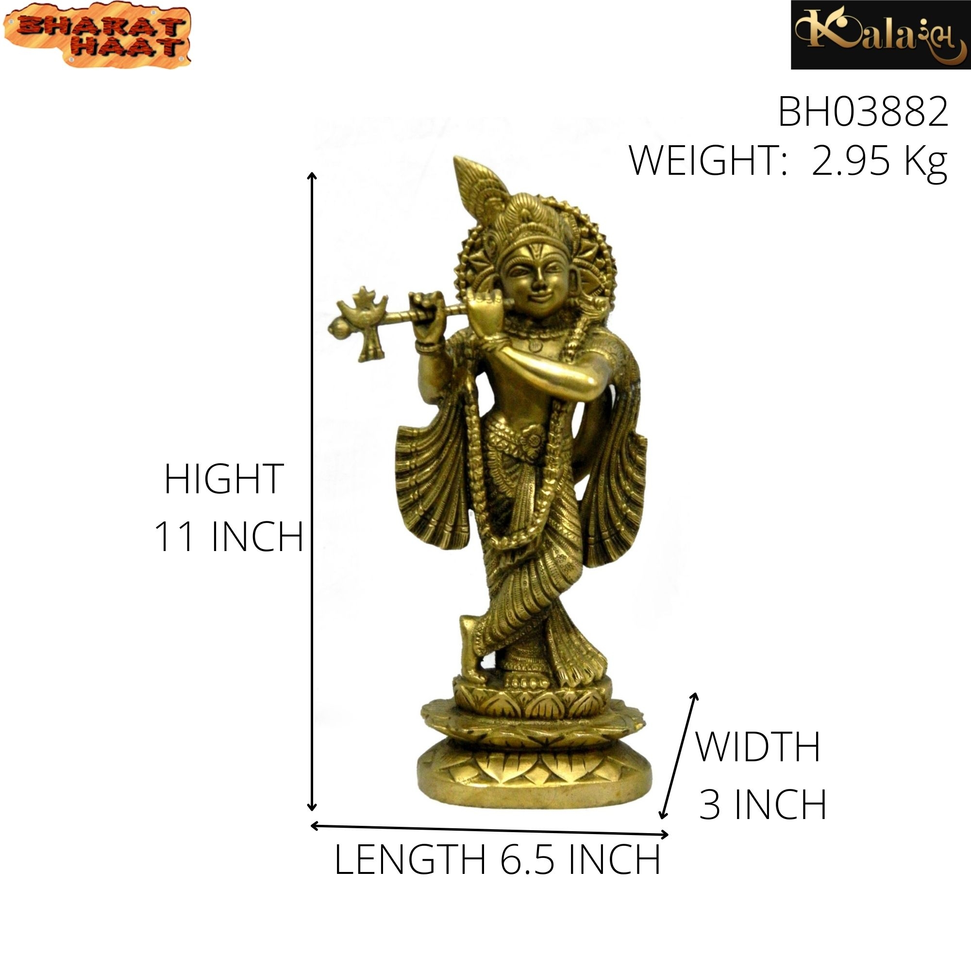 Handcrafted Brass Krishna statue for home temples and spiritual décor. Size: 6.5 x 3 x 11 inches, weight: 2.95 Kg, intricately designed to bring divine blessings and elegance to your space.