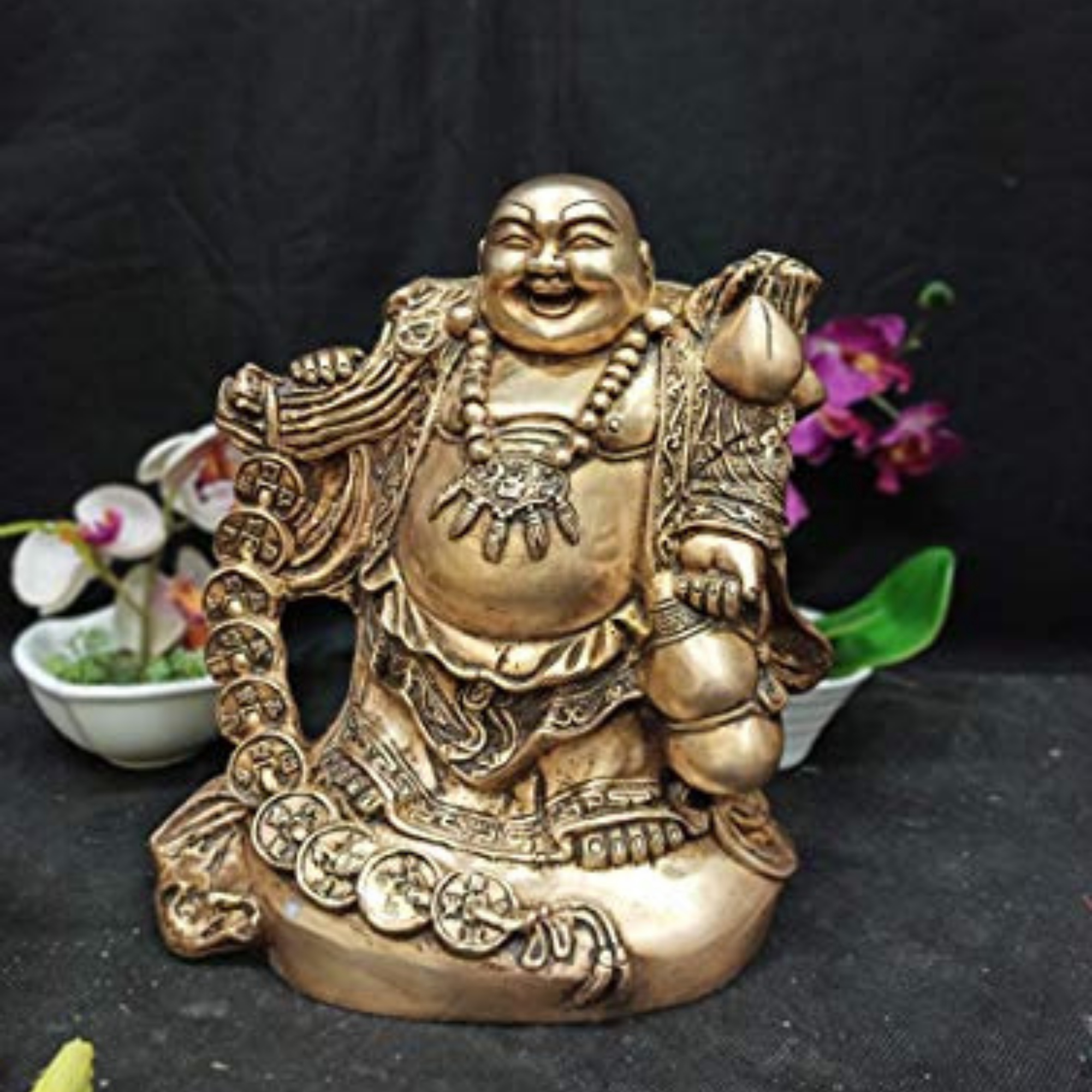 Design: Features the Laughing Buddha in a joyful, seated pose, symbolizing happiness, good fortune, and contentment.